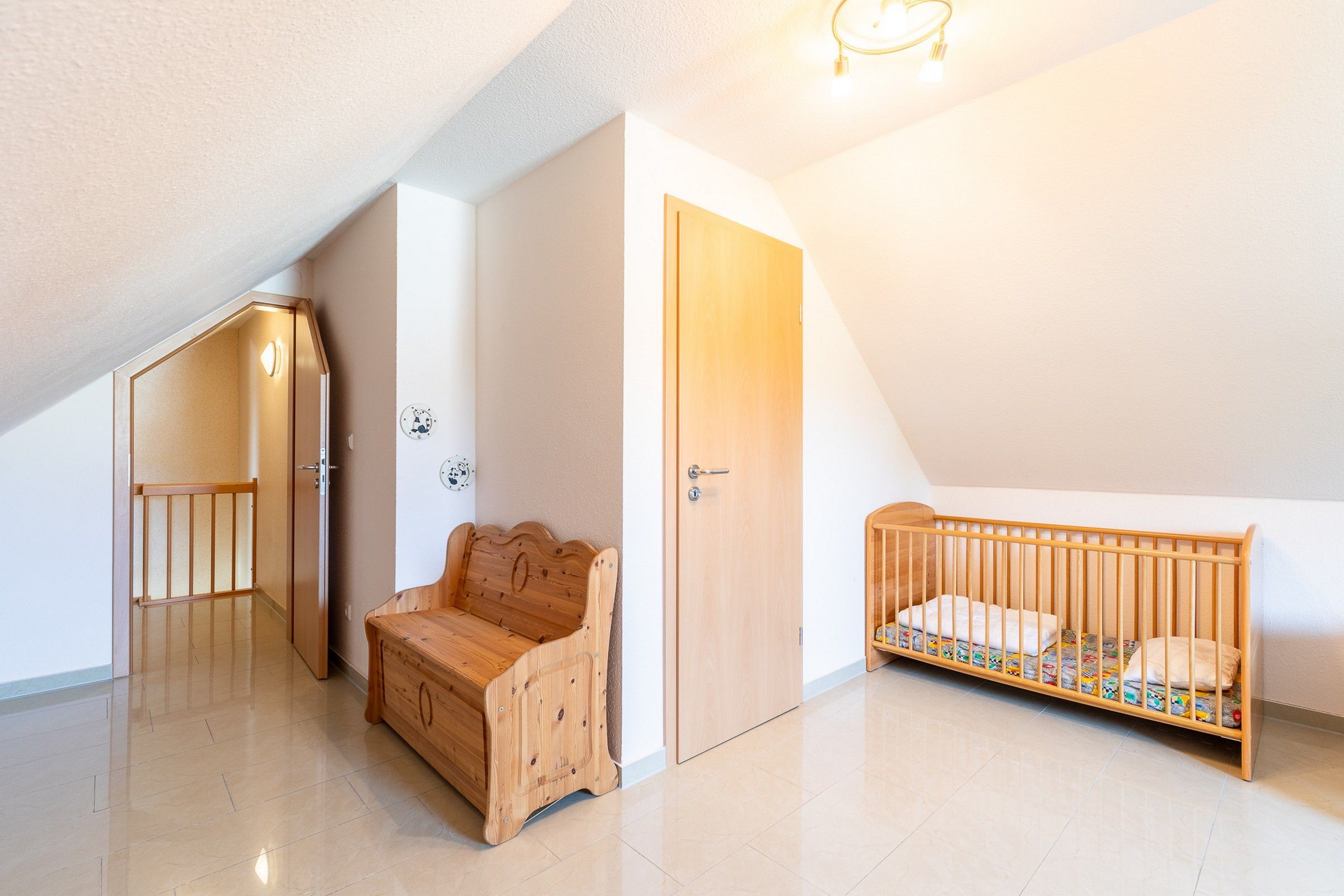 Die gemütlich eingerichtete 4-Zimmer-Ferienwohnung im 1.OG bietet auf 80qm Wohnfläche, die sich auf 2 Ebenen verteilen, eine komfortable Ausstattung für 6 Gäste + 1 Kleinkind.