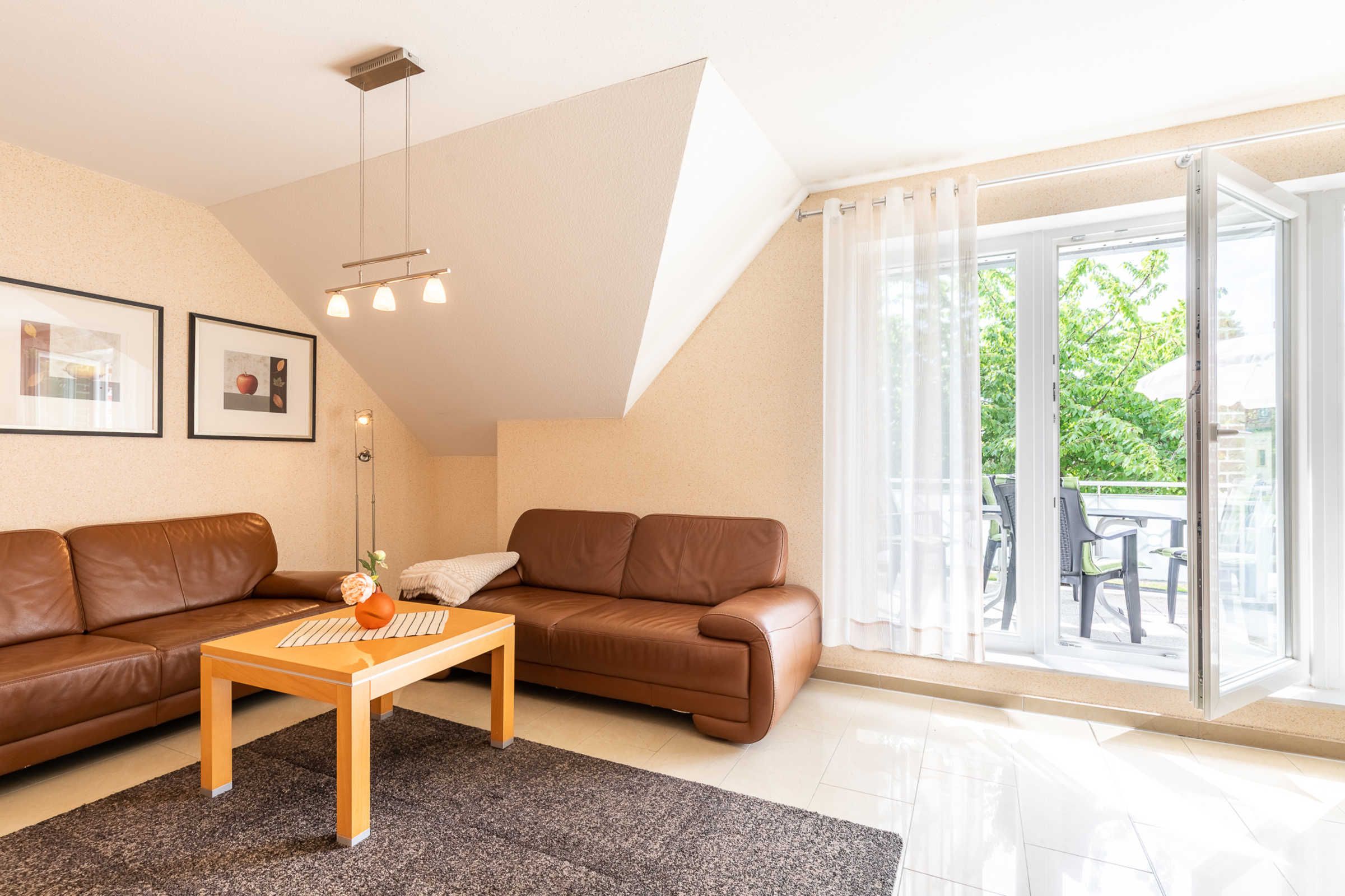 Genießen Sie die herrliche Ostseeluft auf Ihrem möblierten Südost-Balkon und beobachten Sie das bunte Treiben am Ortsrand.