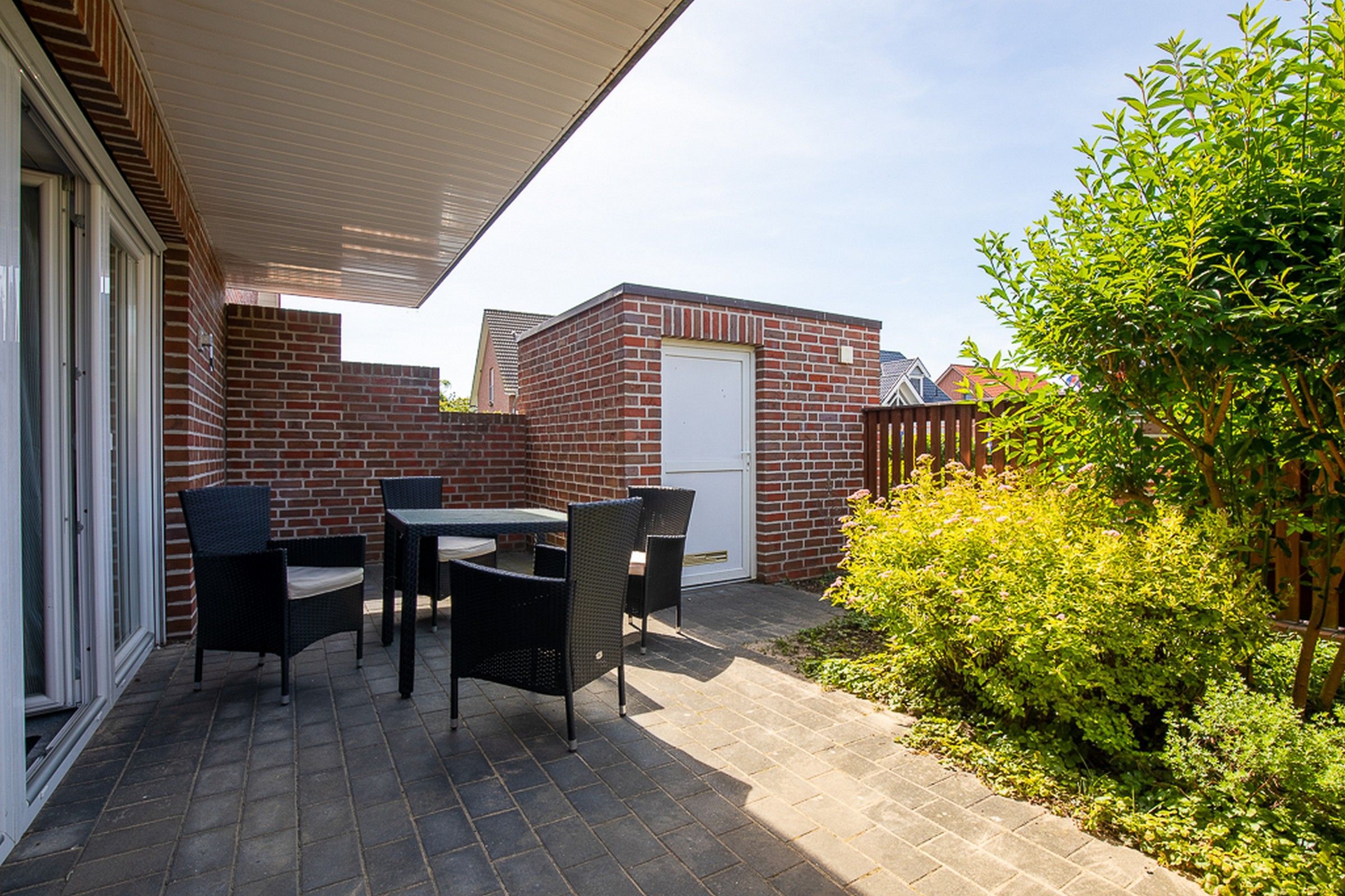 Vom Wohnbereich aus gelangen Sie auf die möblierte Nordwest-Terrasse mit eingezäuntem Grundstück. Hier können Sie auch gemütliche Grillabende verbringen, einen Grill können Sie gern mitbringen oder vor Ort bei verschiedenen Anbietern käuflich erwerben.