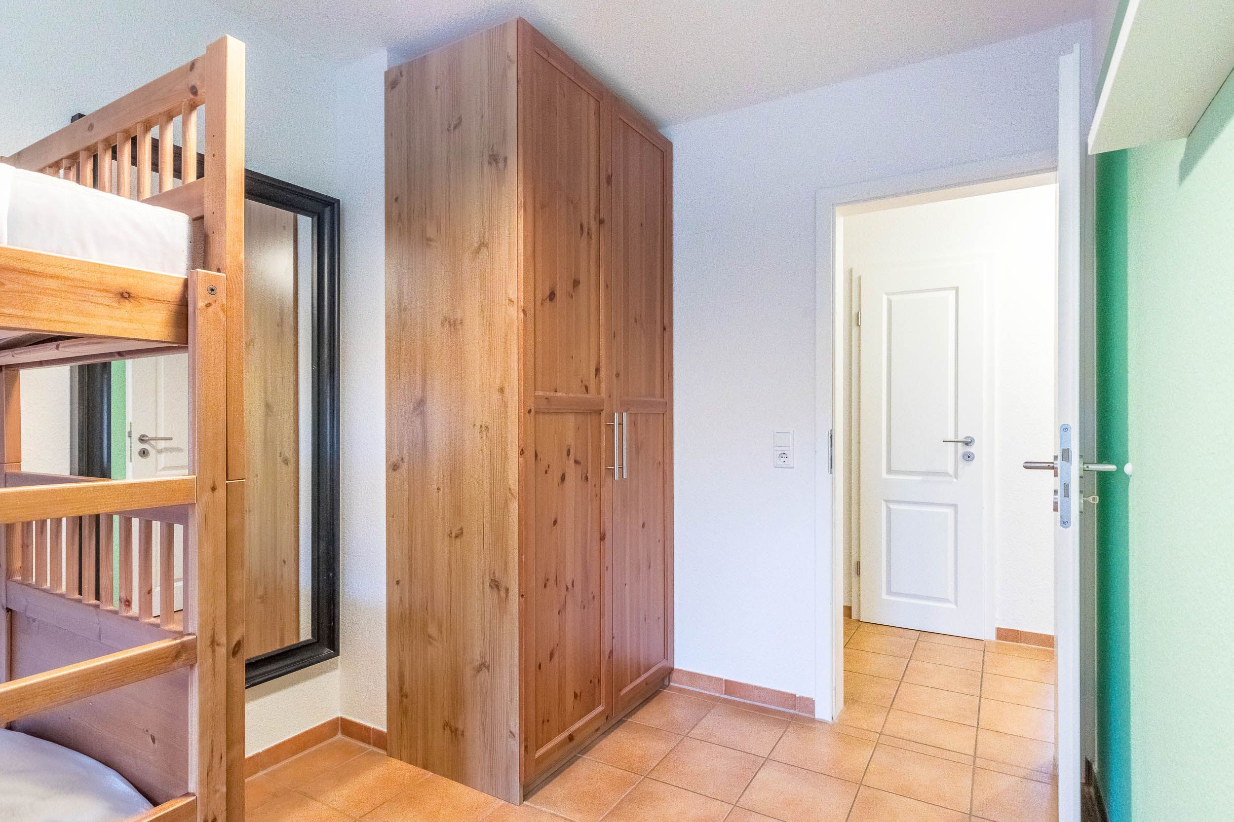 Im Schlafzimmer steht für Sie ein bequemes Doppelbett bereit, im Gäste-/ Kinderzimmer erwartet Sie ein Etagenbett. In beiden Zimmern finden Sie auch je einen Kleiderschrank für die Ablage Ihrer Garderobe.