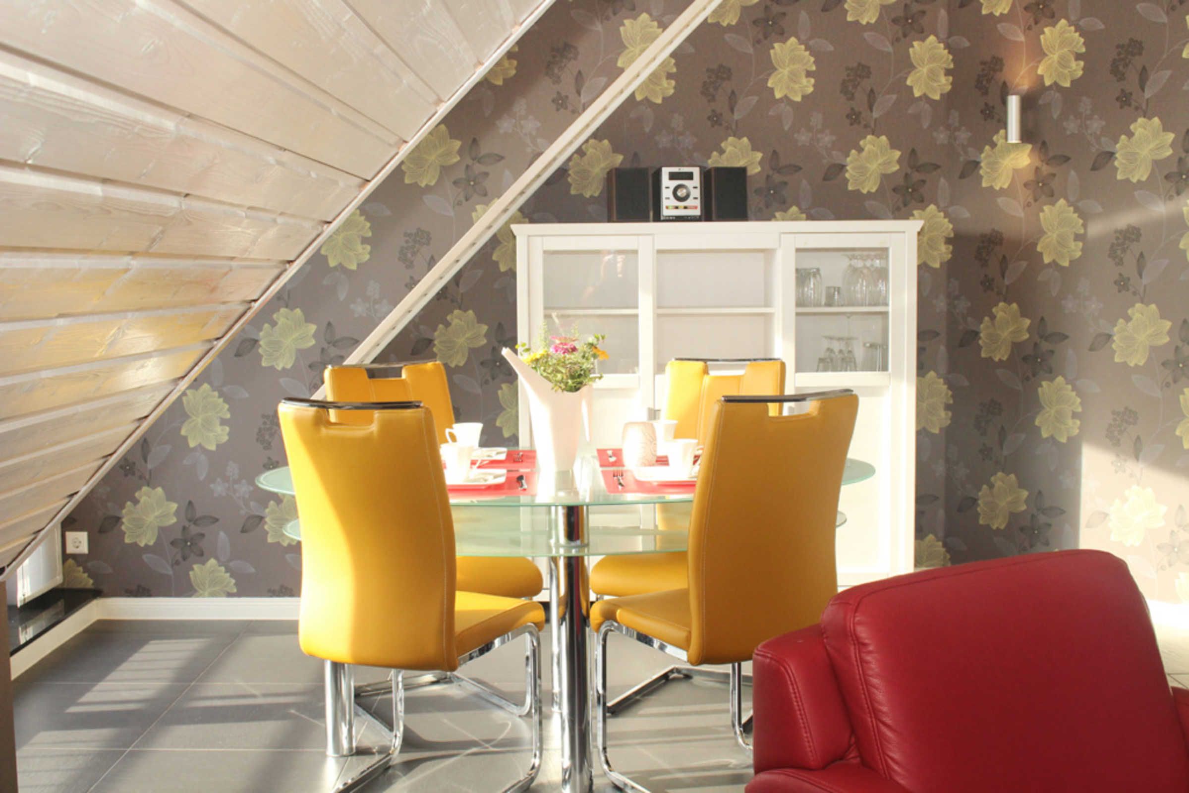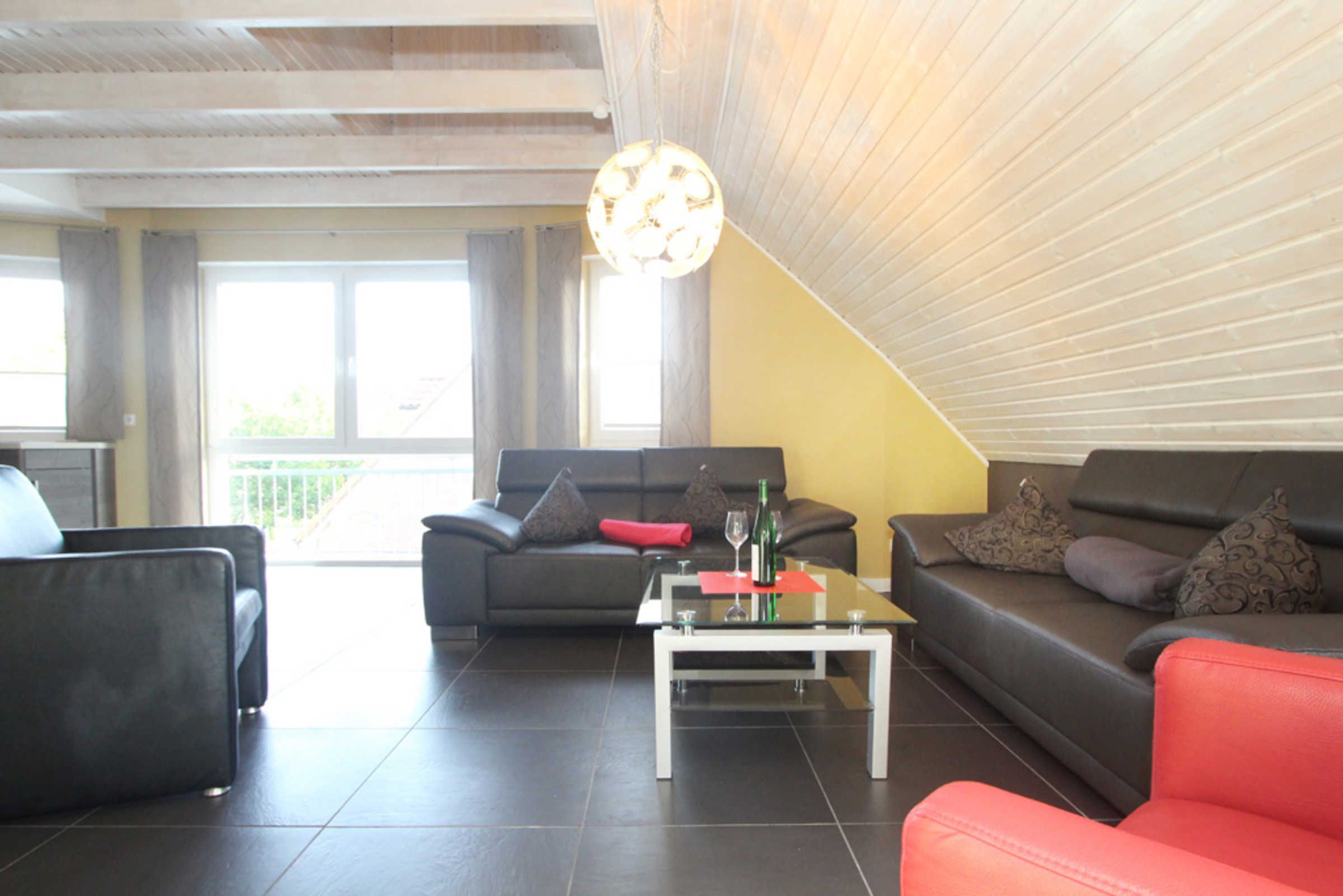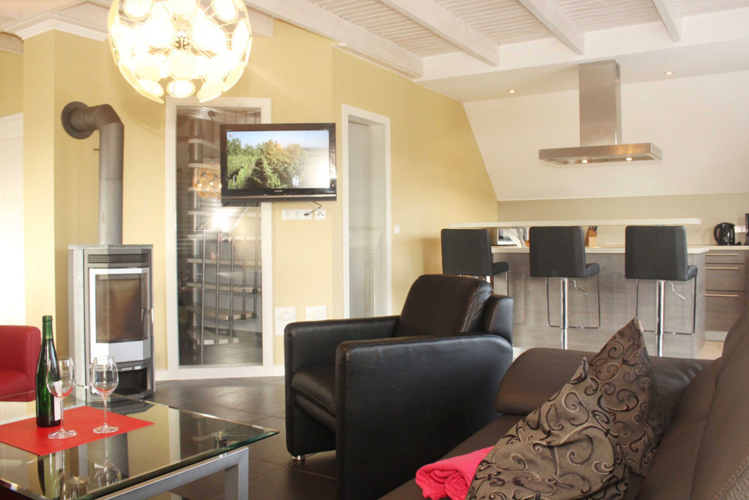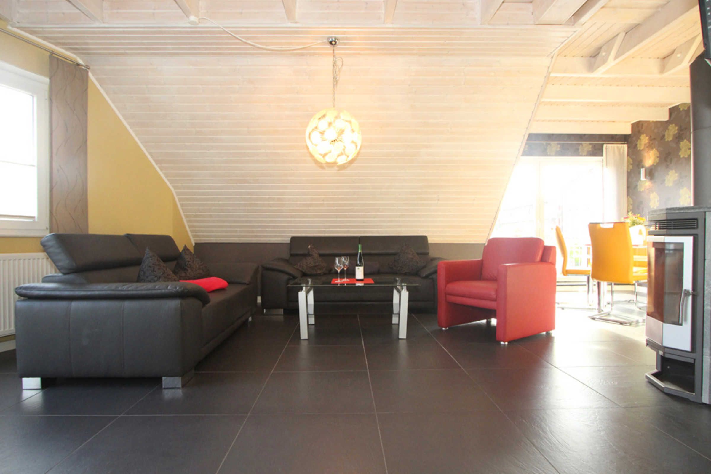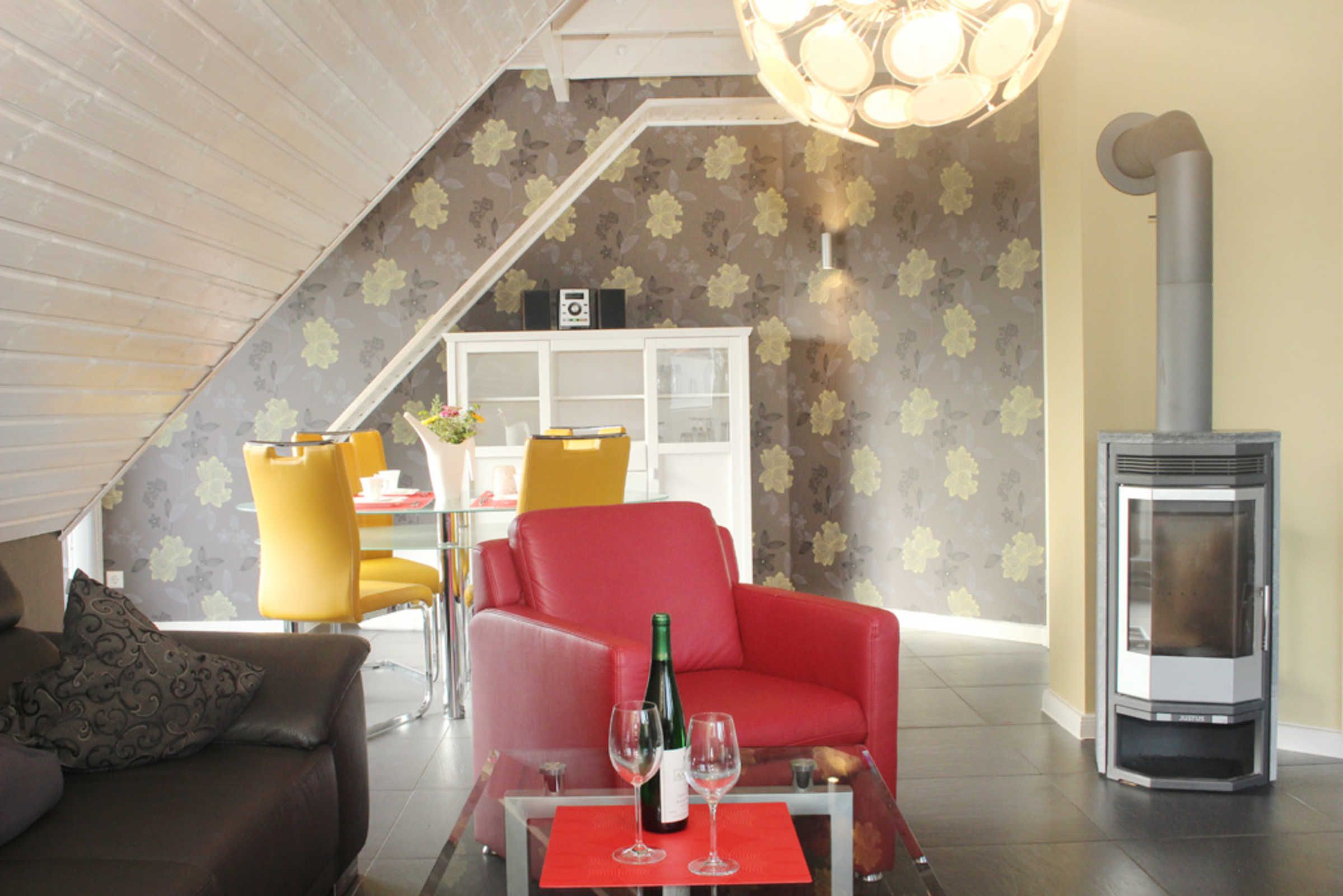 Die sehr moderne und stilvolle 4-Zimmer-Ferienwohnung bietet im 1.OG auf 2 Etagen auf 100qm Wohnfläche Platz für 6 Gäste + Kleinkind.