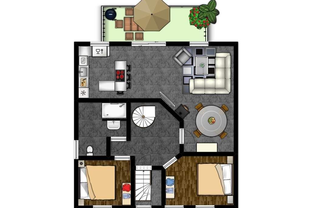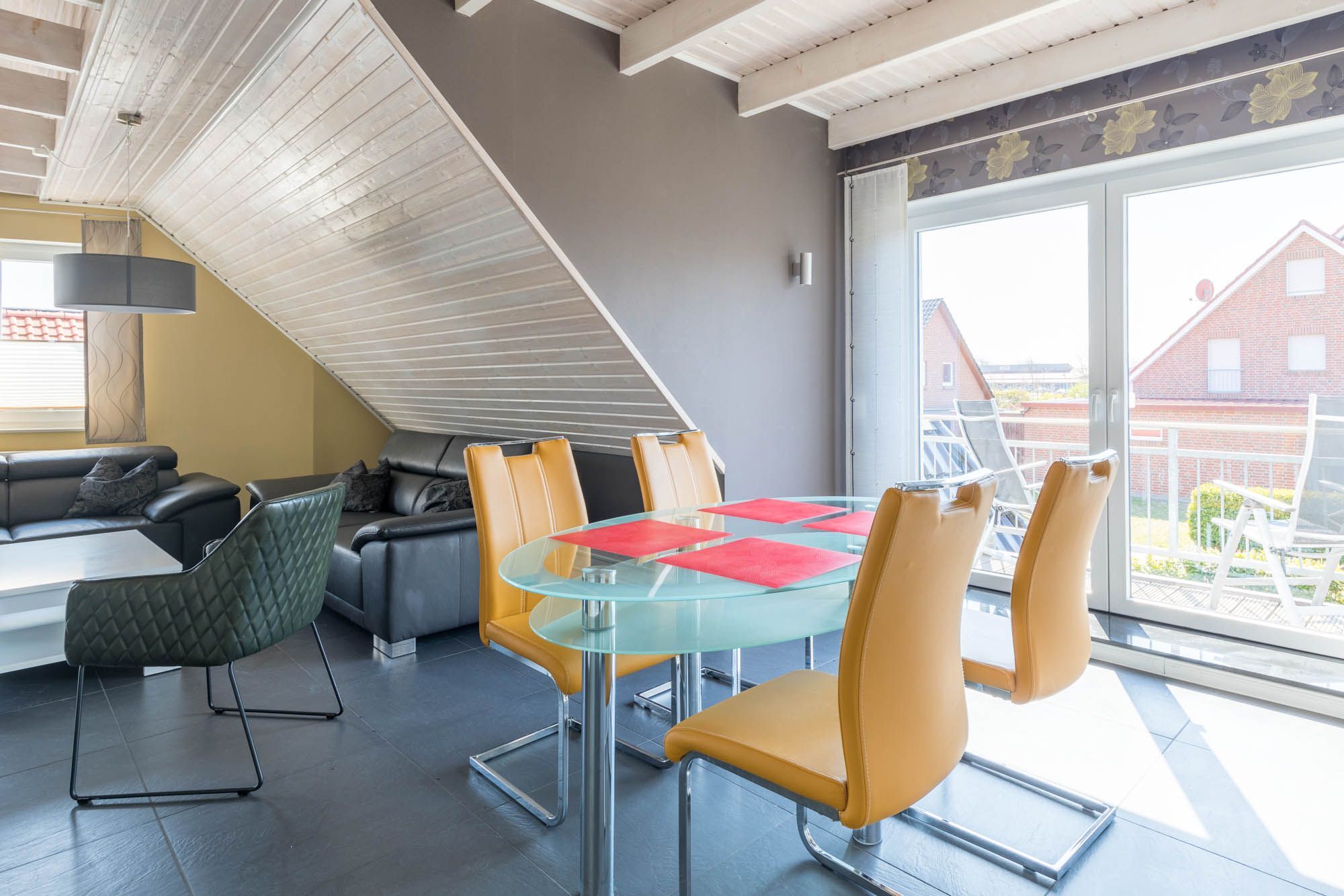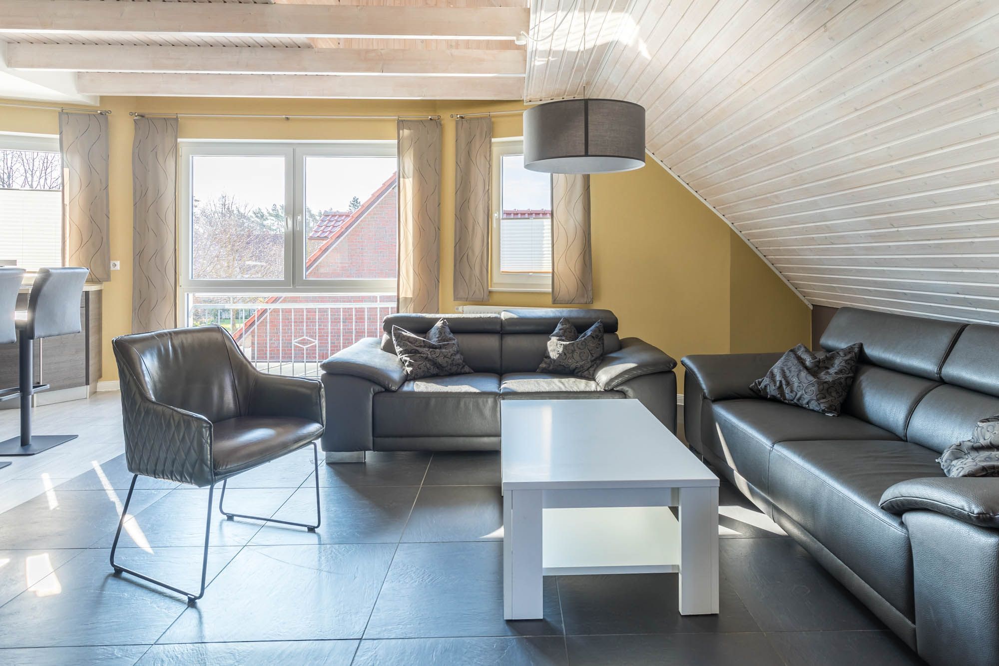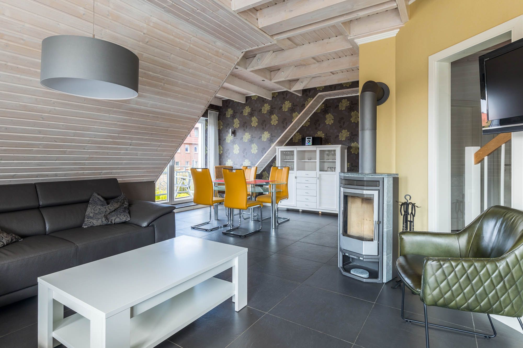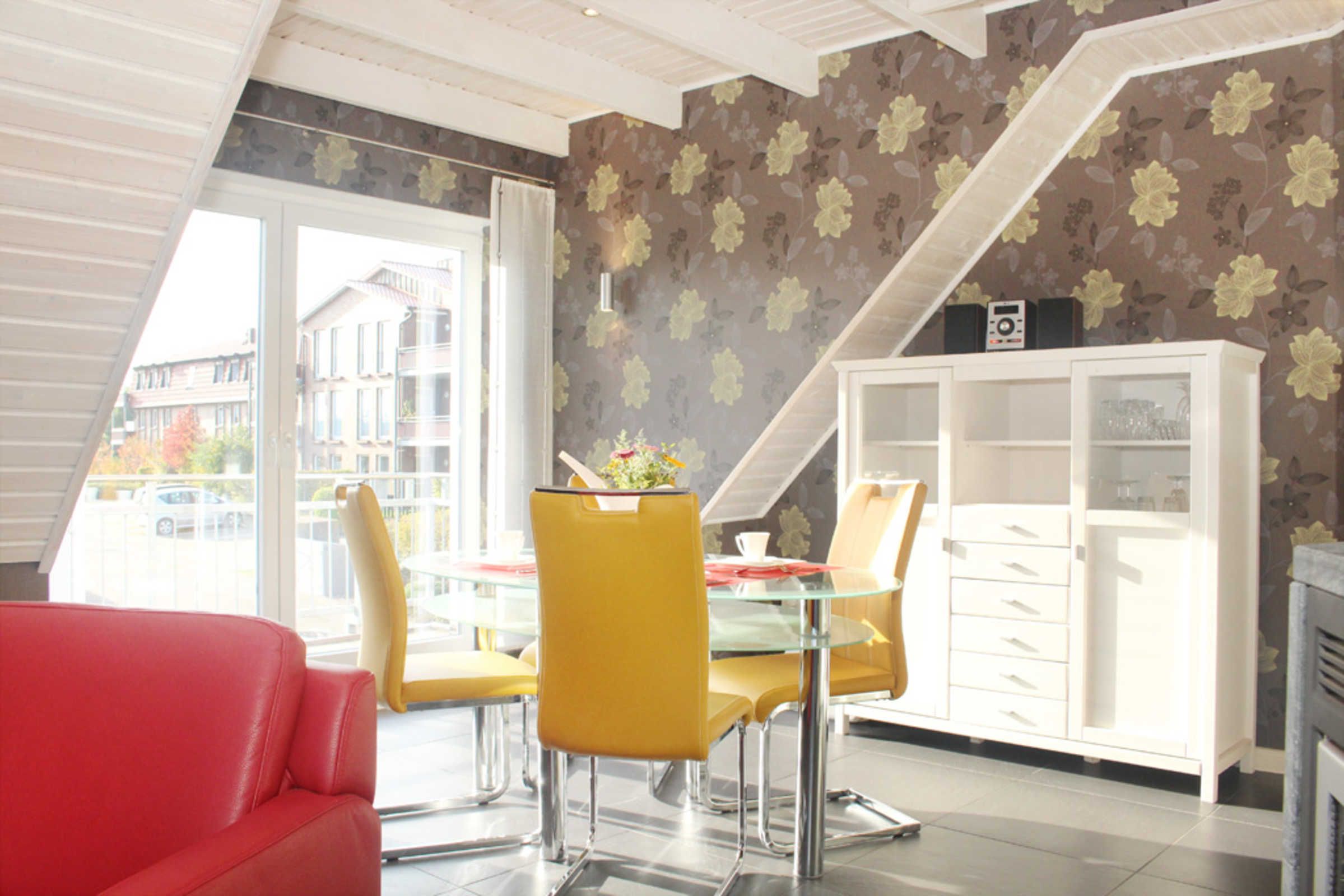 Die sehr moderne und stilvolle 4-Zimmer-Ferienwohnung bietet im 1.OG auf 2 Etagen auf 100qm Wohnfläche Platz für 6 Gäste + Kleinkind.