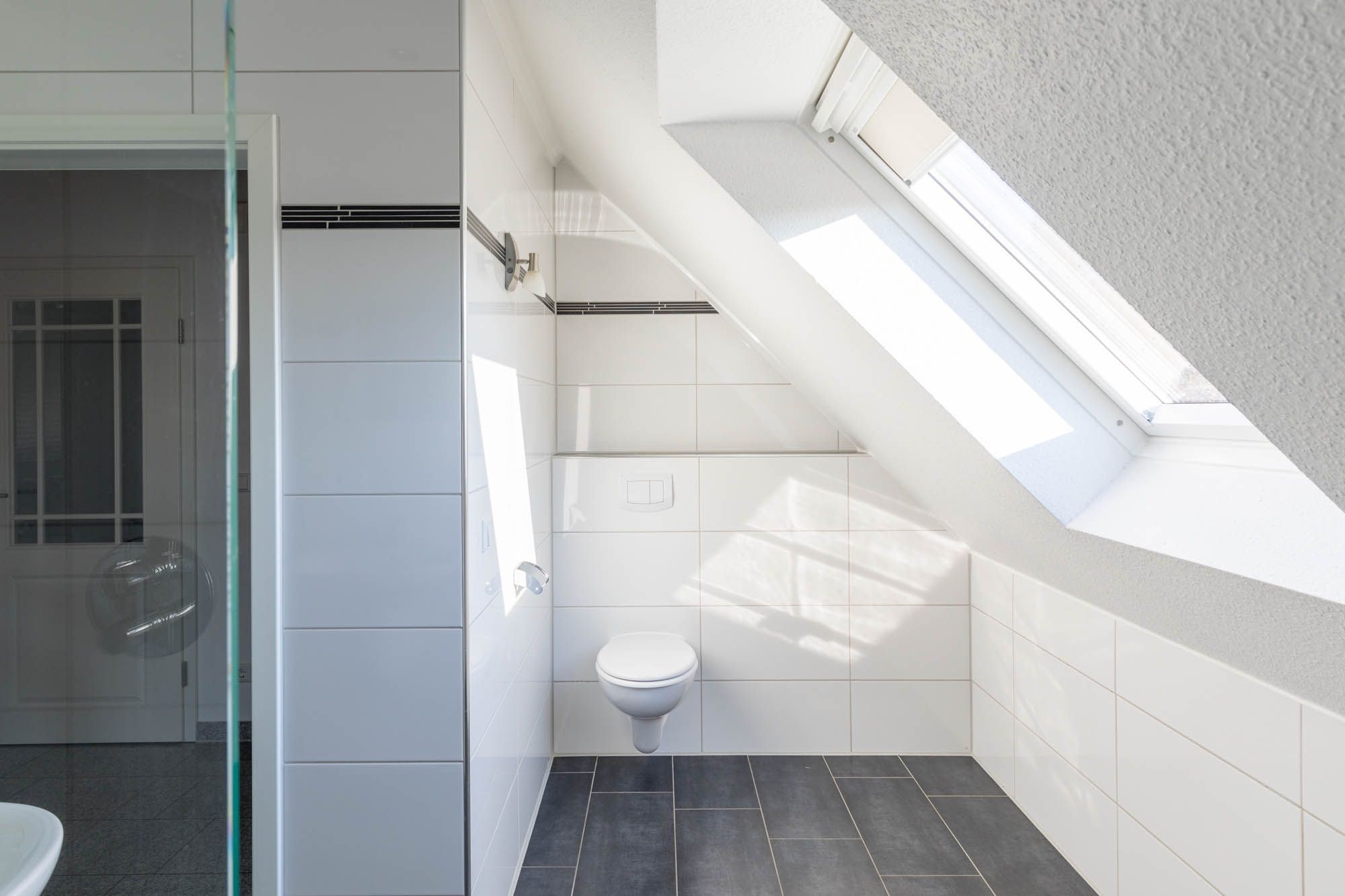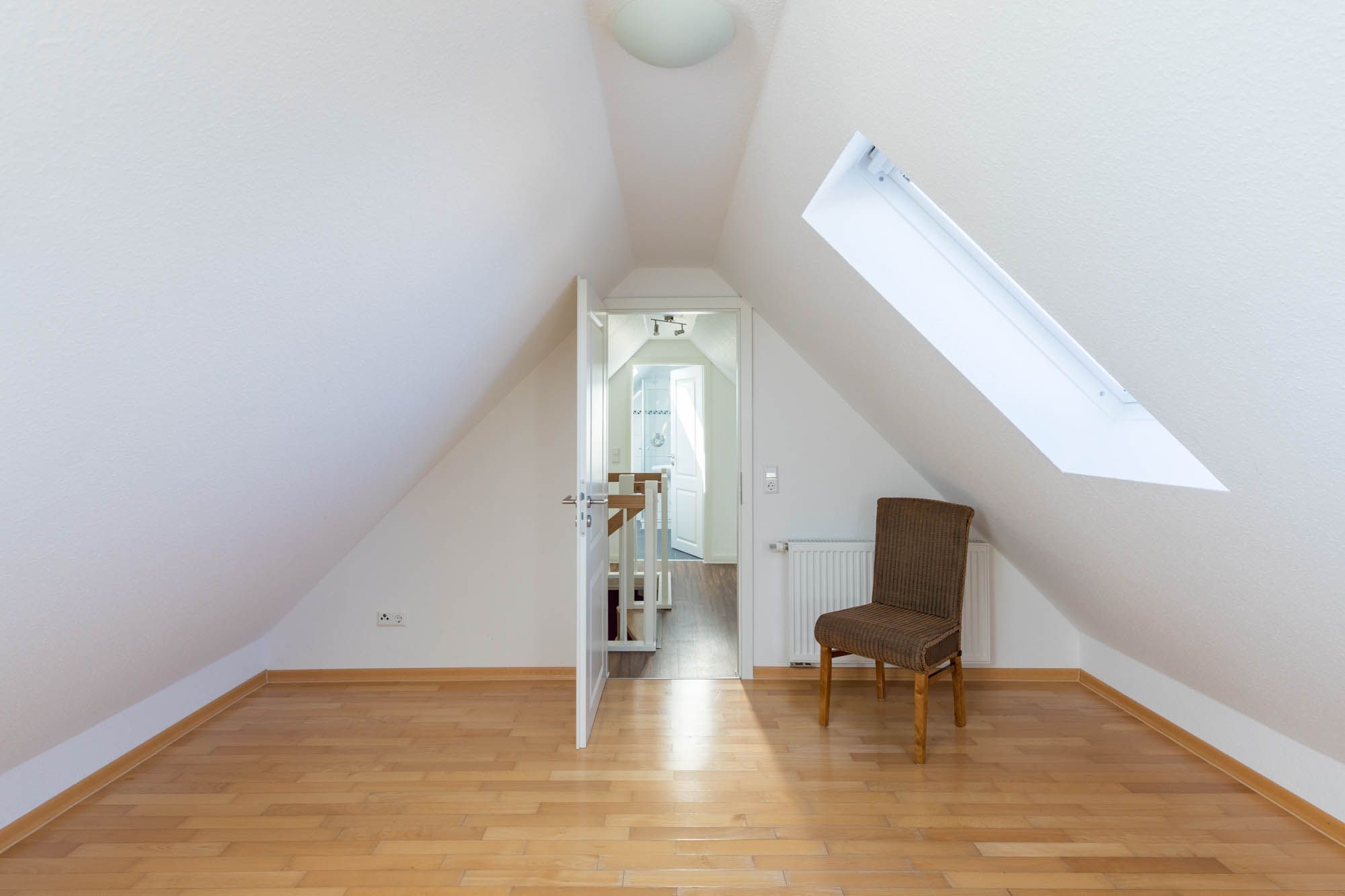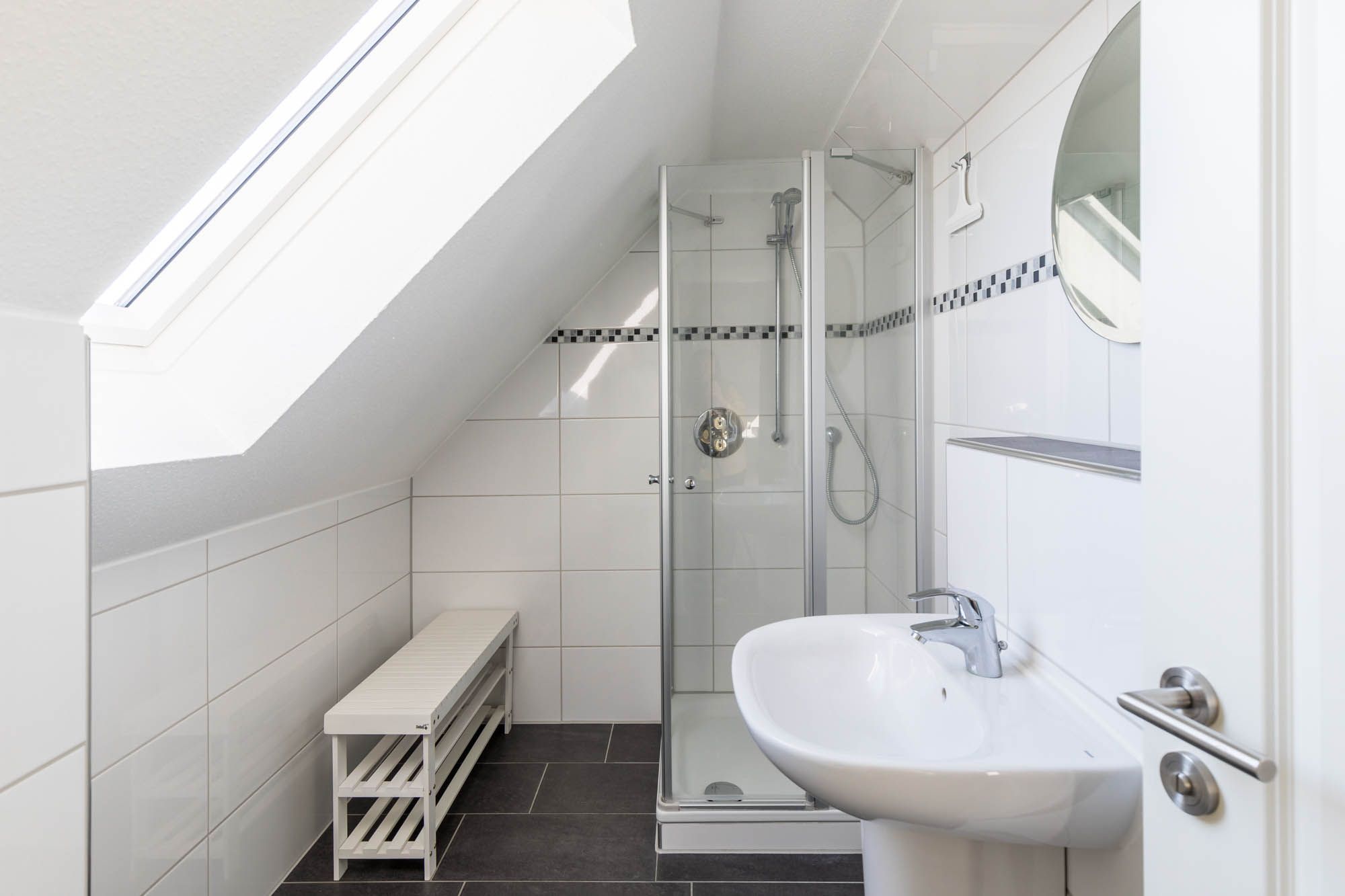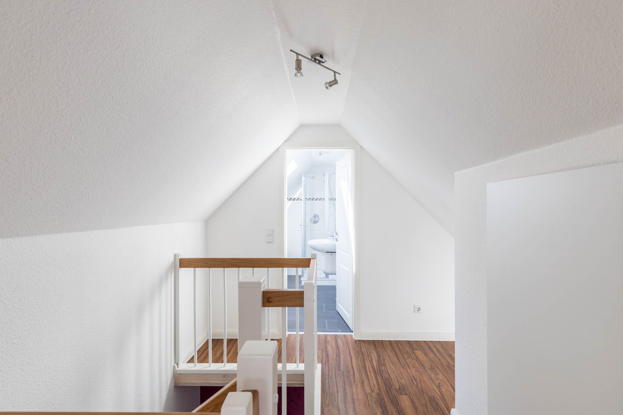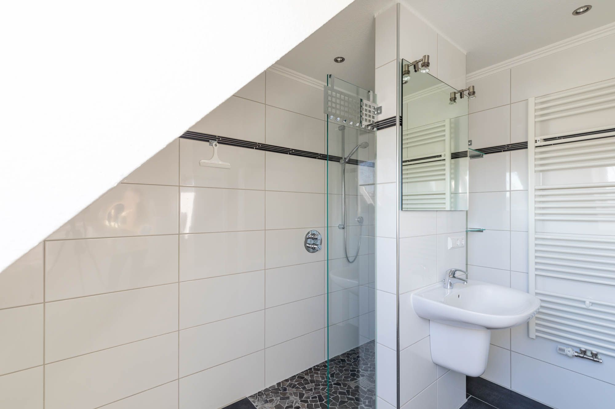 In der oberen Wohnebene, im DG befinden sich ein Gäste-/ Kinderzimmer mit zwei Einzelbetten und ein weiteres Duschbad.