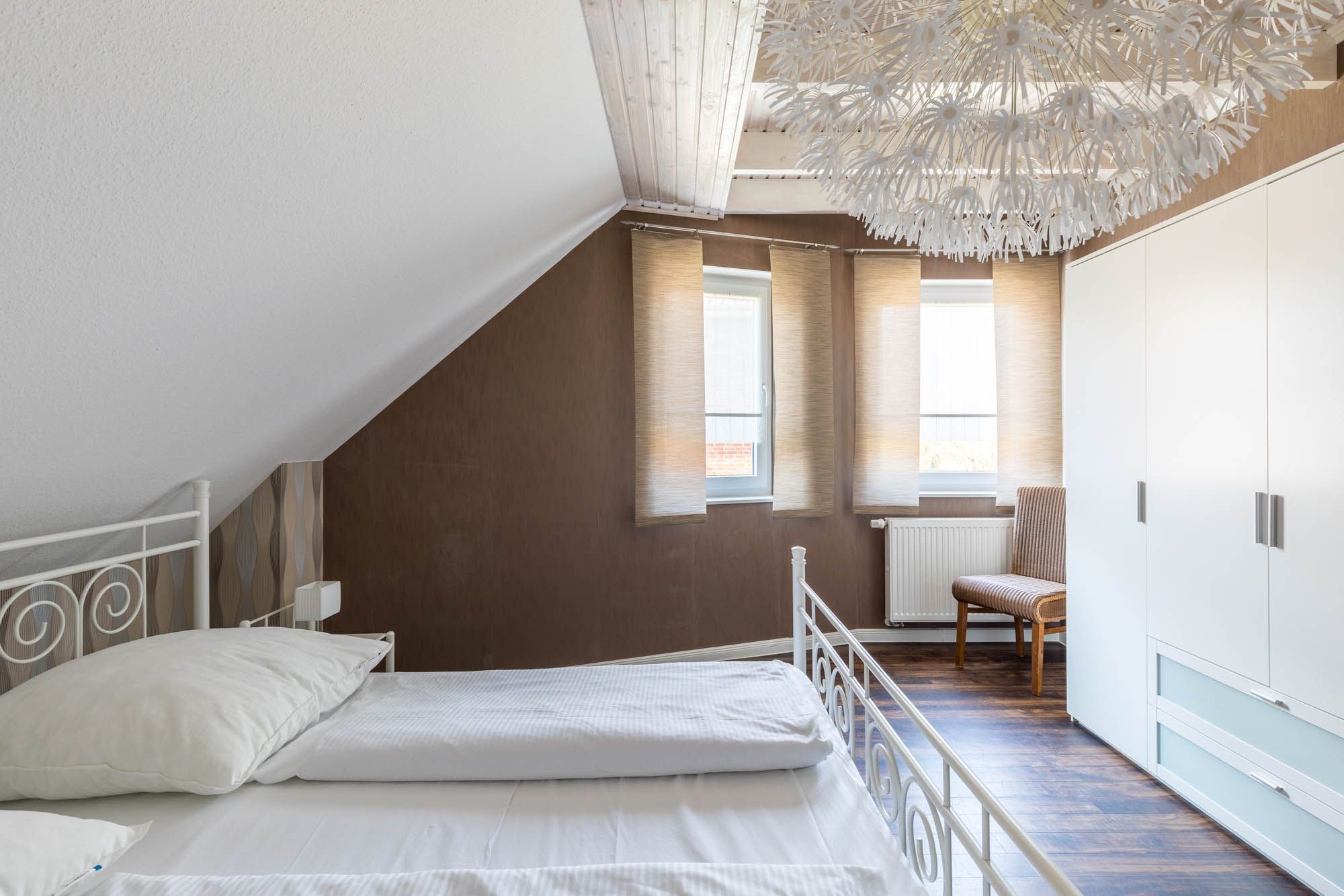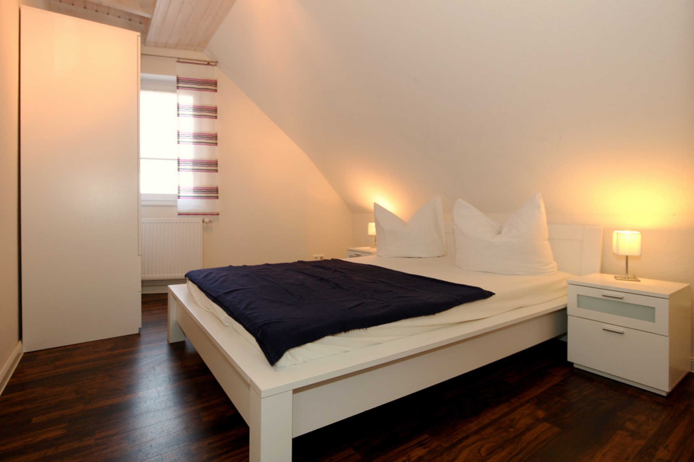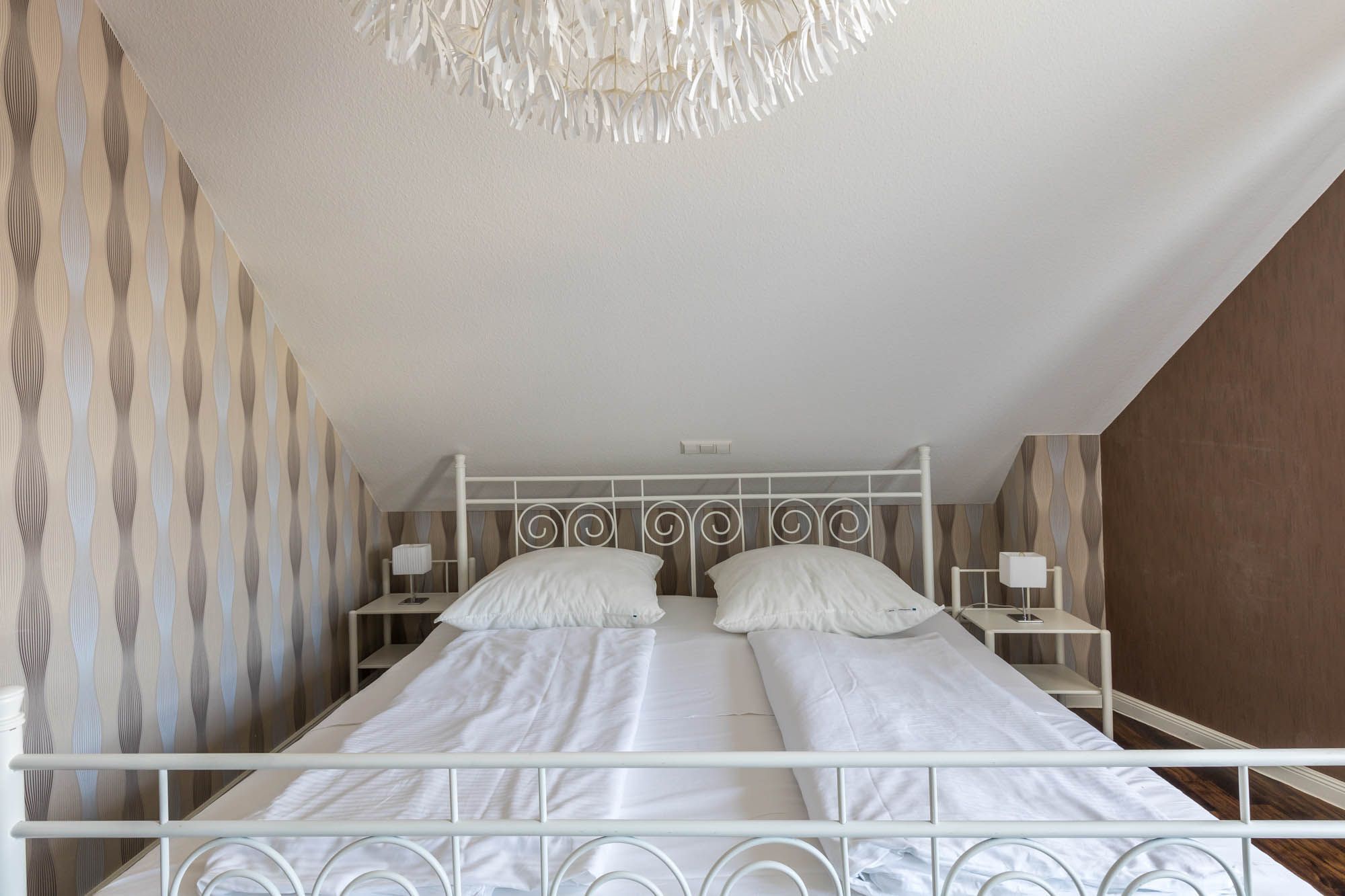 Weiterhin befinden sich zwei Schlafzimmer mit bequemen Doppelbetten in der unteren Ebene dieser allergikergeeigneten Wohnung.