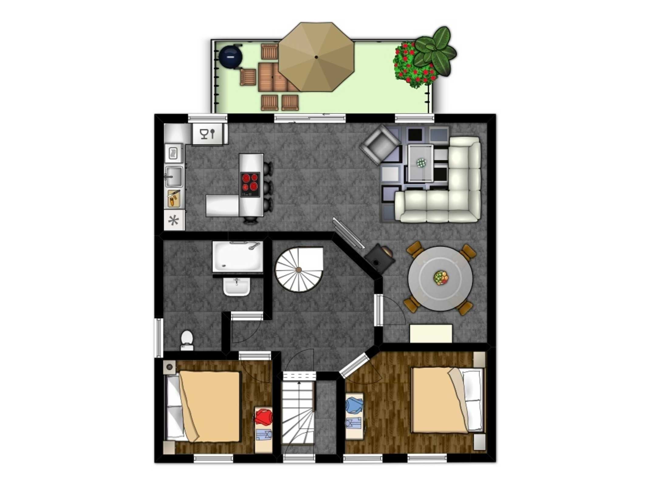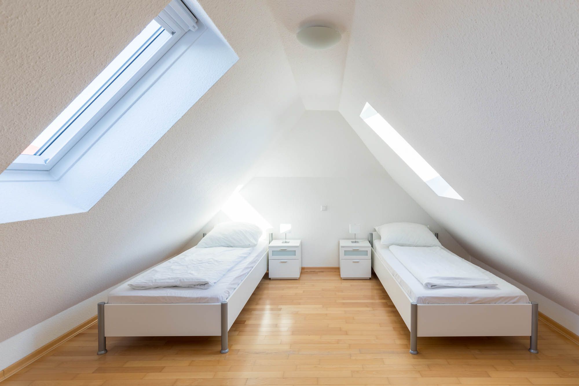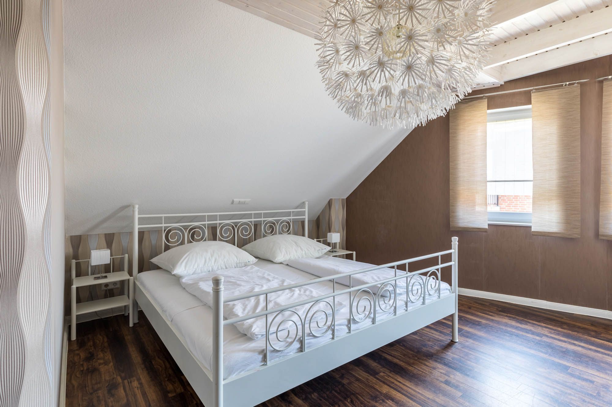 Weiterhin befinden sich zwei Schlafzimmer mit bequemen Doppelbetten in der unteren Ebene dieser allergikergeeigneten Wohnung.