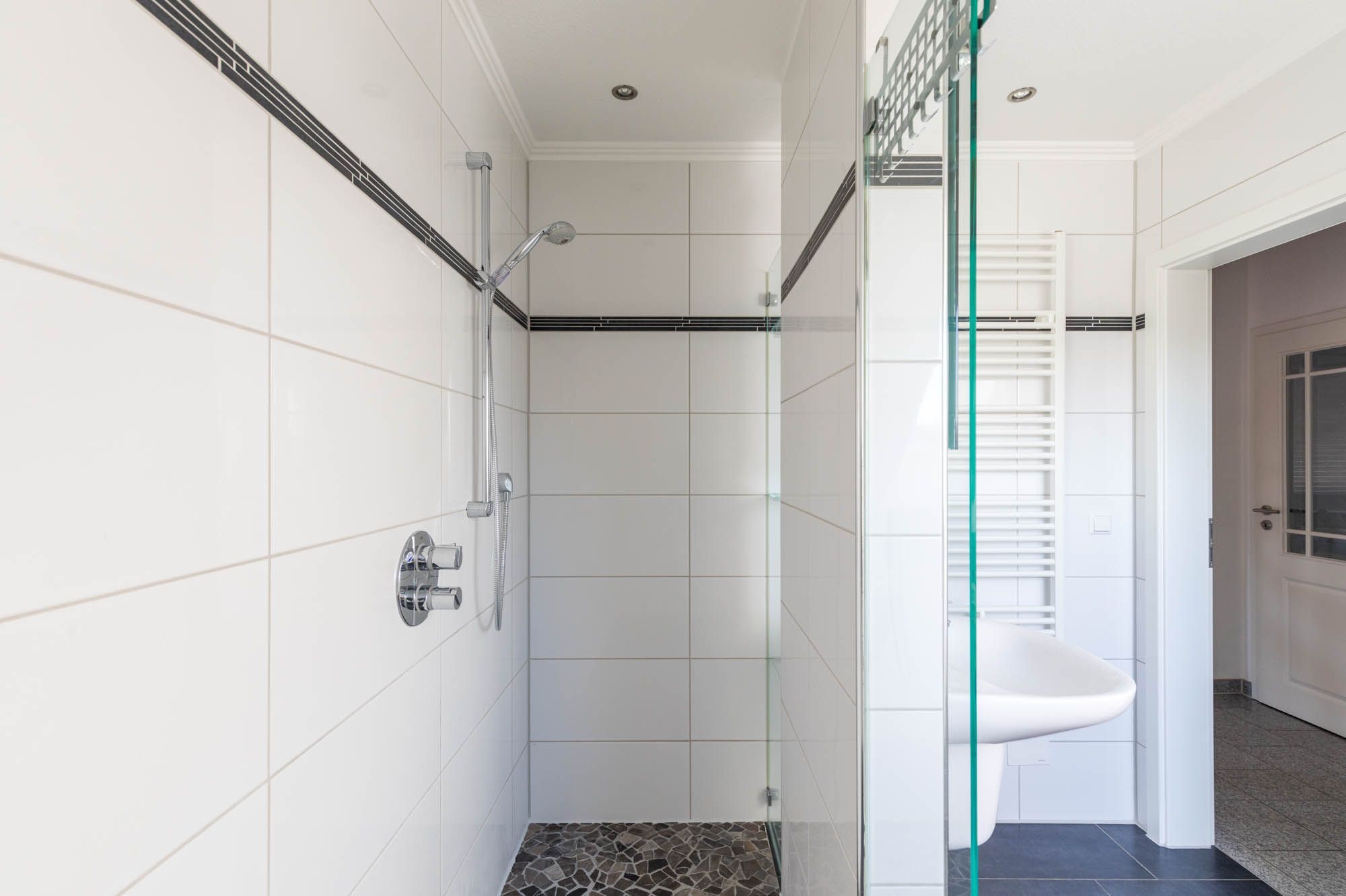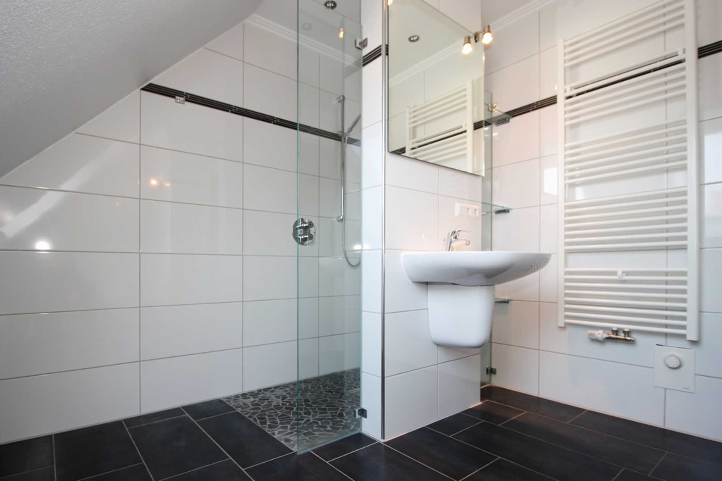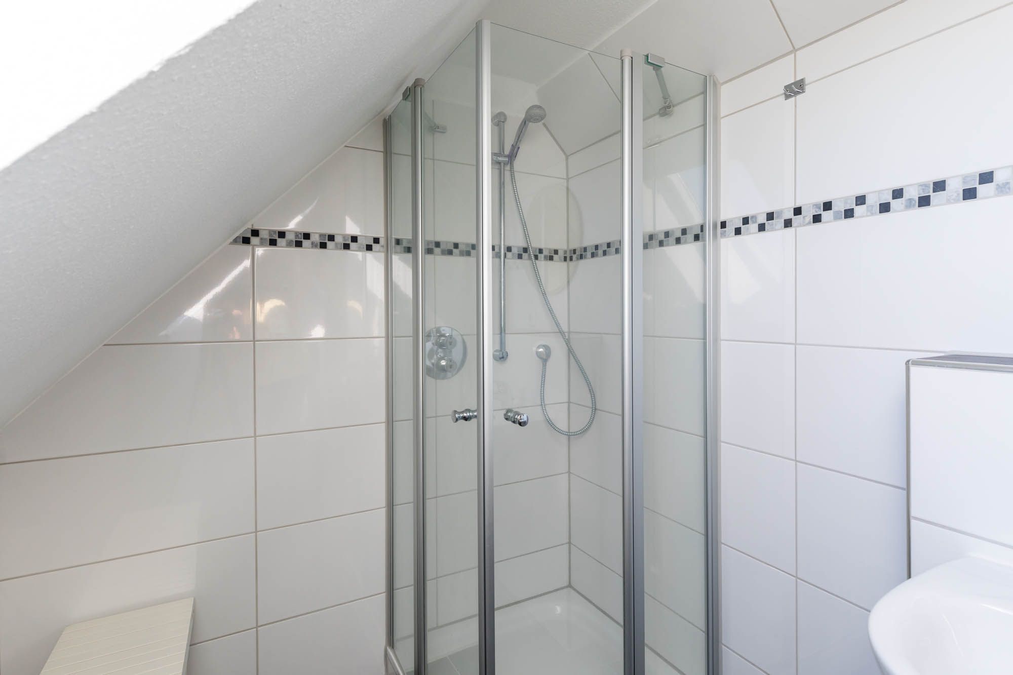 Hier befindet sich außerdem ein Duschbad mit Blick auf die Ostsee.