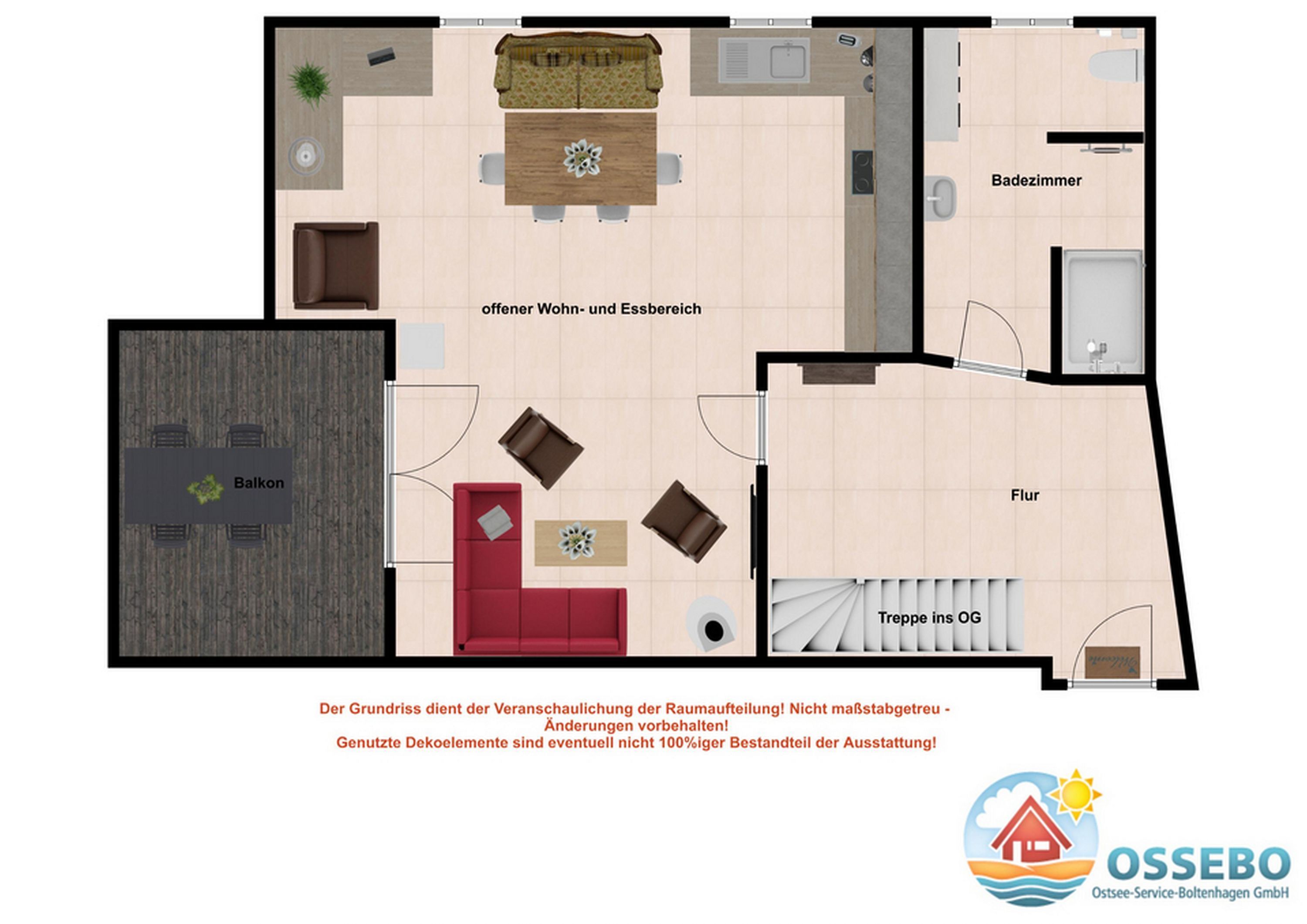 Diese 3-Zimmer-Ferienwohnung mit verbundenem Wohn- und Essbereich eignet sich ideal für einen Urlaub an der Ostsee mit mehreren Gästen.