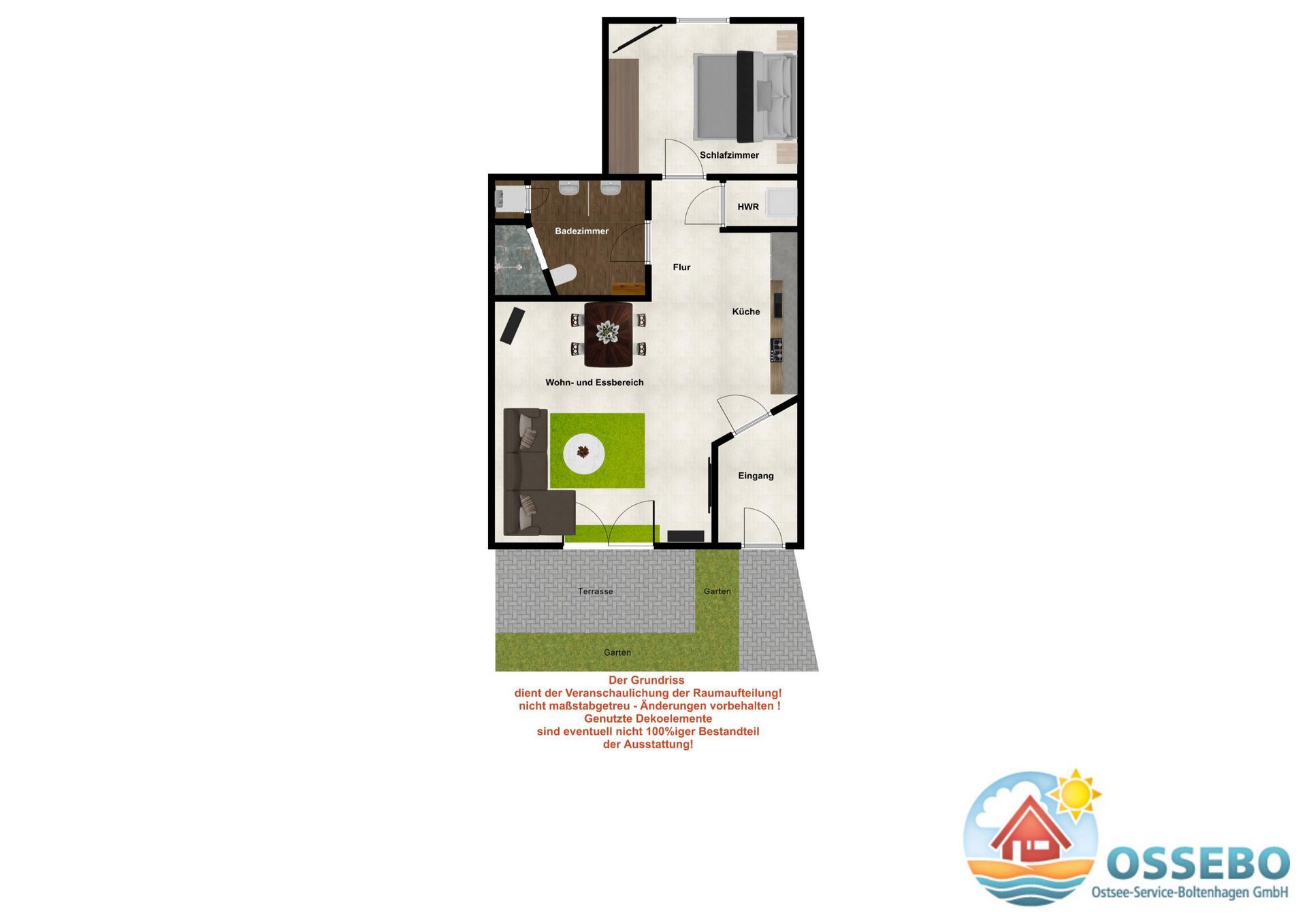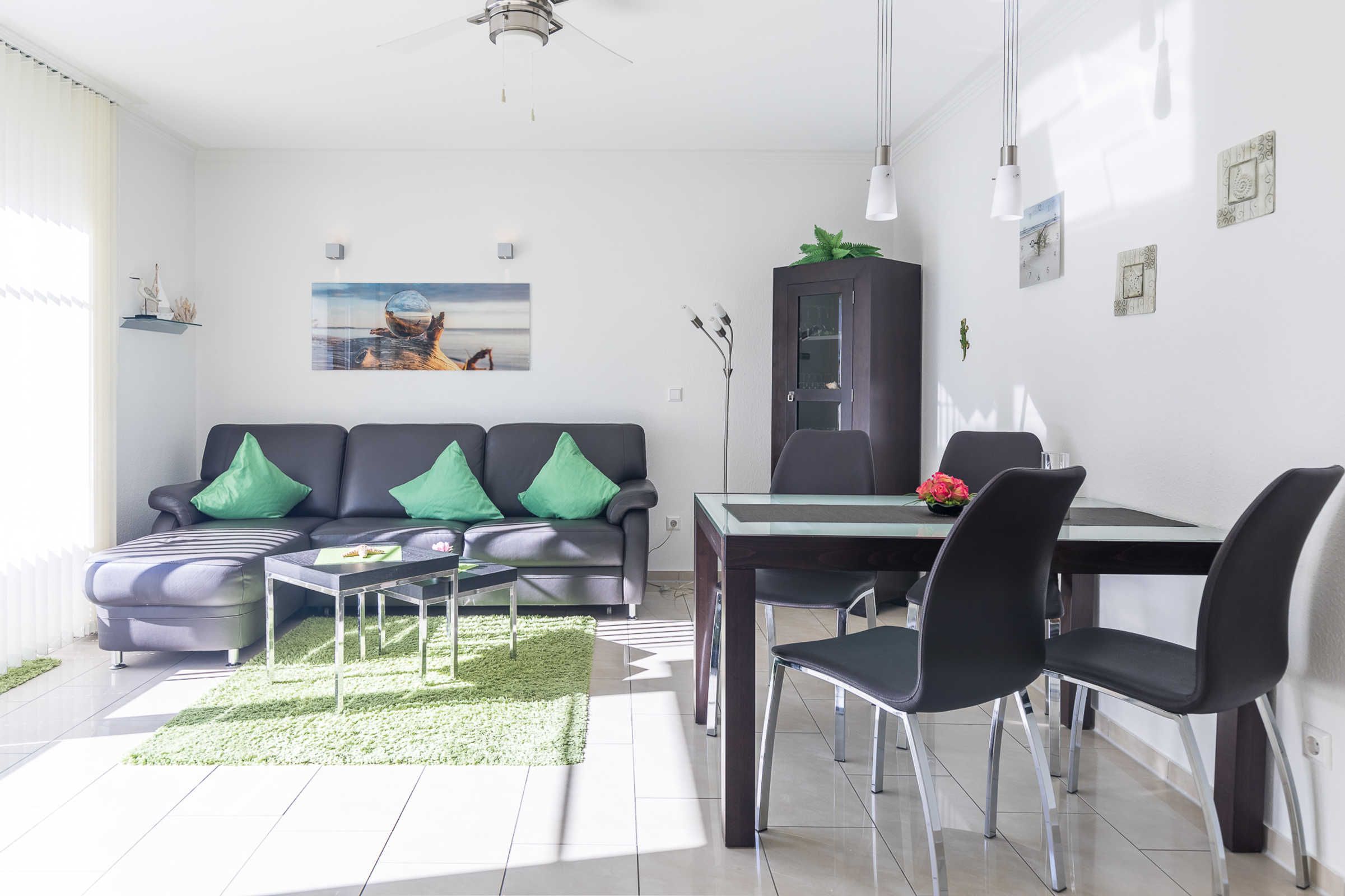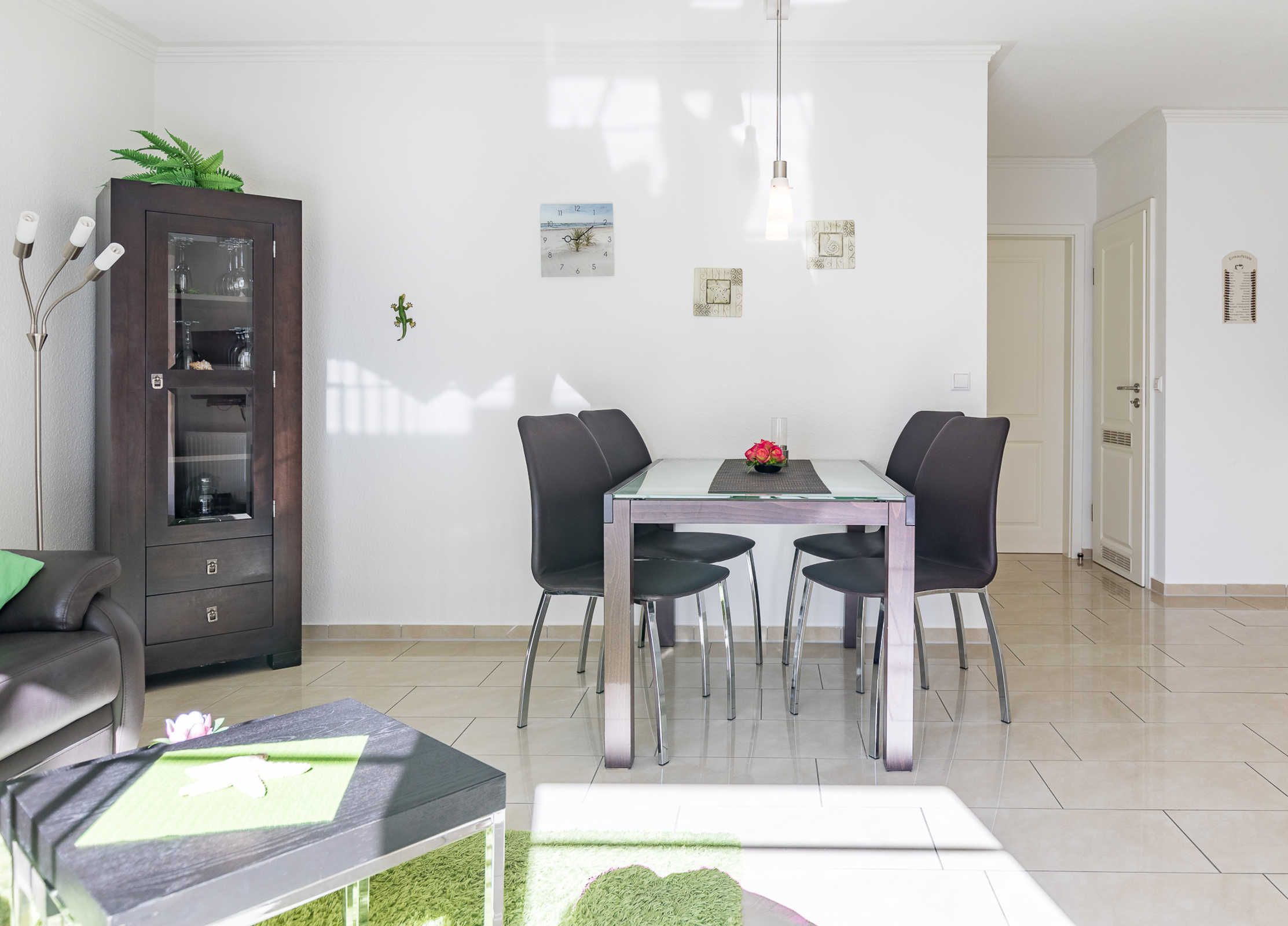Die für 4 Gäste + Kleinkind ausgestattete 2-Zimmer-Wohnung im Erdgeschoss besticht auf ganze 50qm Wohnfläche durch eine ebenso praktische wie geschmackvolle Gestaltung in elegantem Design.