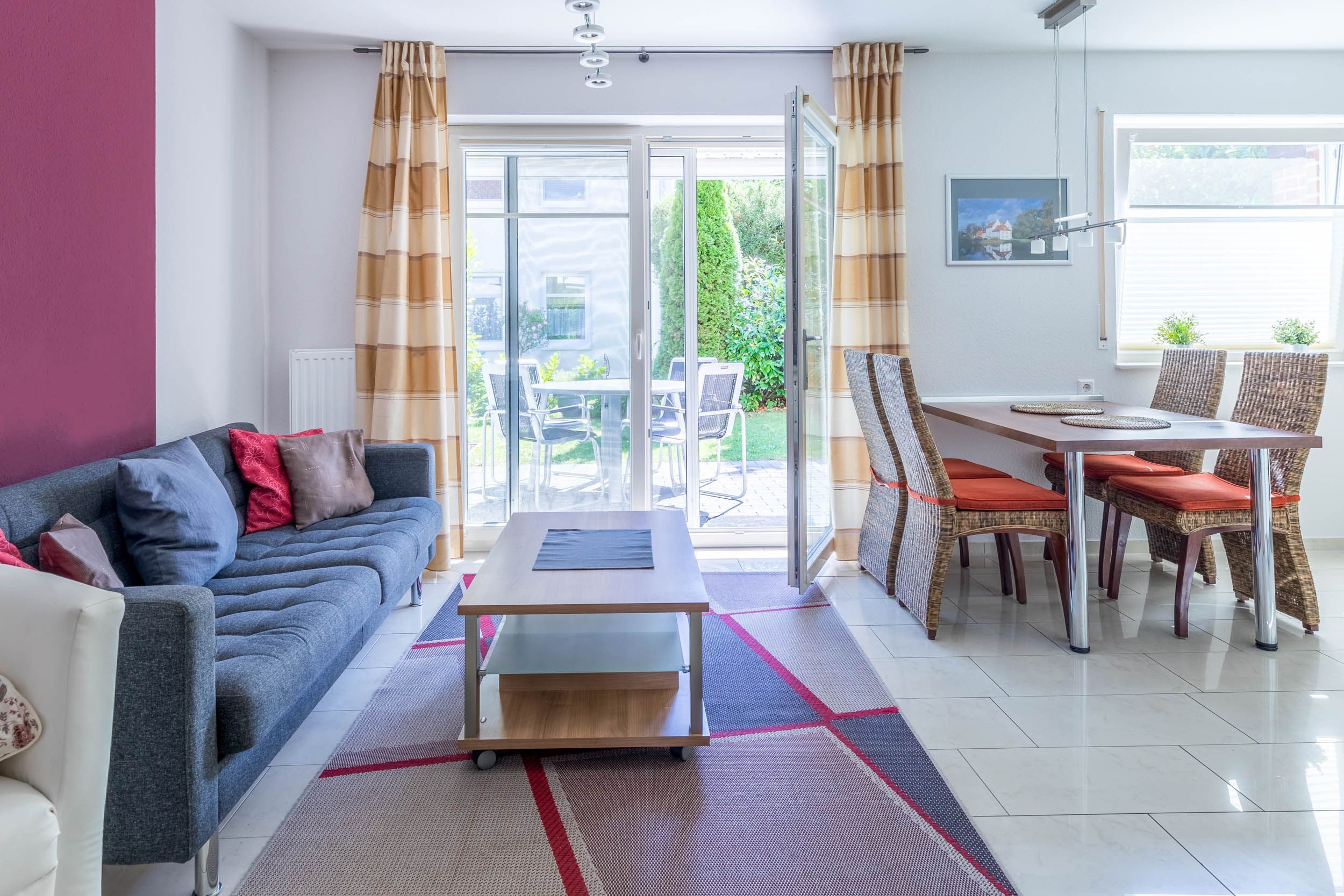 Die 3-Zimmer-Ferienwohnung im Erdgeschoss punktet auf etwa 60qm Wohnfläche mit ihrer modernen Ausstattung für bis zu 4 Gäste + Kleinkind.