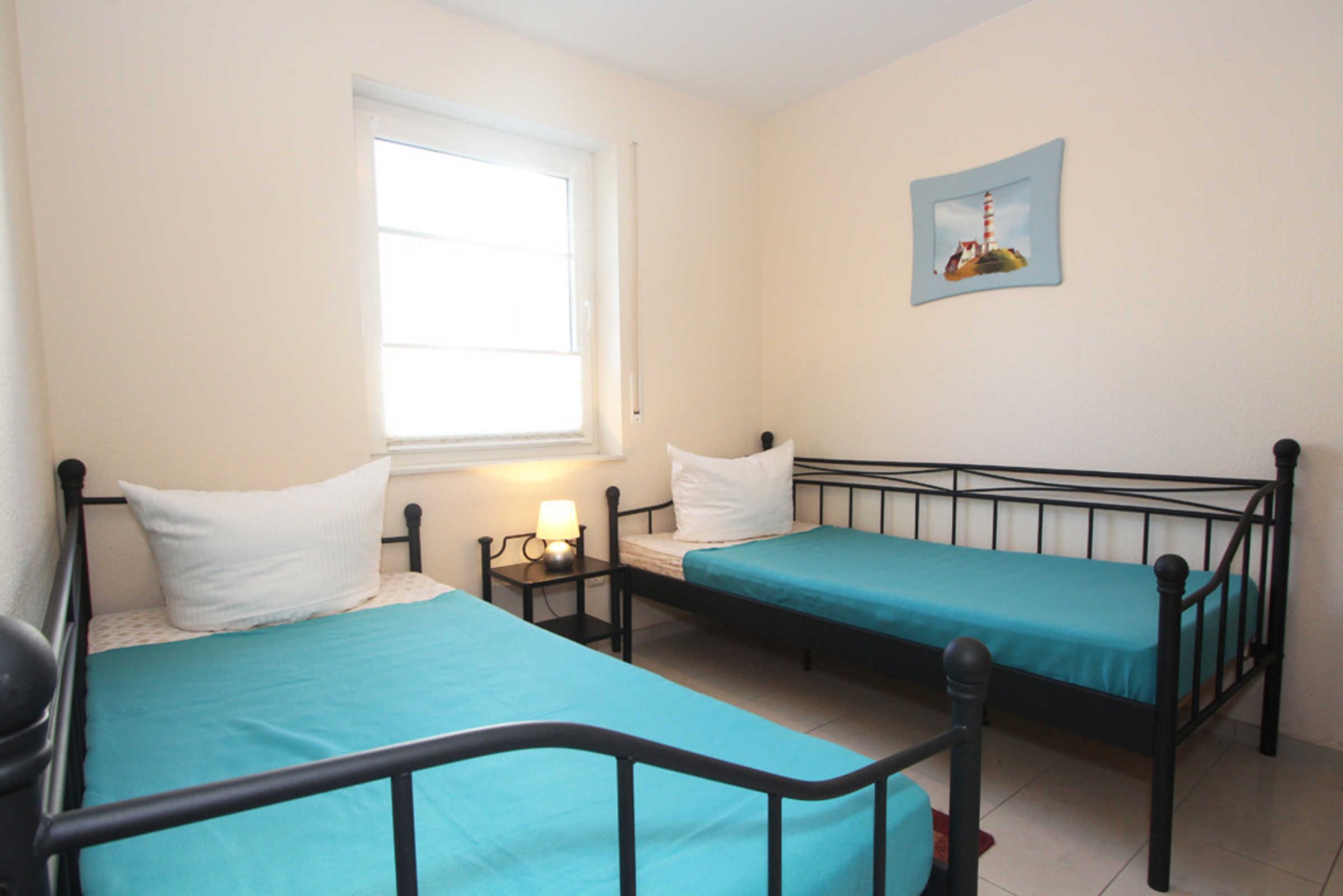 Im Schlafzimmer finden Sie ein breites Doppelbett sowie einen geräumigen Schrank vor, das Gäste-/ Kinderzimmer ist mit zwei Einzelbetten und ebenfalls einem Kleiderschrank ausgestattet.