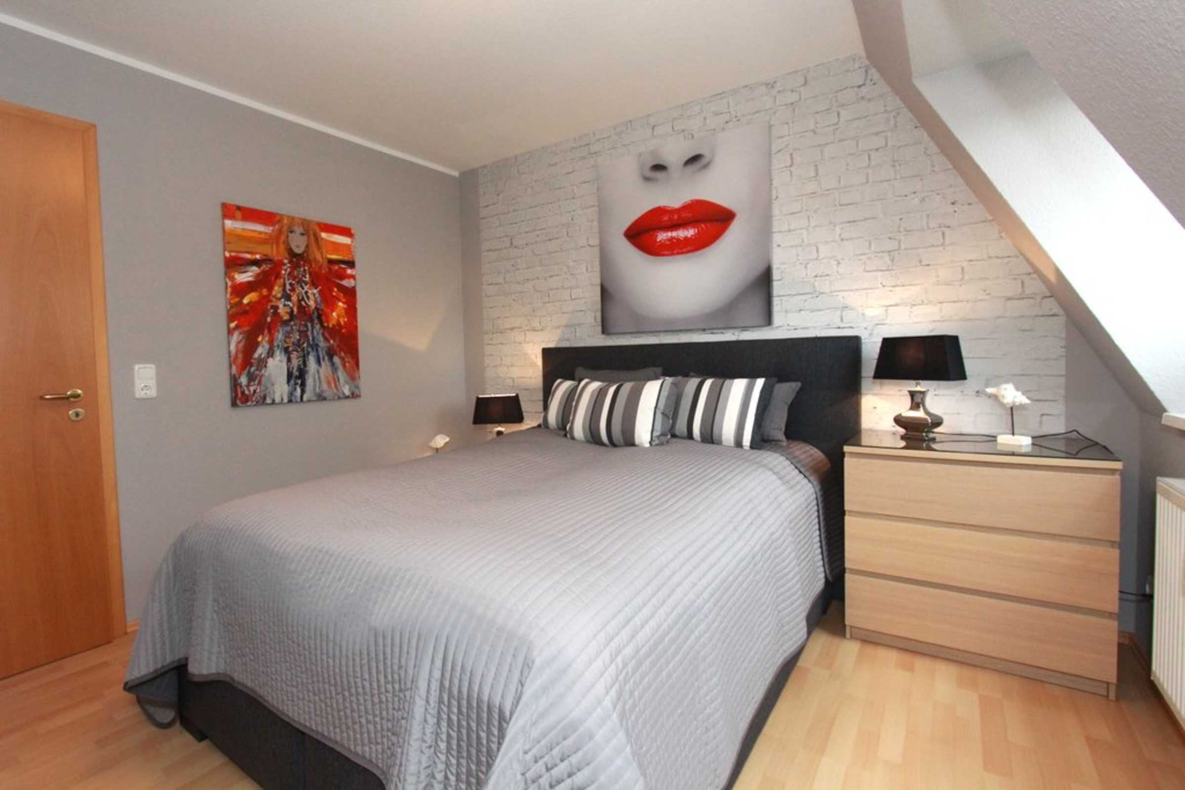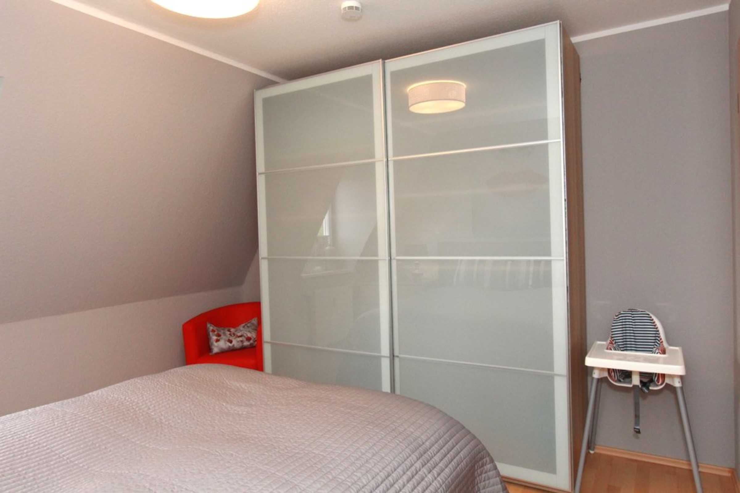 Im Schlafzimmer befindet sich ein Boxspringbett sowie ein großer Kleiderschrank für Ihre Garderobe.