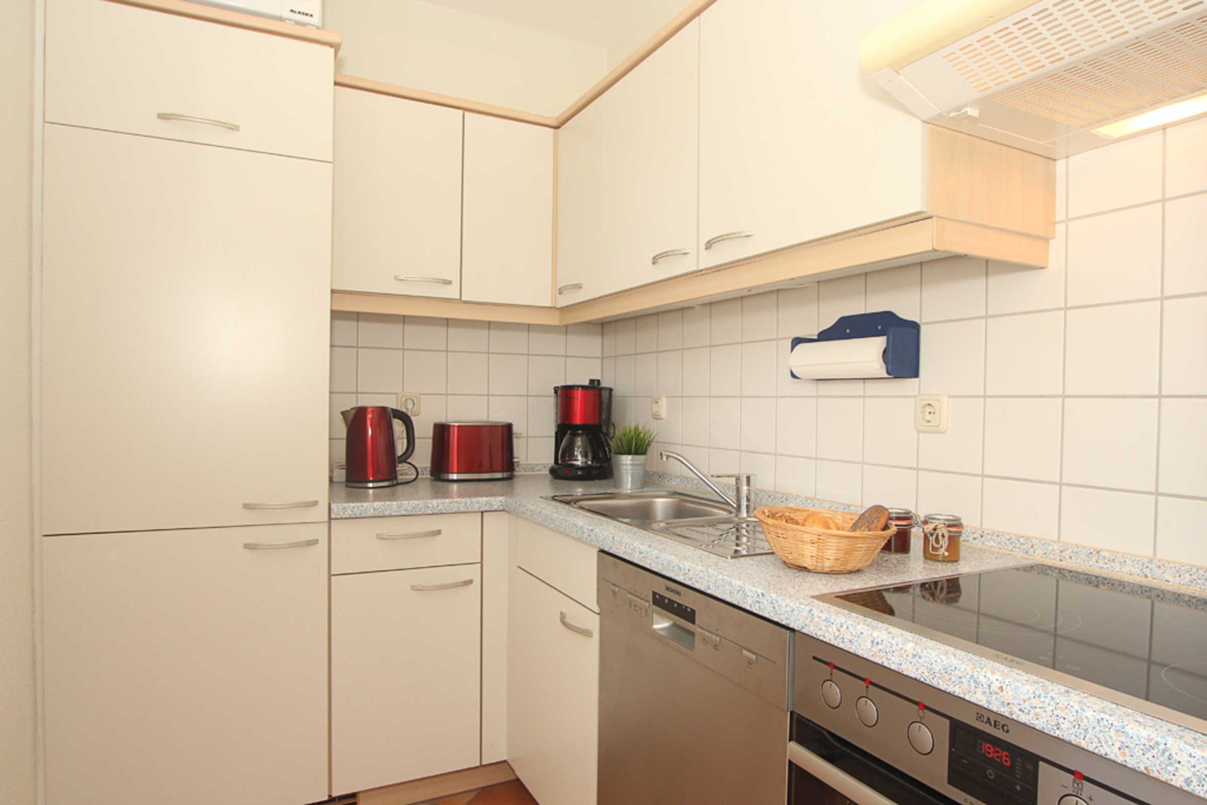 Die Küchenzeile bietet eine vollständige Ausstattung für Ihre Selbstverpflegung. Backofen, Herd (Cerankochfeld), Geschirrspüler, Mikrowelle, Kühlschrank (ein kleines Gefrierfach steht im Bad auf der Waschmaschine) sind nur einige der vorhandenen Küchengeräte.