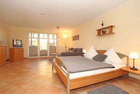Im großen kombinierten Wohn- und Schlafbereich stehen sowohl Flatscreen-TV und Stereoanlage als auch ein bequemes Doppelbett (180x200cm) sowie eine ausklappbare Schlafcouch (Liegefläche ausgeklappt 140x200cm) zur Verfügung. Sogar ein Reisebettchen könnte hier noch bei Bedarf aufgestellt werden.