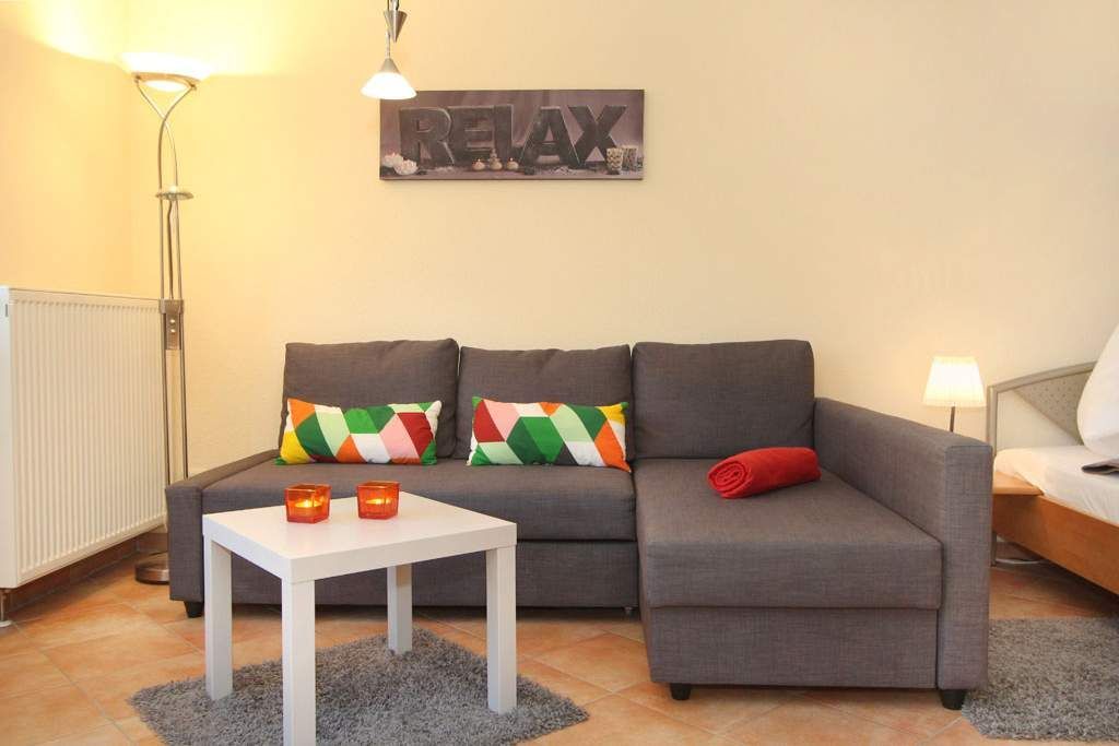 Diese helle und moderne 1-Zimmer-Ferienwohnung liegt im Erdgeschoss und bietet auf 50qm Wohnfläche eine Ausstattung bis max. 3 Gäste.