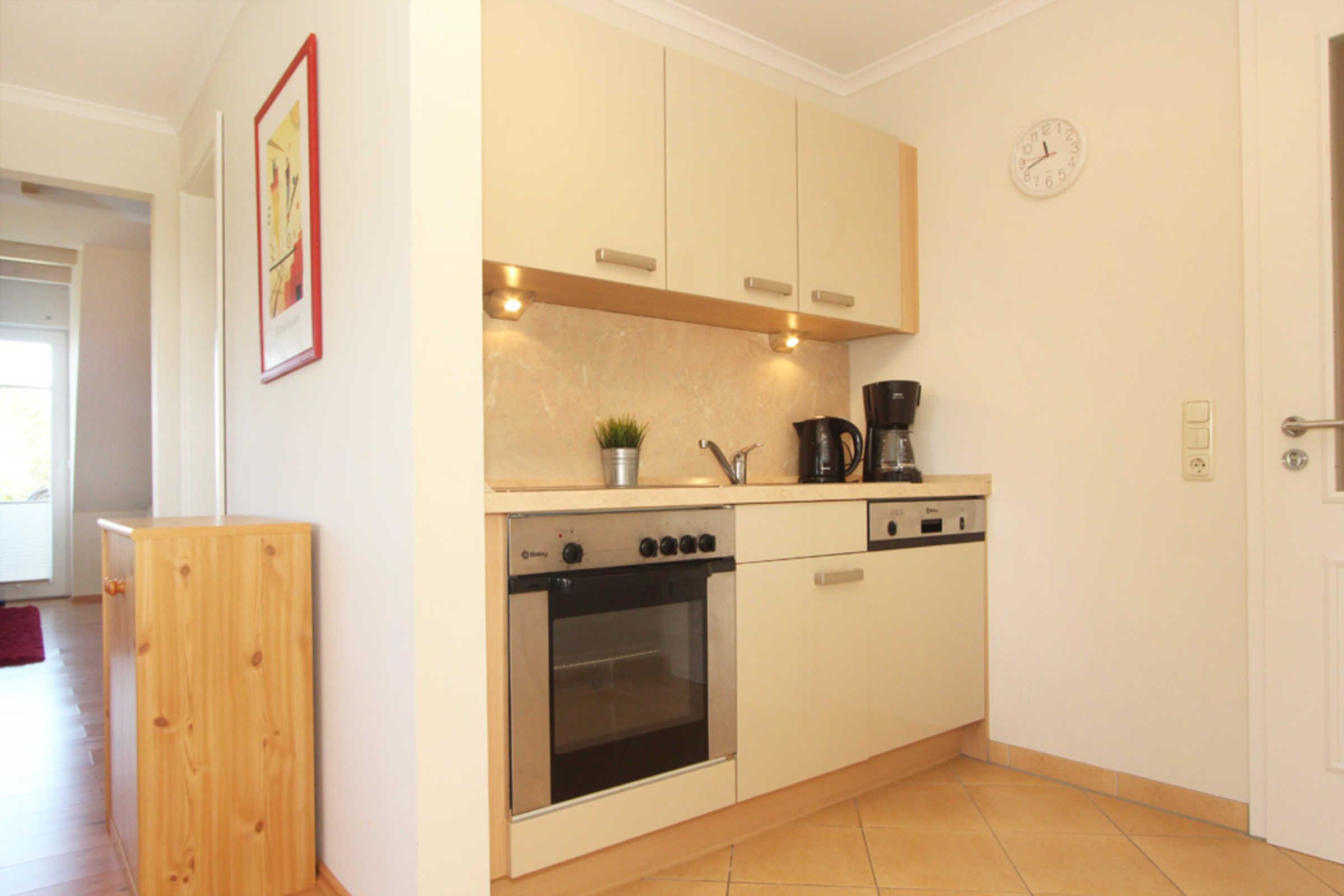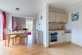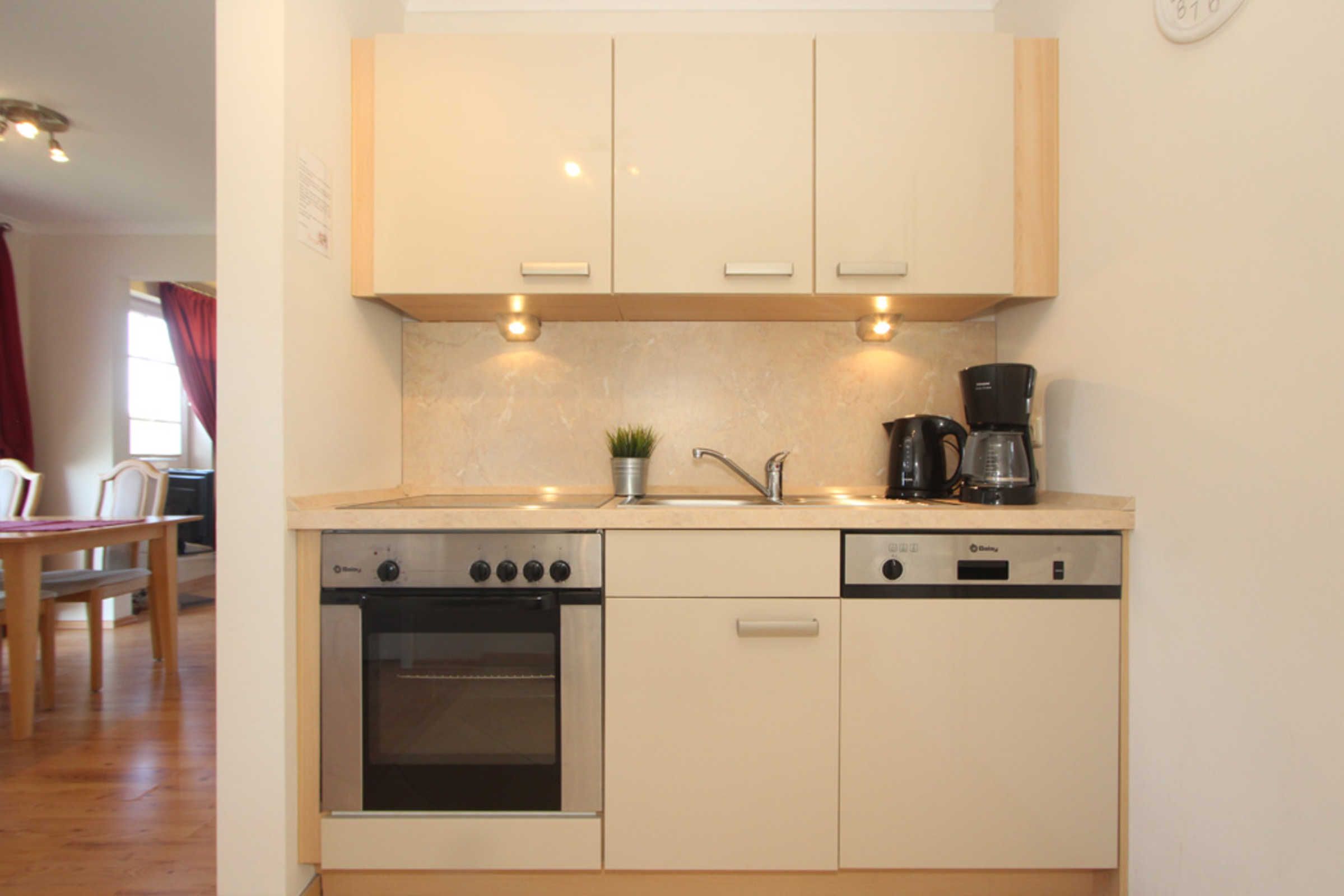 In der offenen Küche finden Sie unter anderem einen Geschirrspüler, ein Cerankochfeld und eine Mikrowelle, so dass Sie Mahlzeiten zubereiten und gemeinsam in der angrenzenden Essecke genießen können.
