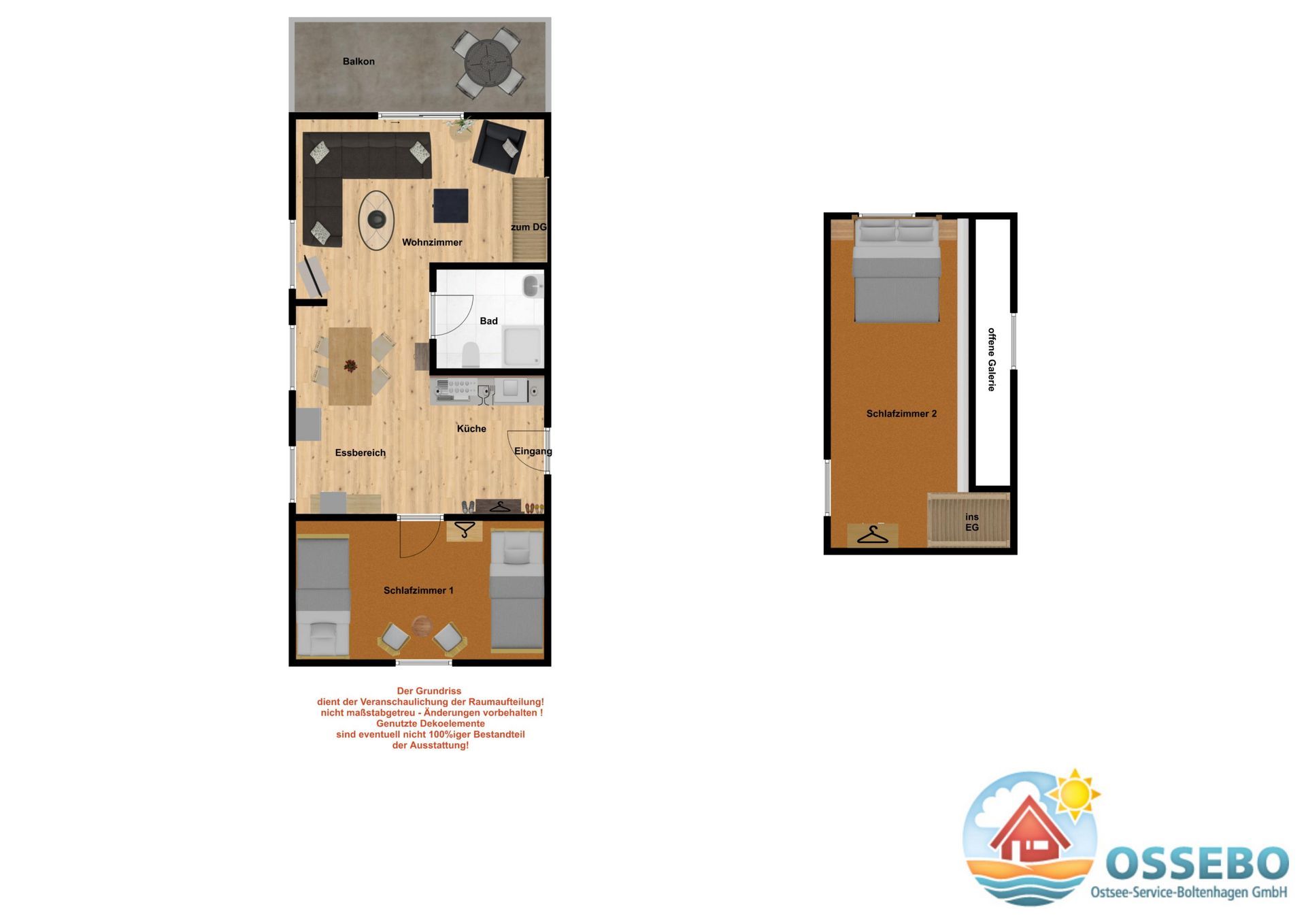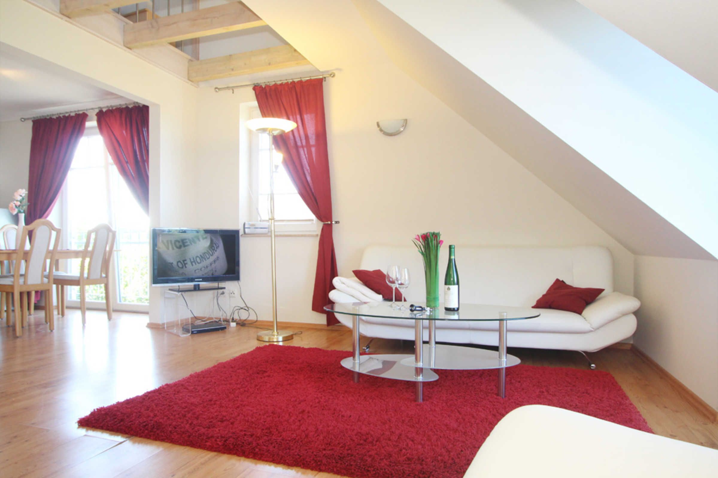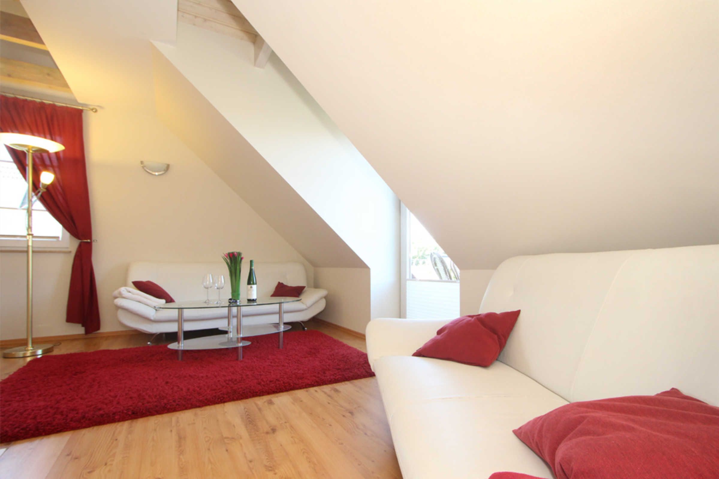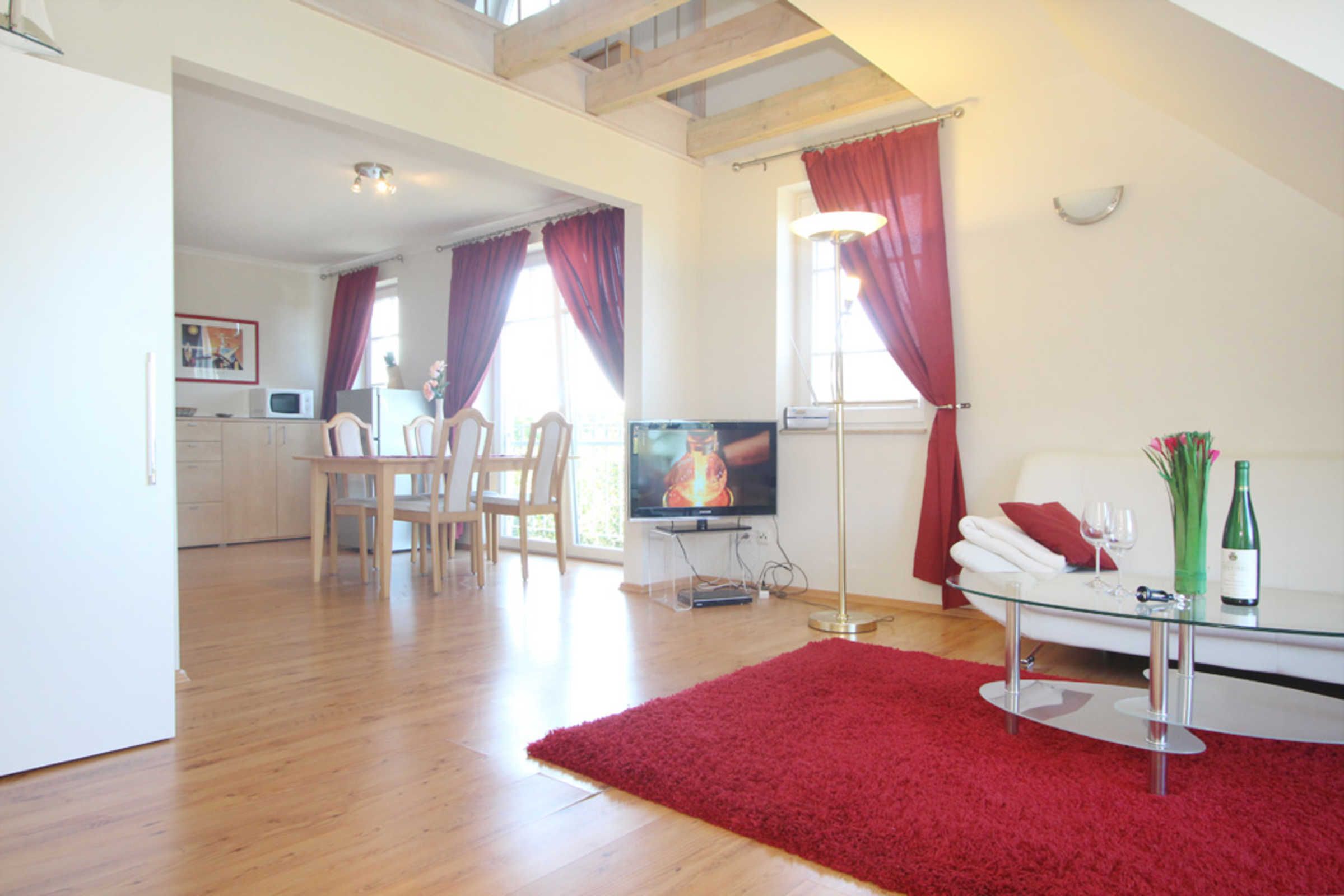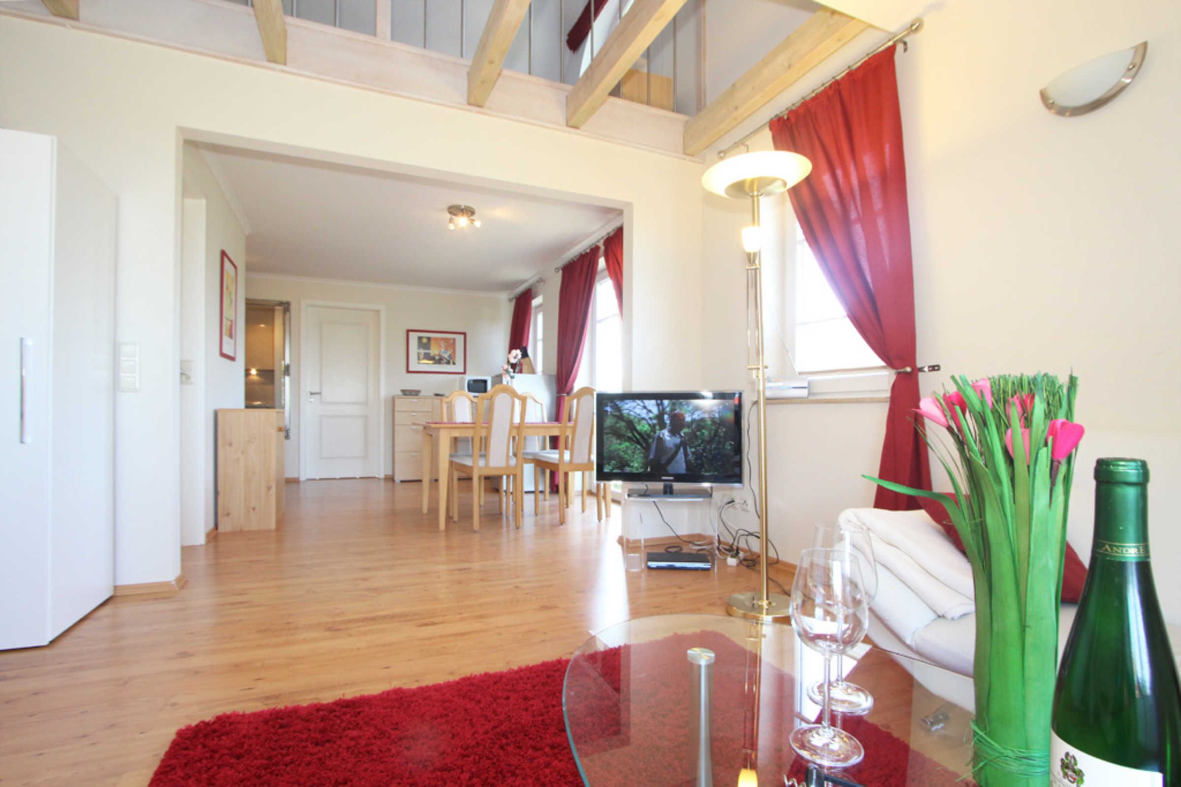 Die schöne 3-Zimmer-Ferienwohnung für max. 4 Gäste befindet sich im 1.OG und erstreckt sich mit ihren ca. 60qm Wohnfläche über 2 Ebenen.