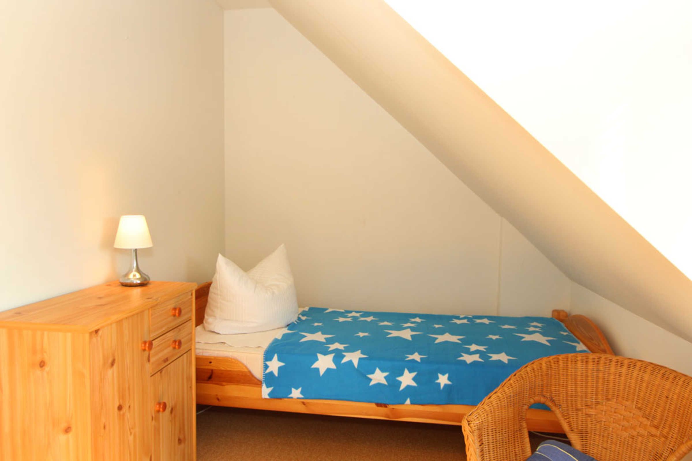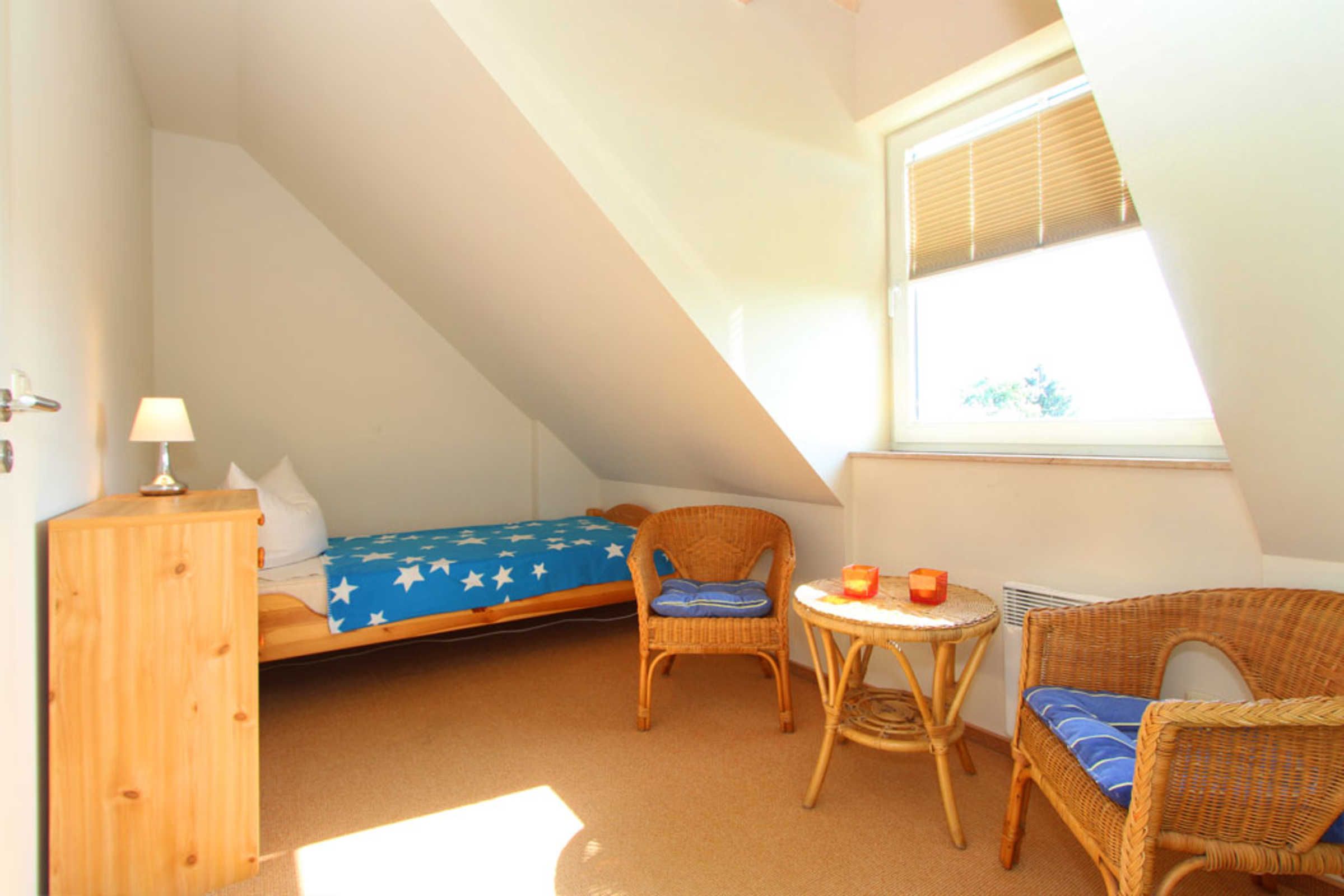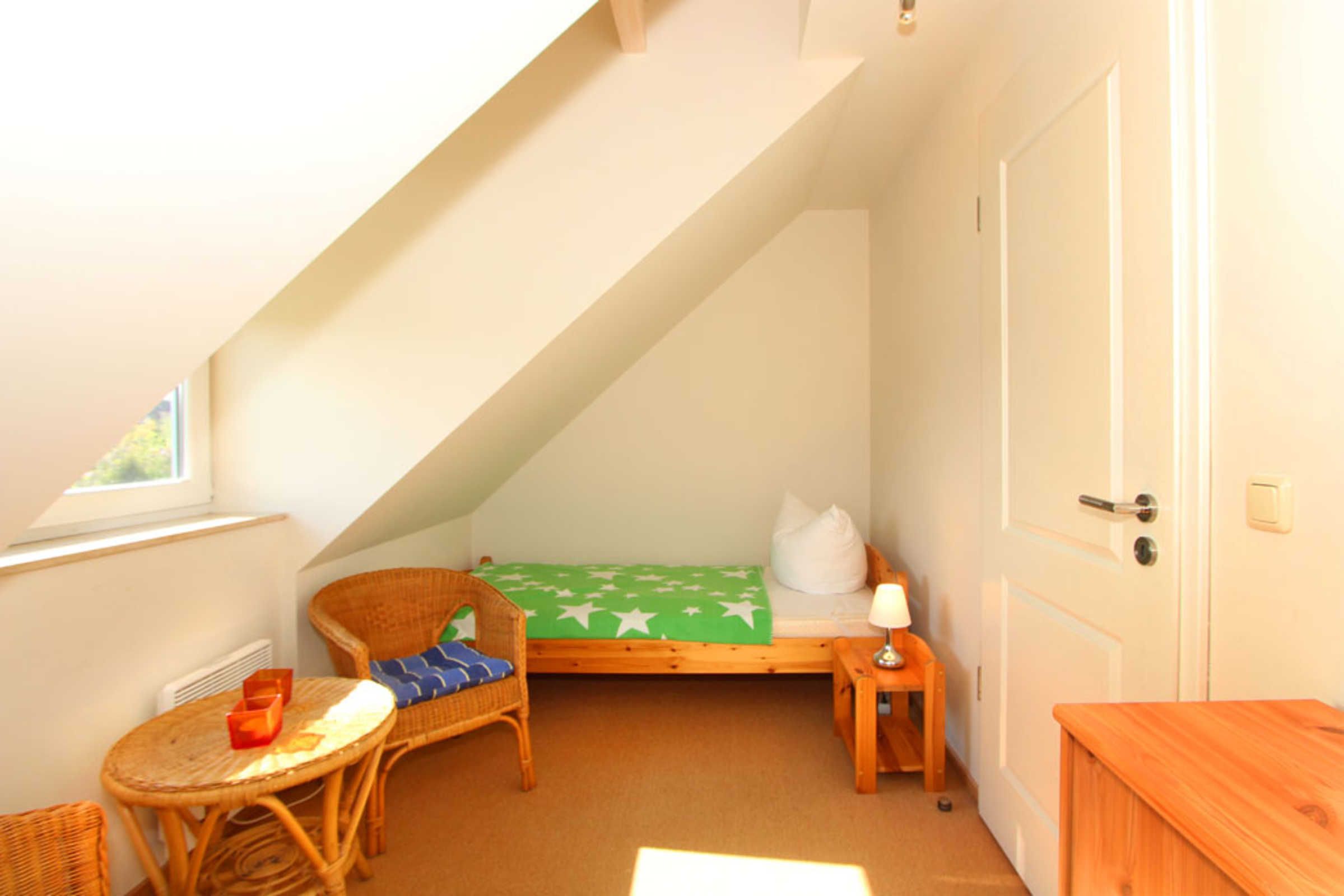 Auch ein Gäste-/ Kinderzimmer mit zwei Einzelbetten, Kommode und kleiner Sitzecke befindet sich auf dieser Etage.