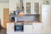 Die offene und technisch hervorragend bestückte Küche enthält einen Essbereich, der zu gemütlichen Mahlzeiten einlädt. Geschirrspüler, Mikrowelle oder auch der Kühlschrank mit Gefrierfach sind nur einige Ausstattungsmerkmale der Kücheneinrichtung.