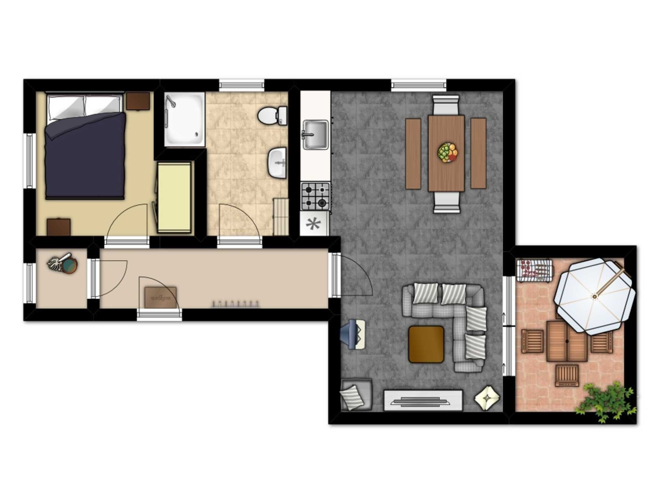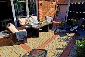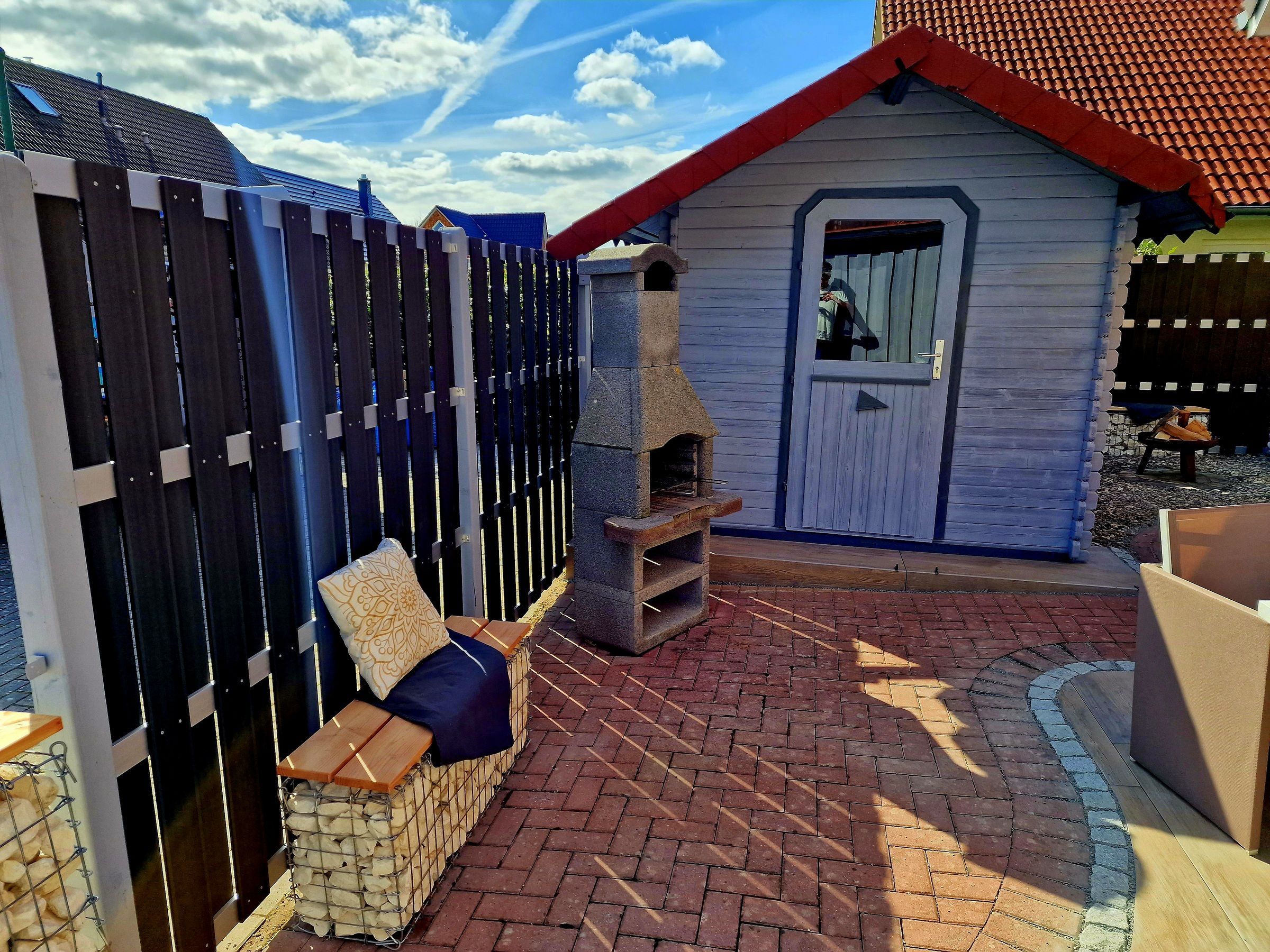 Im Außenbereich steht neben einer möblierten Terrasse auch ein Grill zur Verfügung.