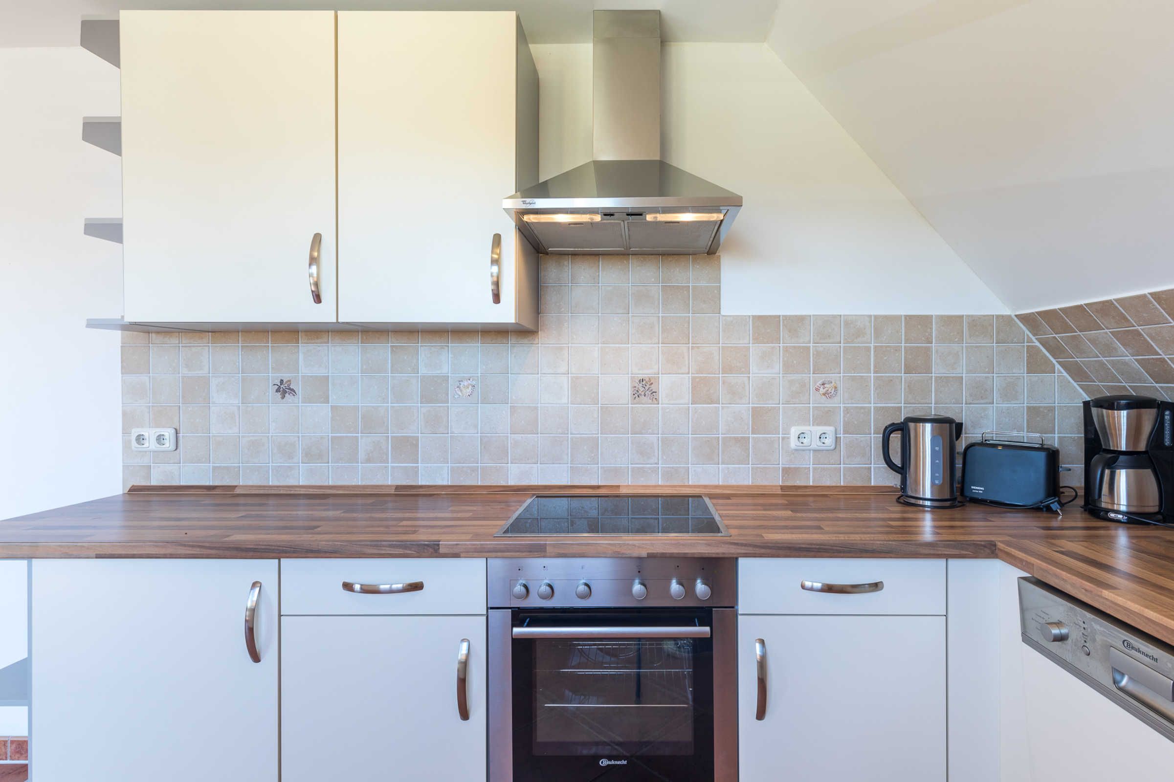 Die untere Etage verfügt über einen hellen und freundlichen Wohn-/Essbereich mit offener Wohnküche. Die Küchenzeile ist mit allem ausgestattet, was Sie zum Kochen, Braten und Backen benötigen. Der angrenzende Essbereich bietet der ganzen Familie Platz für die gemeinsamen Mahlzeiten.
