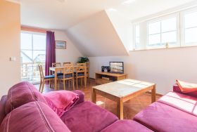 Die 3-Zimmer-Ferienwohnung im 1. Obergeschoss ist für einen Urlaub mit bis 4 Personen + Baby/ Kleinkind eingerichtet. Sie erstreckt sich über 2 Ebenen.