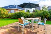 Auf der großen Sofalandschaft lässt es sich dazu gemütlich chillen. Die separate Essecke bietet Ihnen die Möglichkeit, bequem z.B. Ihre Mahlzeiten einnehmen zu können. Von hier aus erreichen Sie auch die möblierte Südost-Terrasse.