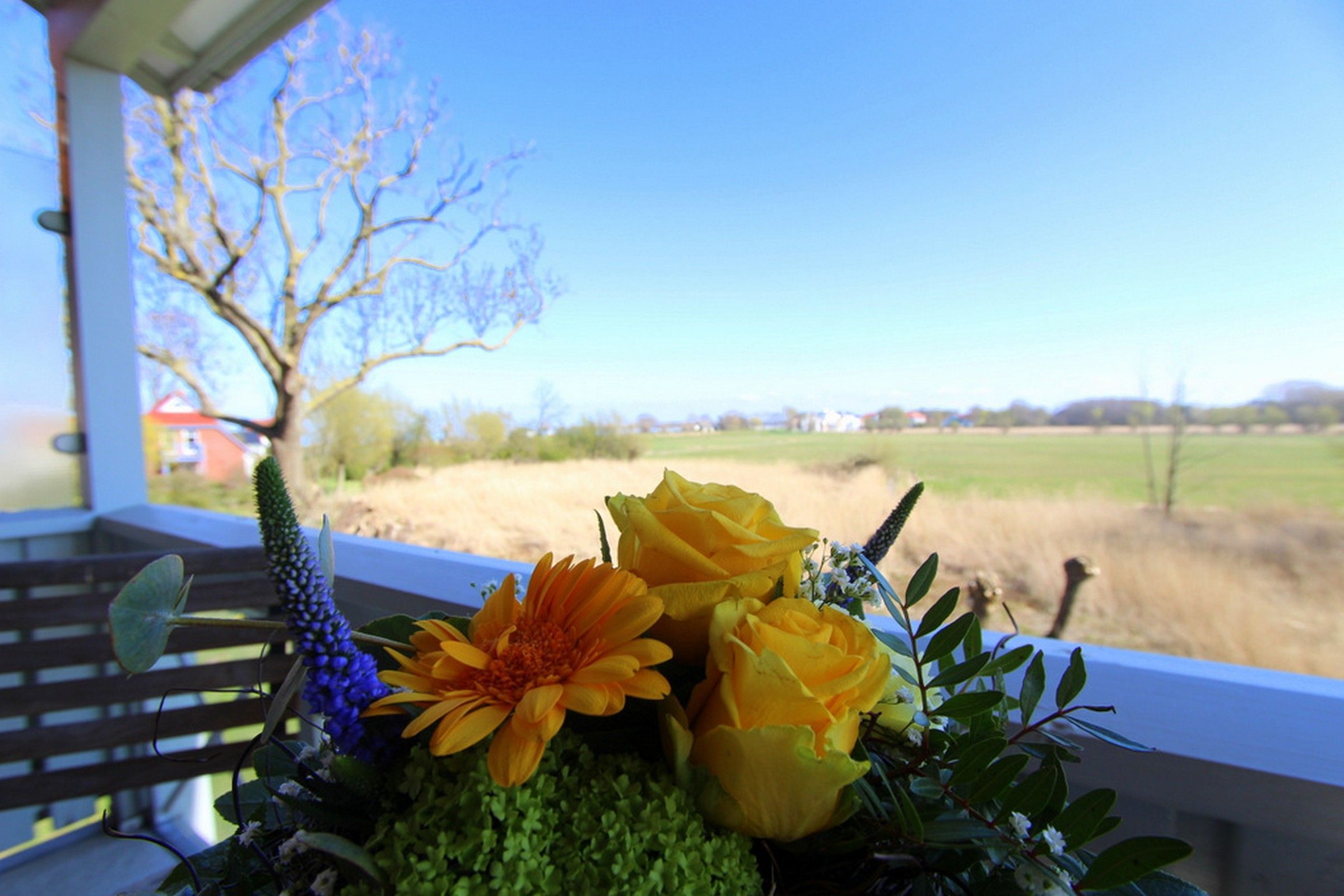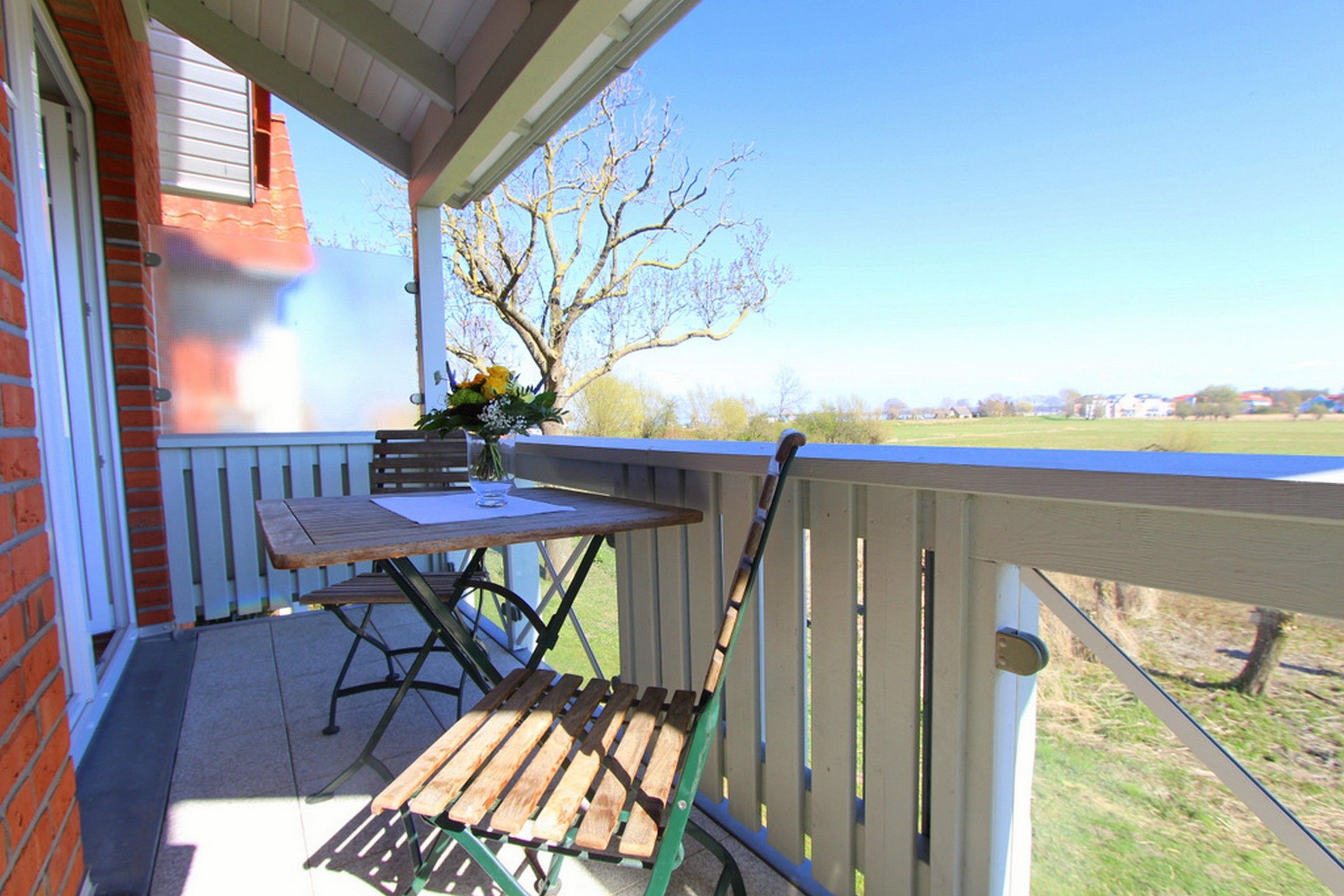Der sonnige, möblierte Südost-Balkon lädt zum Entspannen ein. Genießen Sie diesen herrlichen Ausblick, auch ein wenig auf die schöne Ostsee.