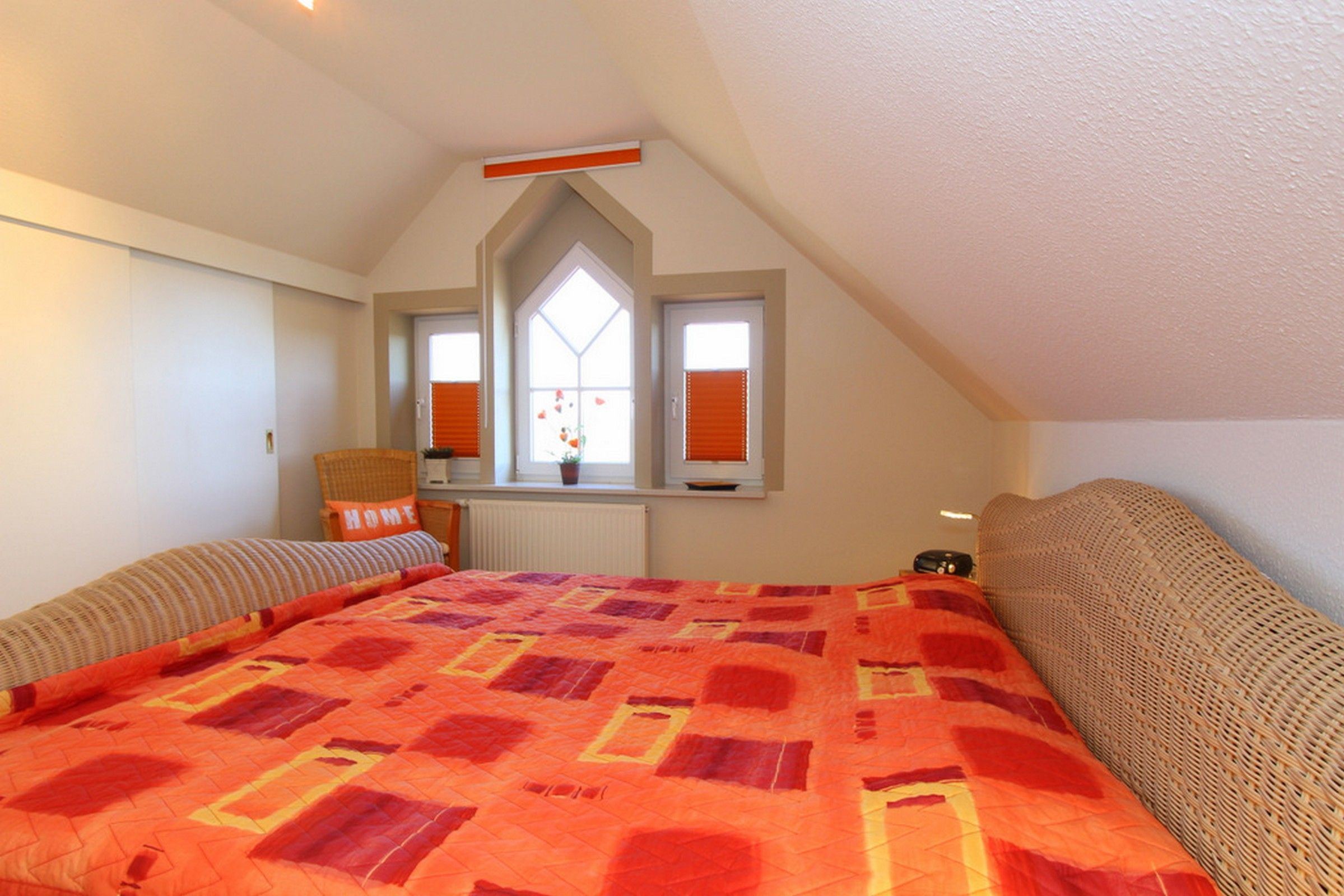 In der 2. Wohnebene, im DG befindet sich das Schlafzimmer mit einem stattlichen Doppelbett auch von dort blickt man auf die Ostsee! Ein zweiter TV mit integriertem DVD-Player sowie ein Kleiderschrank komplettieren diese Räumlichkeit.