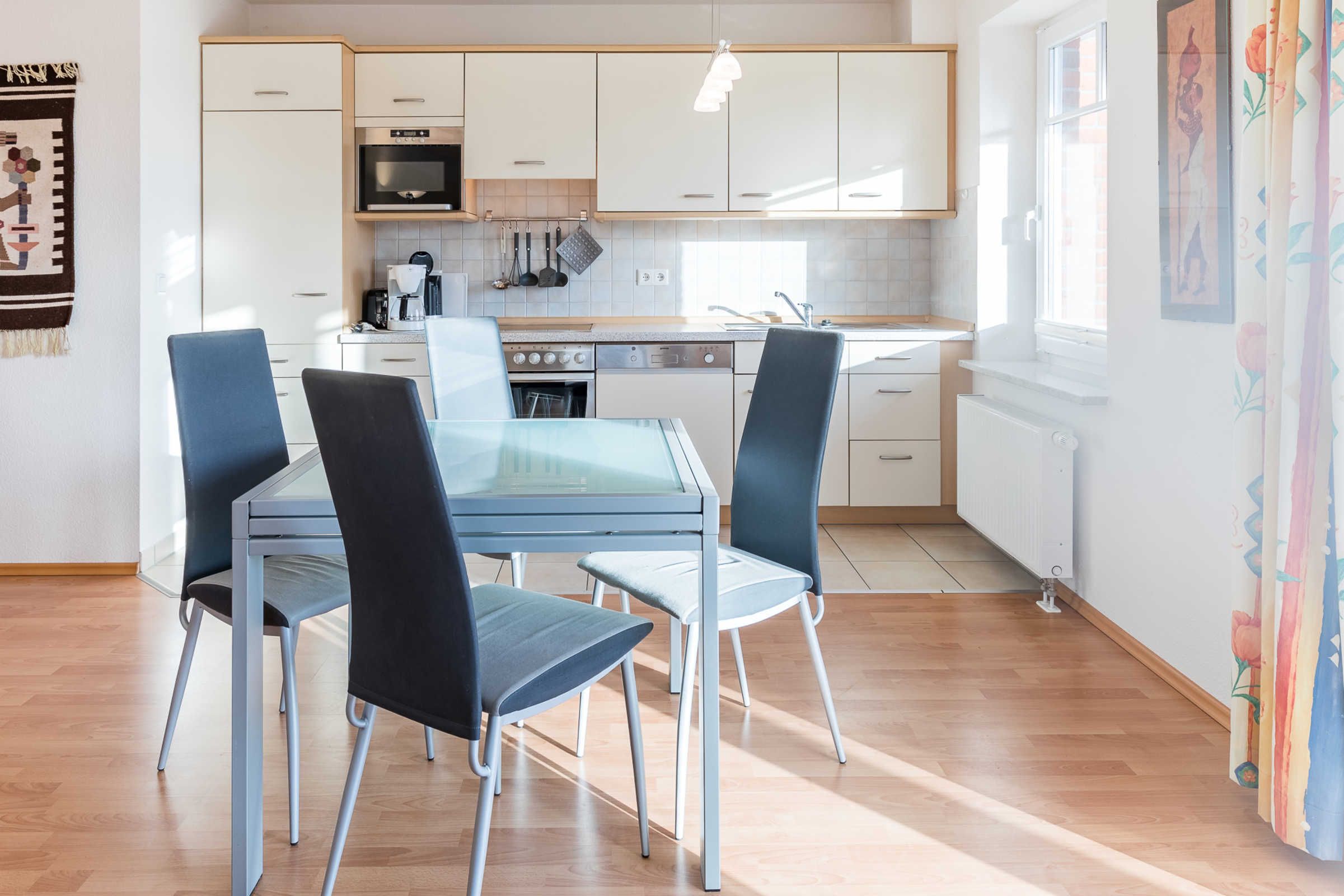 Sie besticht durch ihren hellen, großzügigen Wohn- und Essbereich mit offener Küchenzeile. Zur Küche gehören ein Geschirrspüler, ein Cerankochfeld mit Backofen und vieles mehr für Ihre Selbstverpflegung.