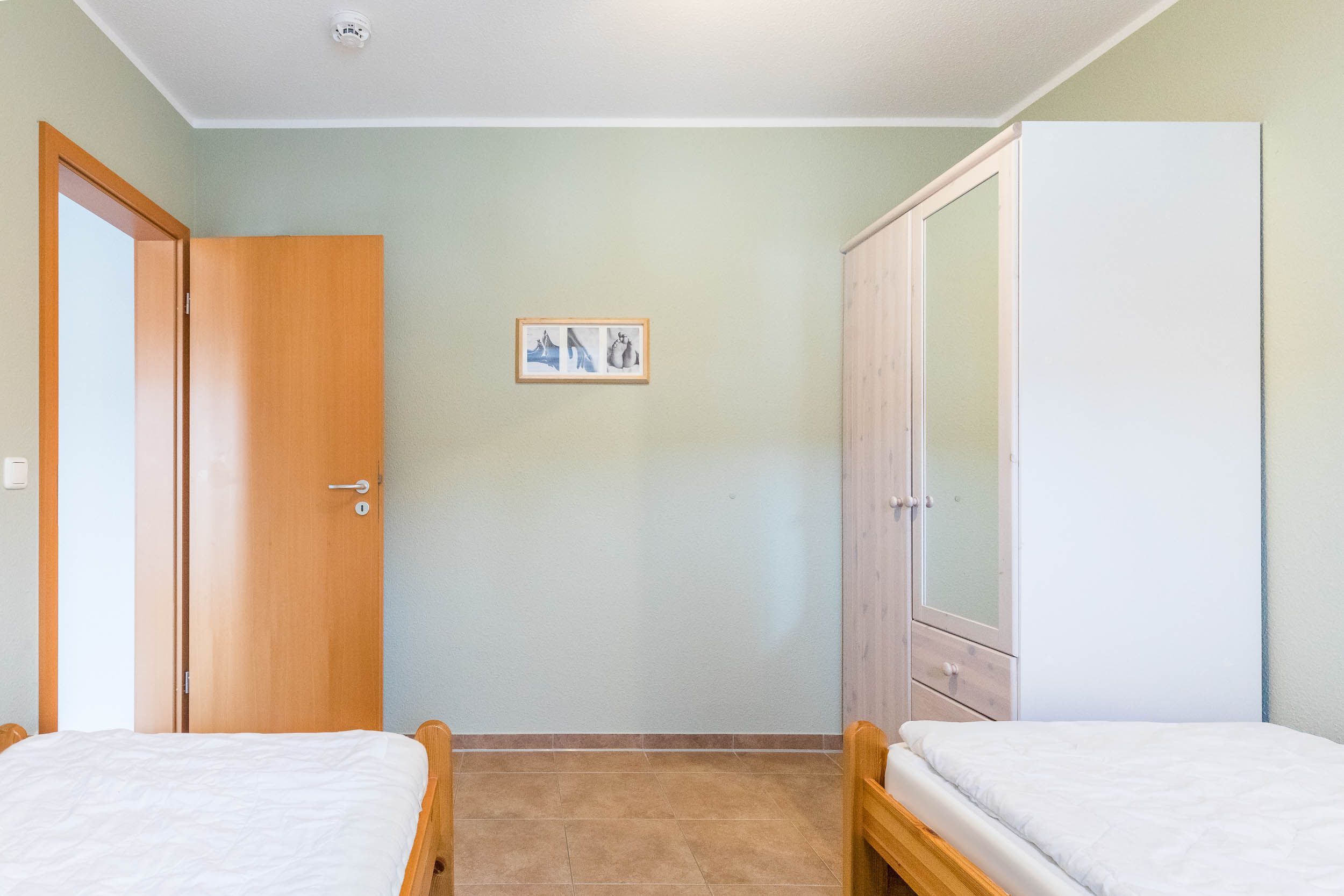 Weiterhin befindet sich das Gäste-/ Kinderzimmer auf dieser Etage. Dieses bietet 2 Einzelbetten und einen großen Kleiderschrank.