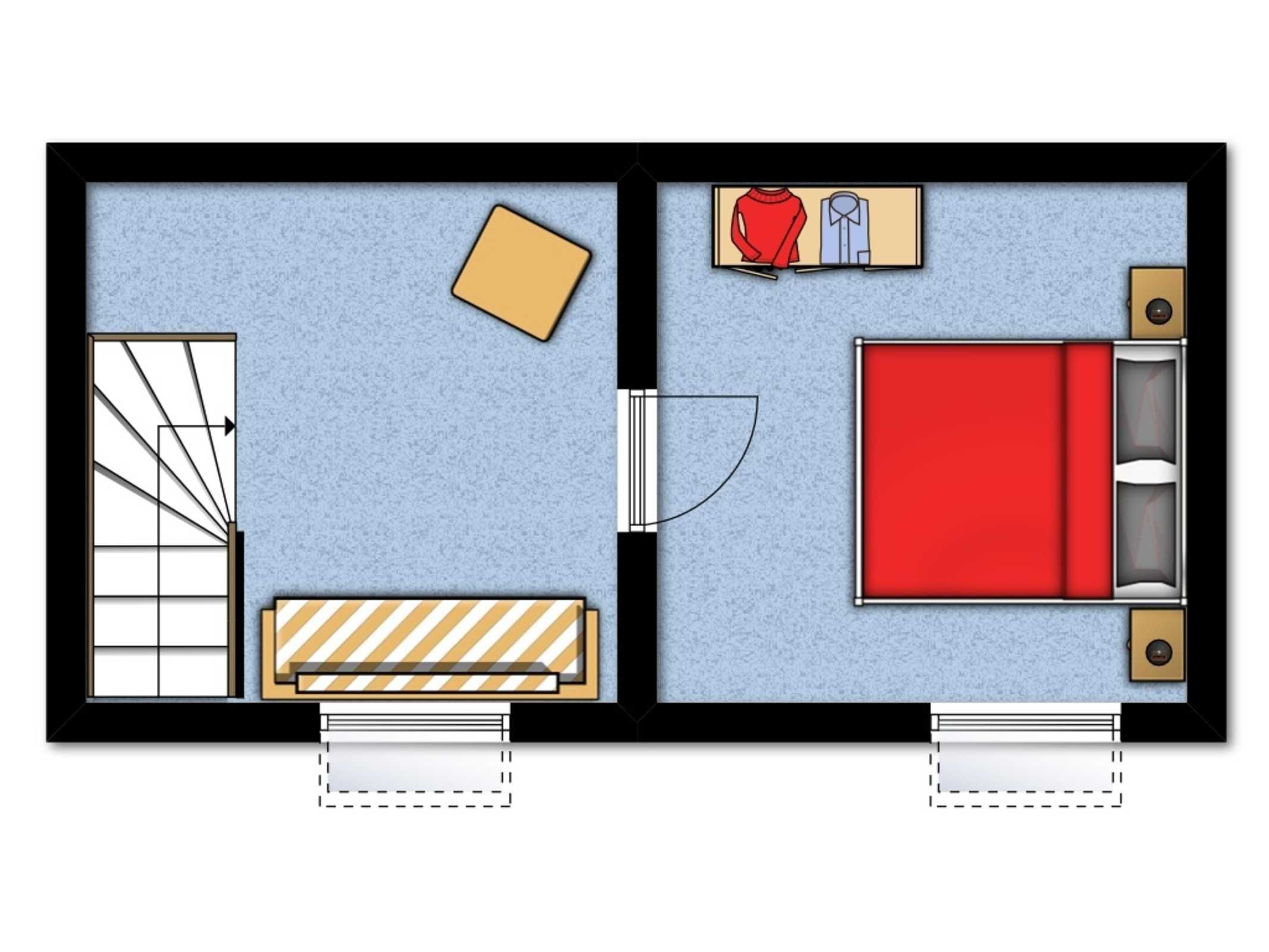 In der zweiten Wohnebene, im DG finden Sie eine offene Galerie mit Schlafcouch, die im ausgezogenen Zustand für zwei weitere Personen fungieren kann.