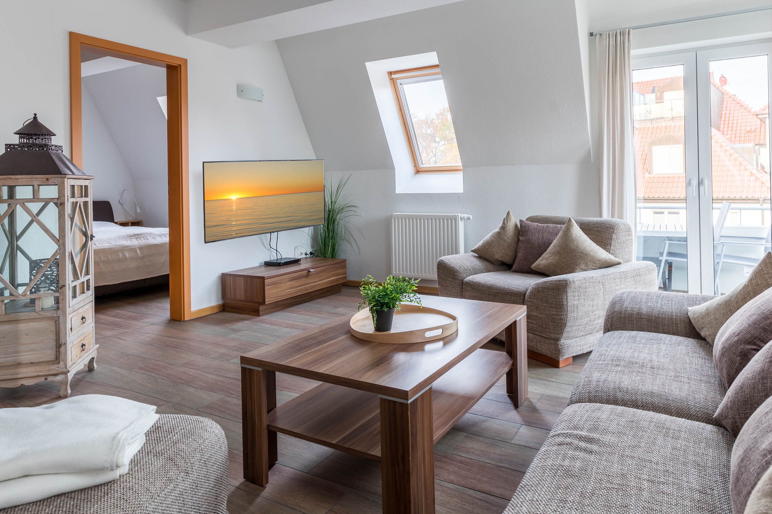 Für einen erholsamen Familienurlaub an der Ostsee ist diese großzügige 3-Zimmer-Maisonettewohnung für 4 Gäste mit Fahrstuhl & WLAN einfach ideal.