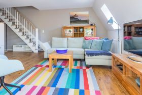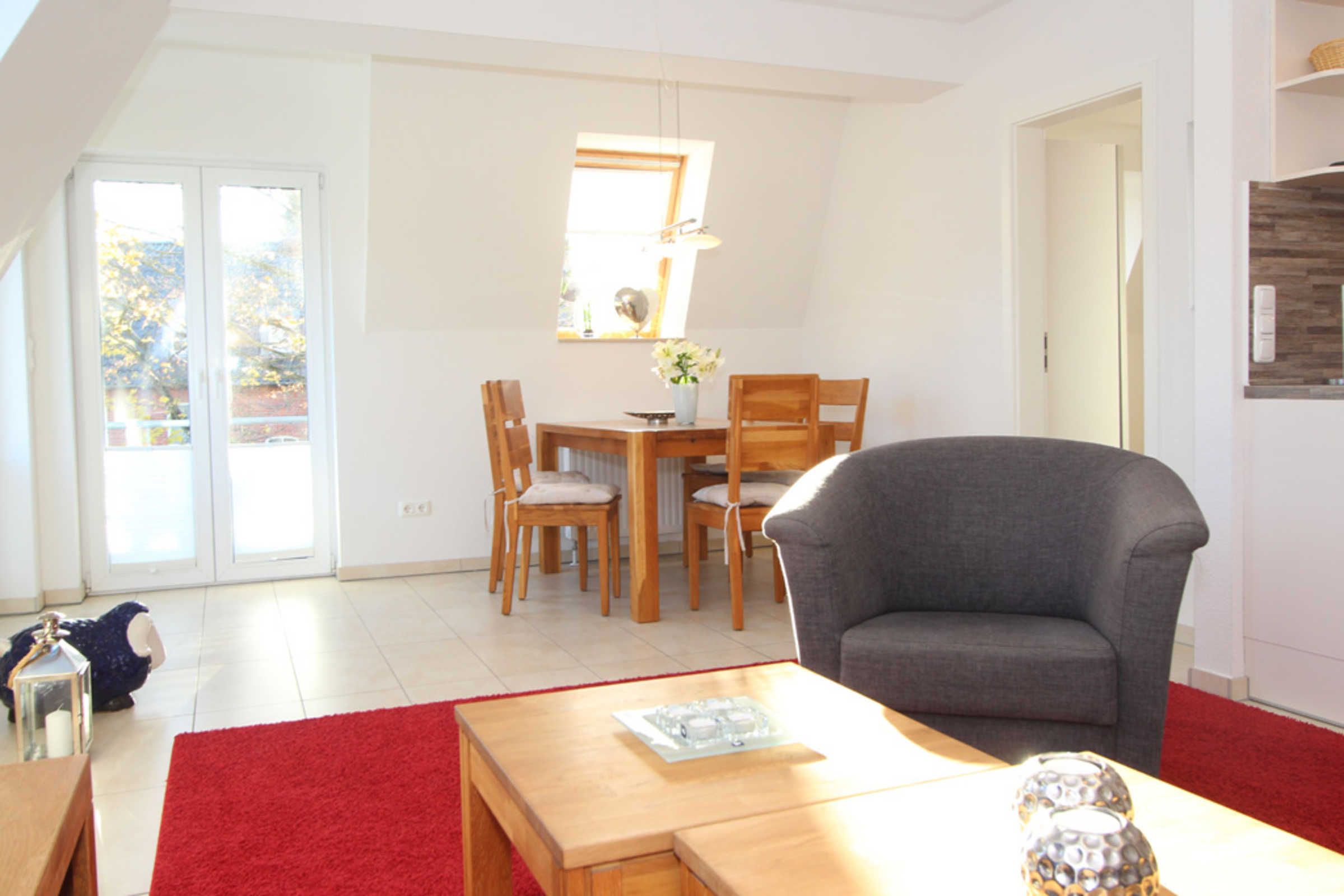 Die moderne 3-Zimmer-Wohnung im 2.OG, die sich mit 70qm Wohnfläche über zwei Ebenen erstreckt, ist lichtdurchflutet und komfortabel für max. 4 Gäste + Kleinkind ausgestattet.