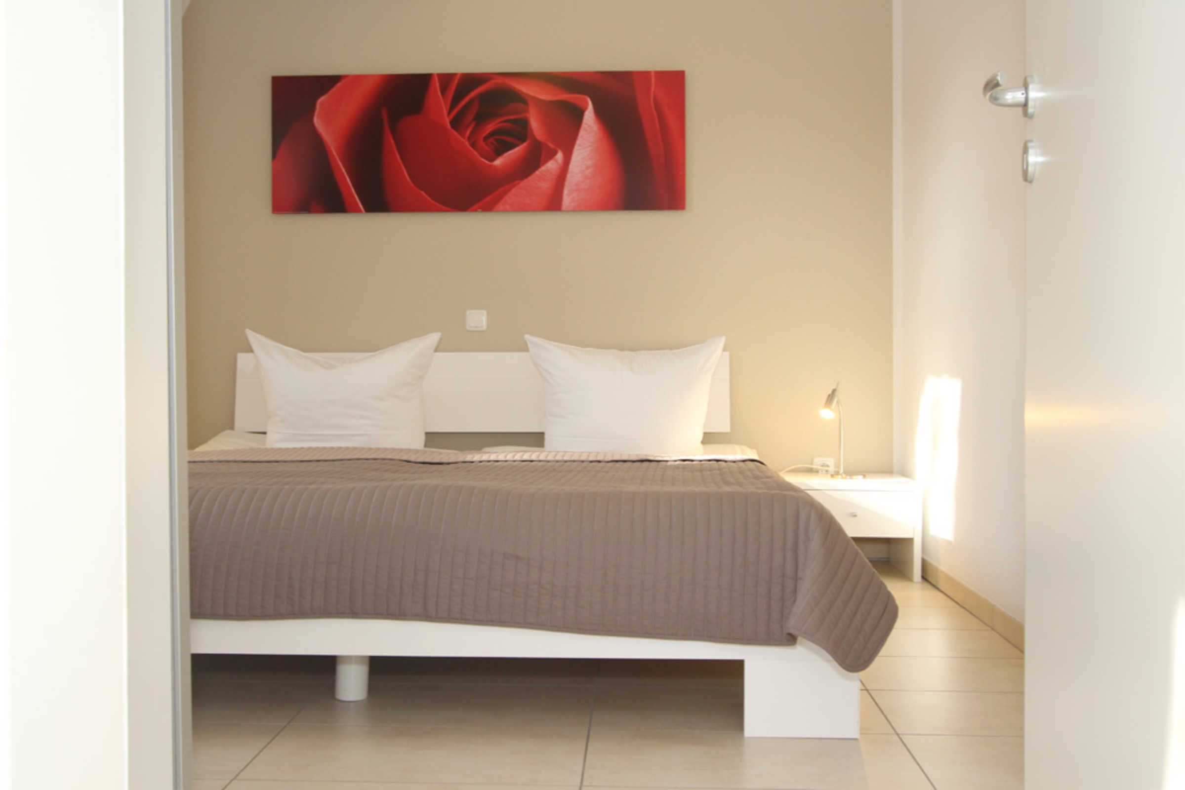 Die Wohnung bietet hochwertige Betten und einen Schreibtisch (beispielsweise für Workation). Zahlreiche Designklassiker verleihen der Wohnung ein klares und ansprechendes Ambiente.