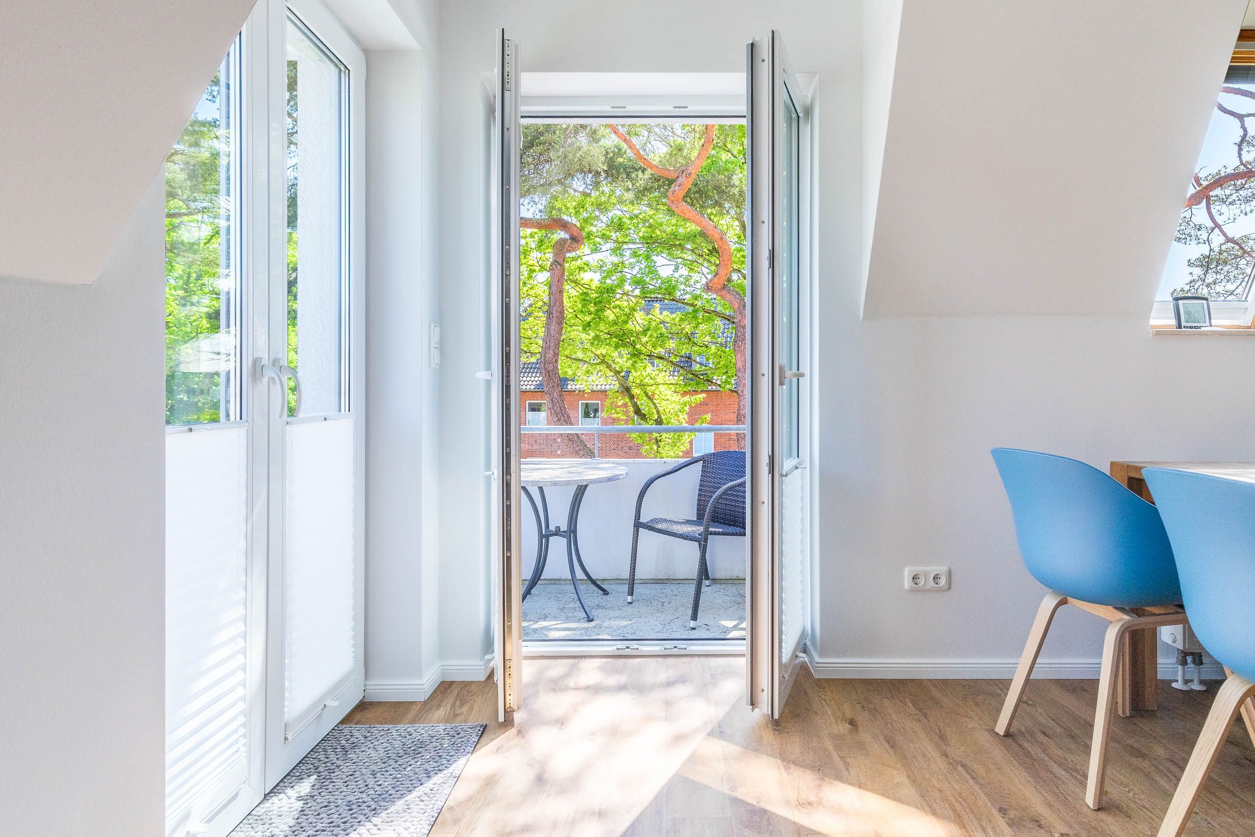 Genießen Sie die frische Ostseeluft auf dem möblierten Südost/ Südwest-Eckbalkon.