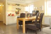 Die Küchenzeile ist großzügig ausgestattet, so dass das Kochen im Urlaub zum Vergnügen wird. In der Wohnküche befindet sich ein großer Esstisch mit ausreichend Sitzmöglichkeiten.