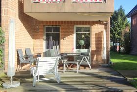 Die schöne Ostseeluft können Sie auf der möblierten West-Terrasse genießen - ob auf der Sonnenliege oder auf dem Gartenstuhl oder vielleicht sogar im zur Wohnung gehörigen Strandkorb.