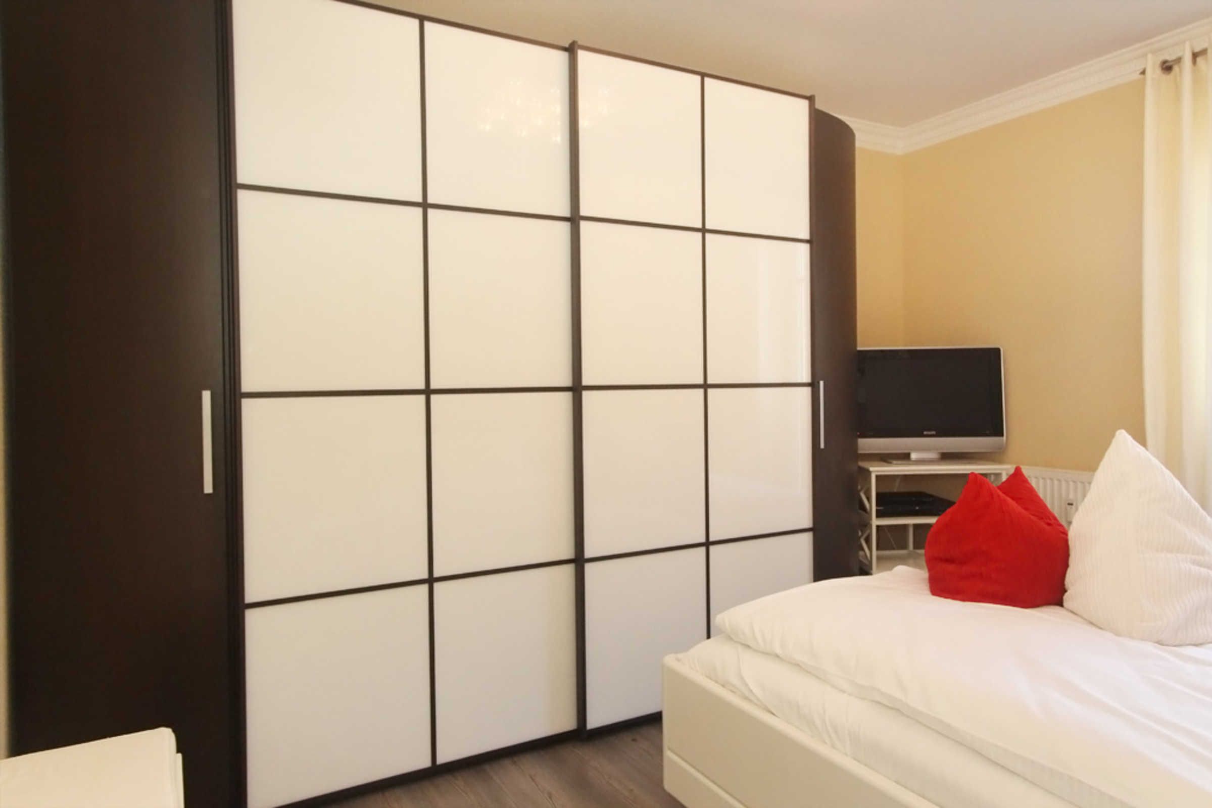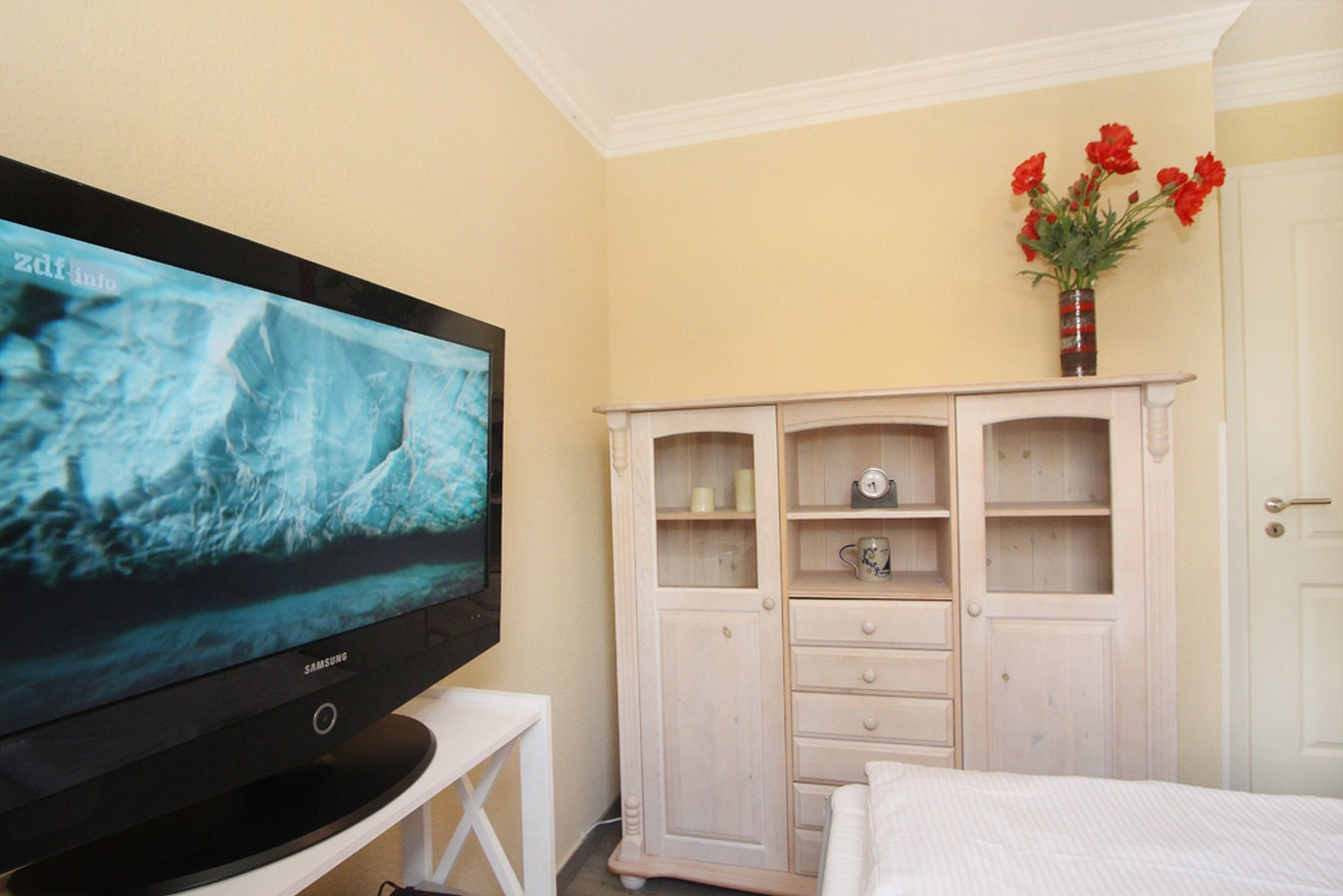 Ein Schlafzimmer bietet ein Doppelbett (180x200cm), SAT-TV (Flatscreen) + DVD-Player und einen großen Kleiderschrank für Ihre Urlaubsgarderobe. Im zweiten Schlafzimmer, in dem sich eine ausziehbare Schlafcouch für 1-2 Personen (ideal für 1 Erwachsenen oder 2 Kinder, Maße ausgezogen 140x200cm) befindet, bietet ebenfalls SAT-TV (Flatscreen) + DVD-Player und dazu eine Kommode als Ablage.