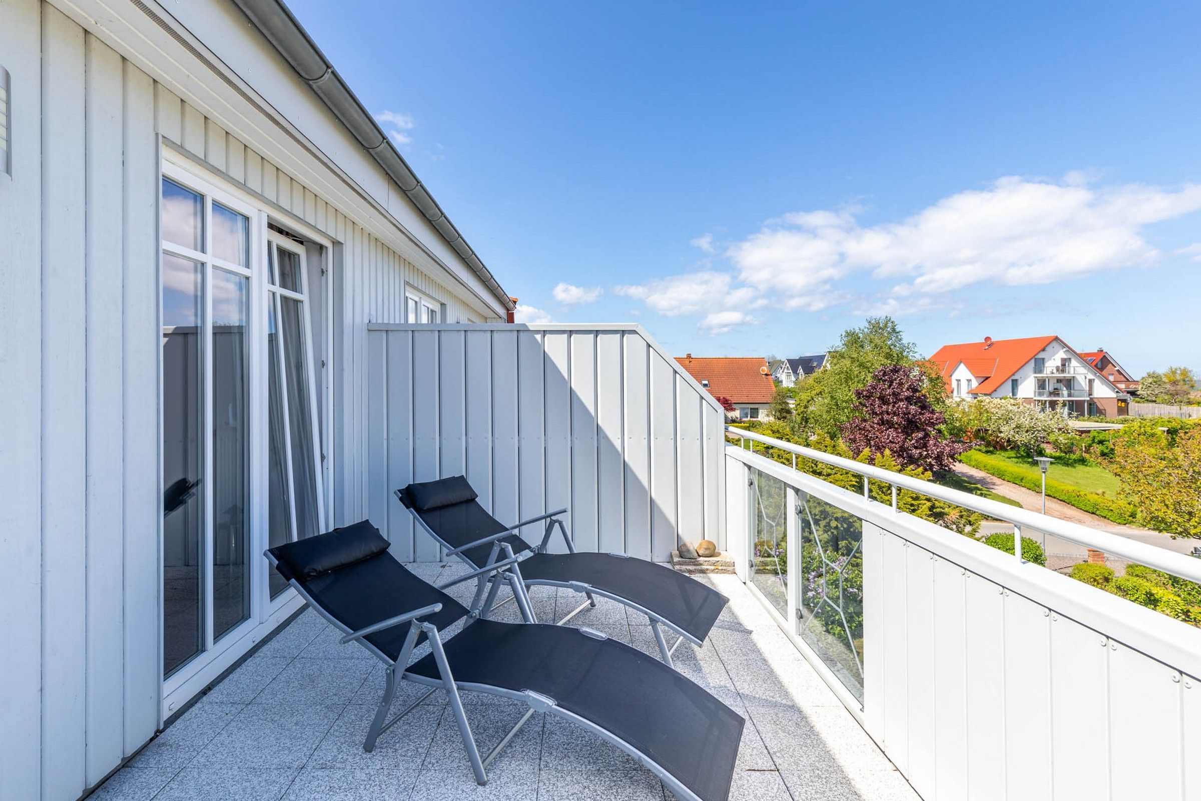 Von hier aus ist auch die große möblierte Dachterrasse gen Ostsee (Nordost) zugänglich.