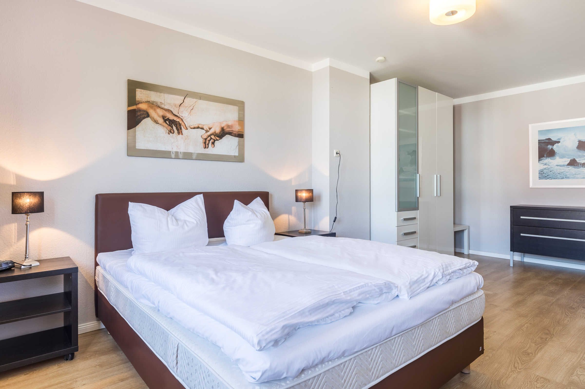 Alle drei Schlafzimmer sind jeweils mit einem Doppelbett (2 Doppelbetten 160x200 und 1 Doppelbett 180x200) sowie z.T. mit Kleiderschrank und/ oder Kommoden ausgestattet.