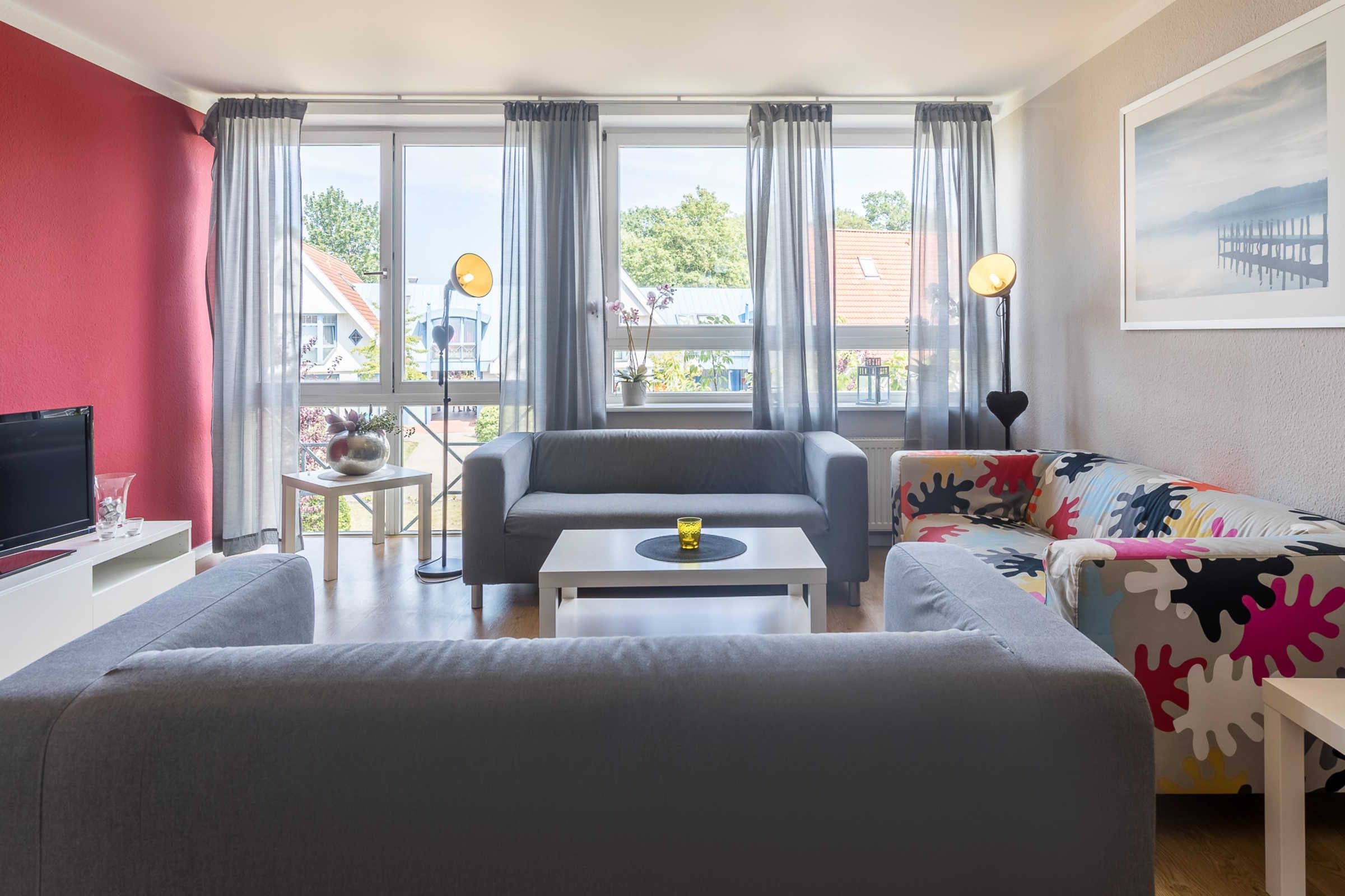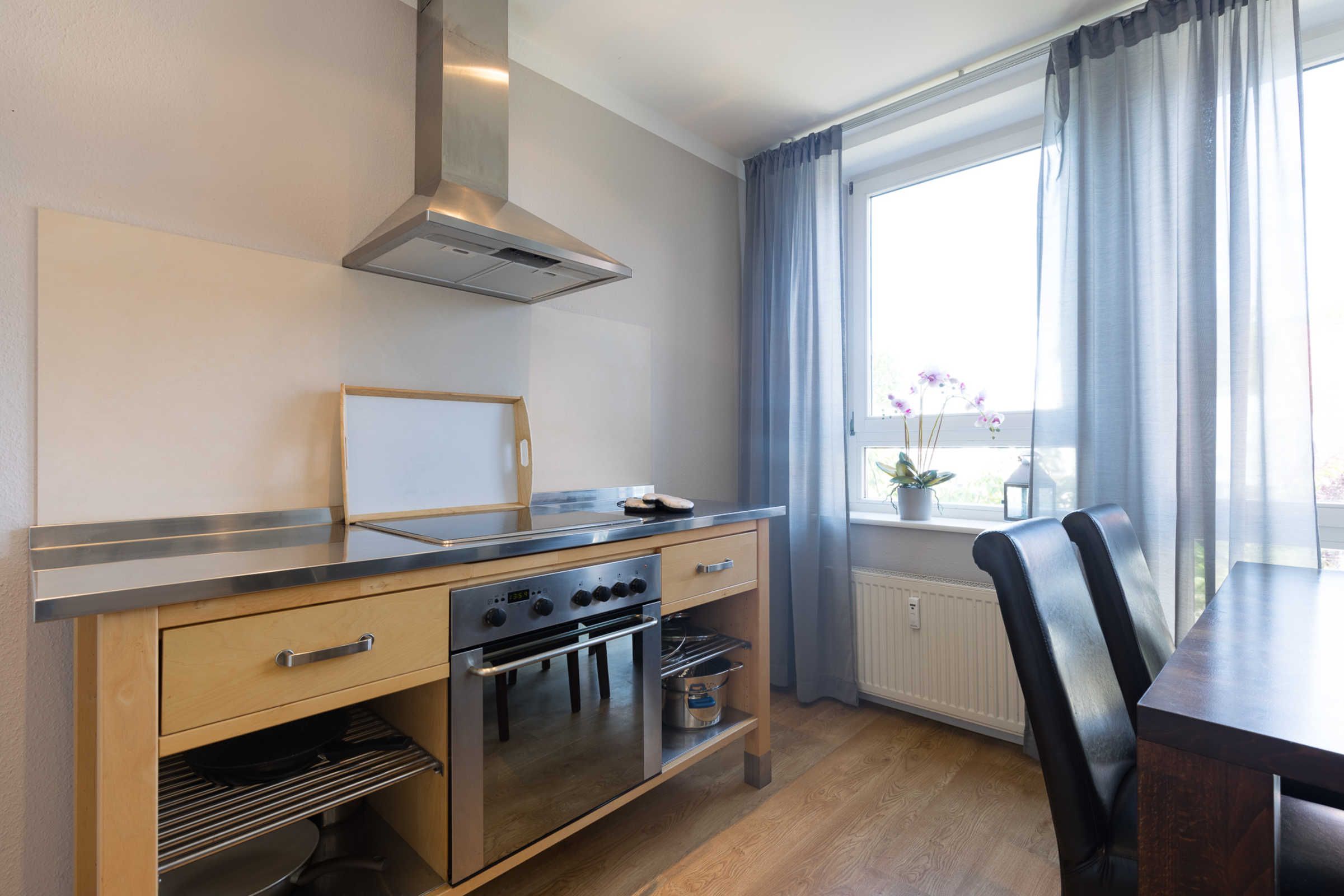 In dieser zum Innenhof gelegenen 4-Zimmer-Wohnung im 1.OG können auf großzügigen 123qm Wohnfläche bis zu 6 Gäste + Kleinkind ihren Urlaub genießen.