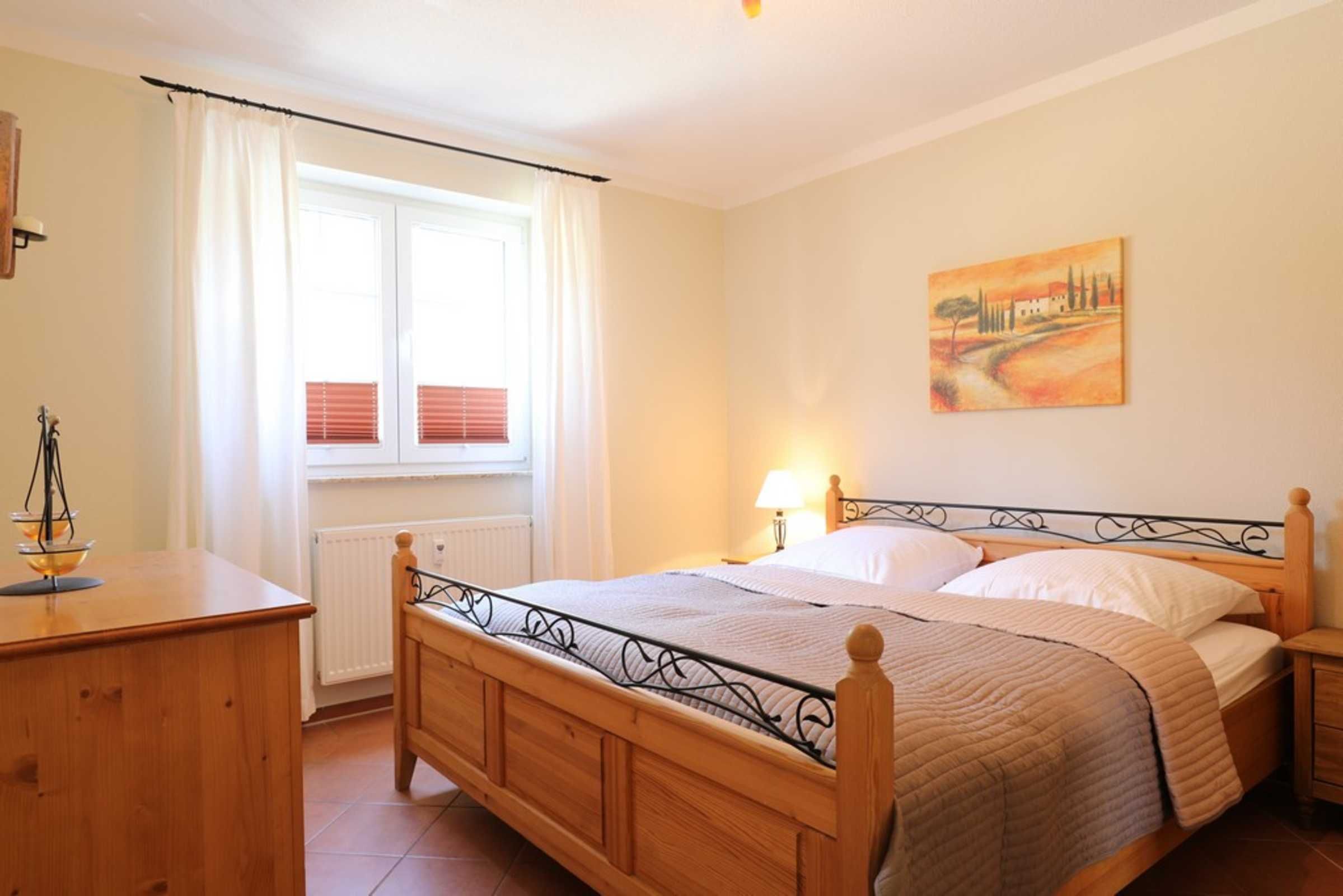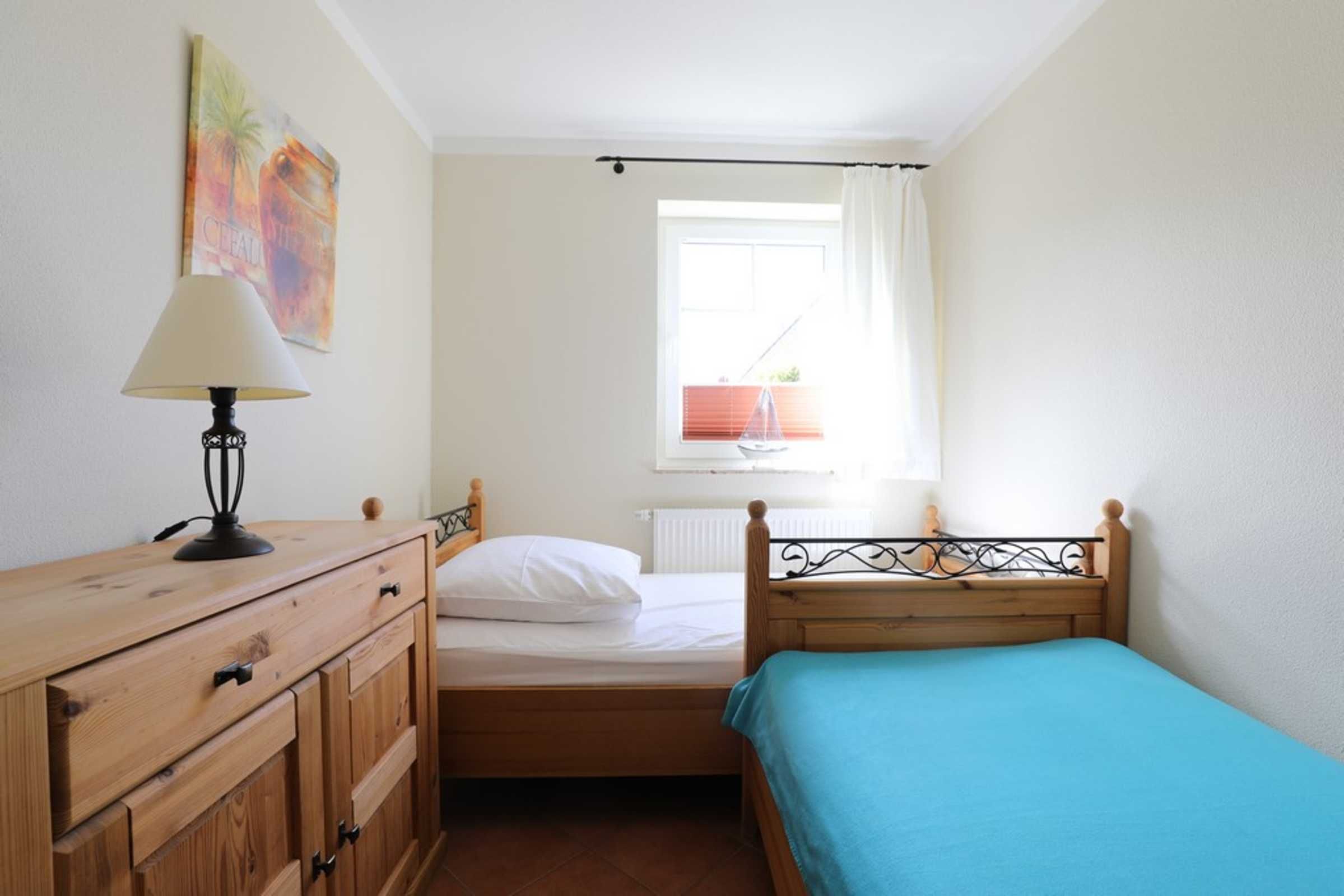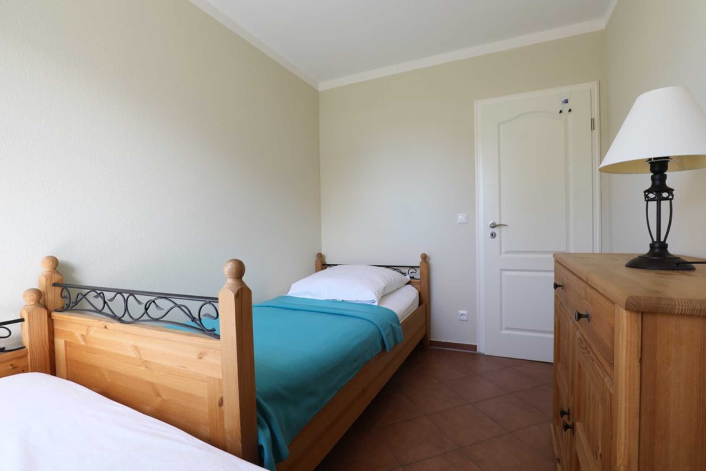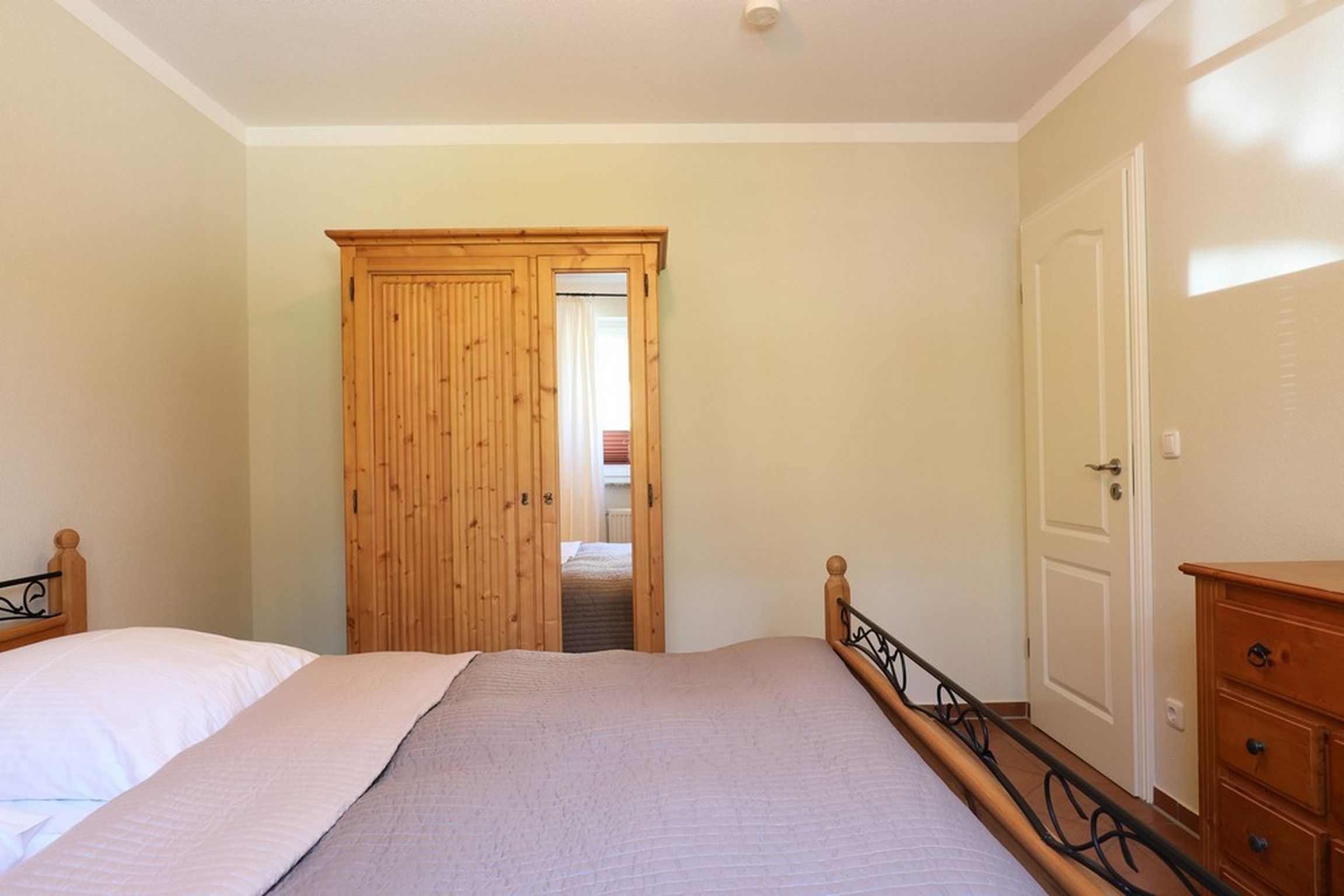 Die Ferienwohnung ist mit zwei getrennten Schlafzimmern ausgestattet. Während in einem Schlafzimmer ein Doppelbett mit verstellbaren Rosten anzutreffen ist, gibt es im zweiten Schlafzimmer zwei Einzelbetten (100 x 200cm).
