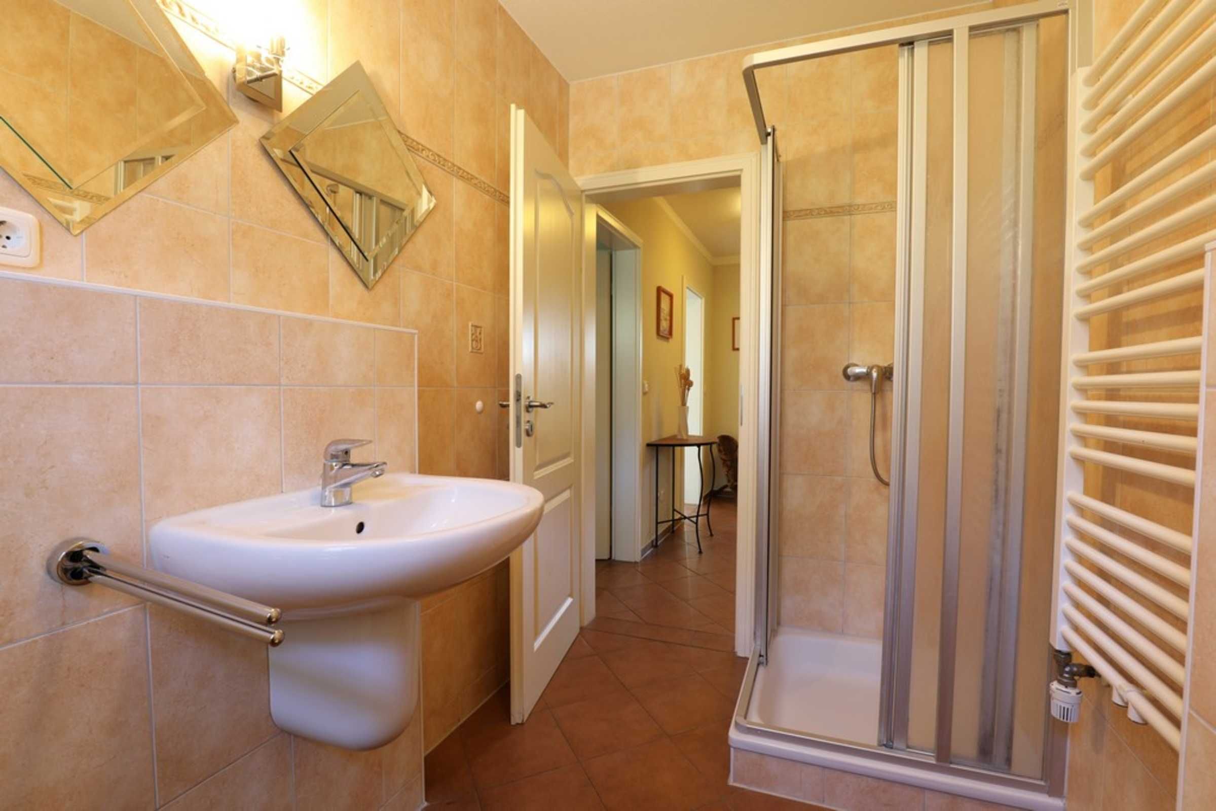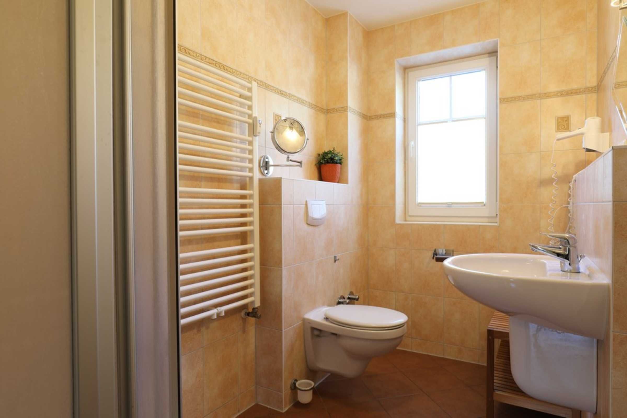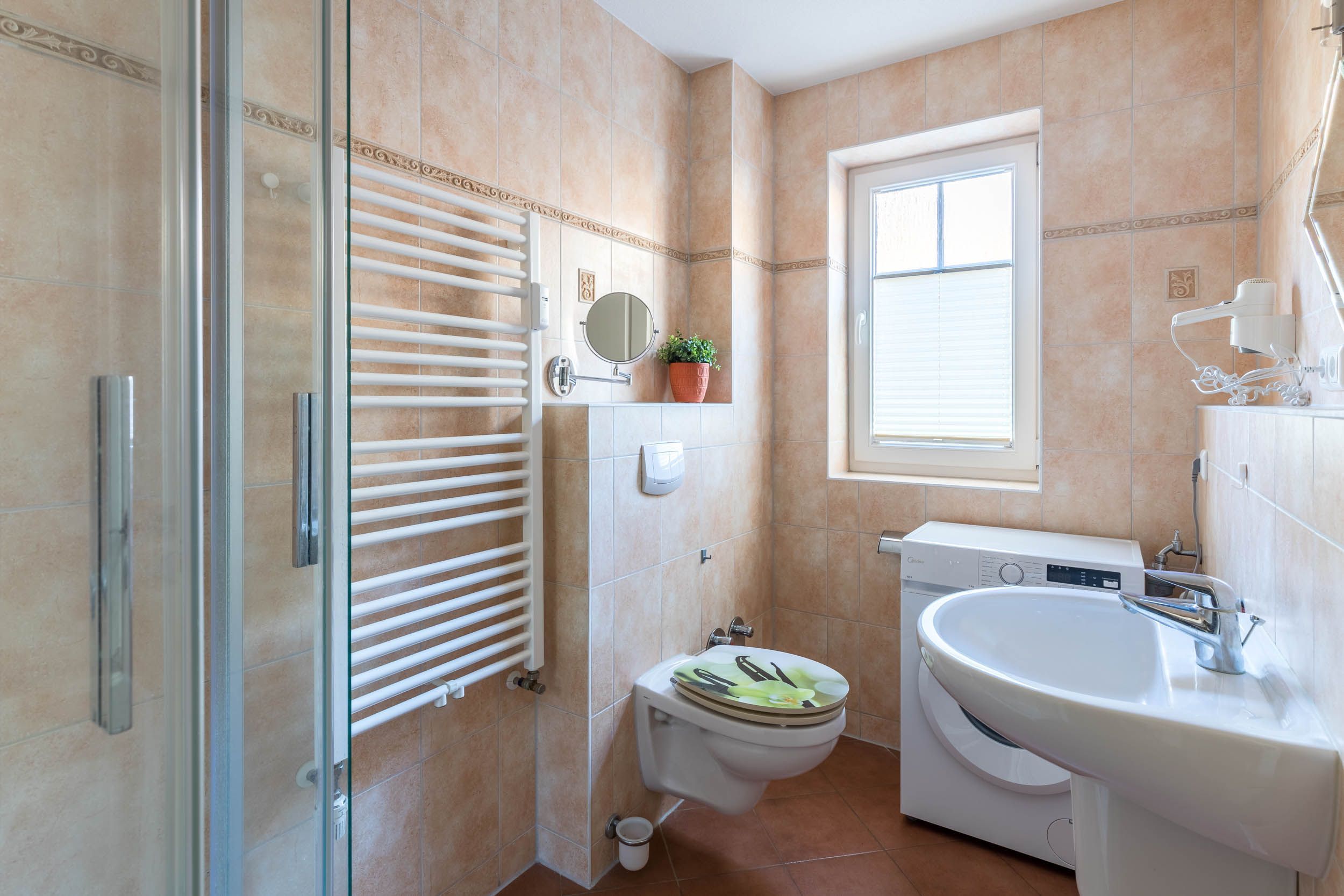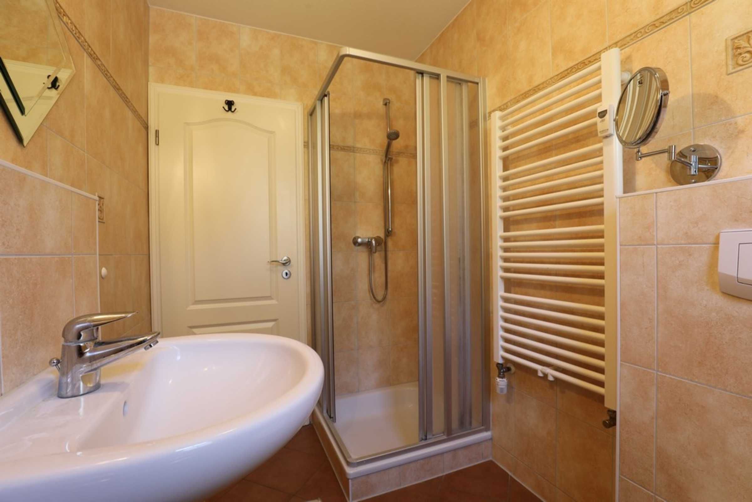 Im Bad finden Sie neben Dusche und WC auch noch einen Handtuchtrockner, Fön und Kosmetikspiegel.