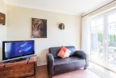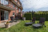 Die großzügige, möblierte Südterrasse mit eigener Rasenfläche lädt zum Sonnenbaden auf einer der Sonnenliegen oder zum gemütlichen Grillen mit dem zur Wohnung gehörenden Grill ein.