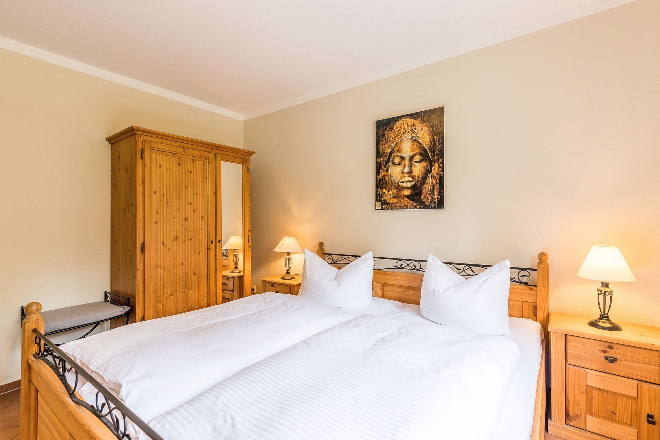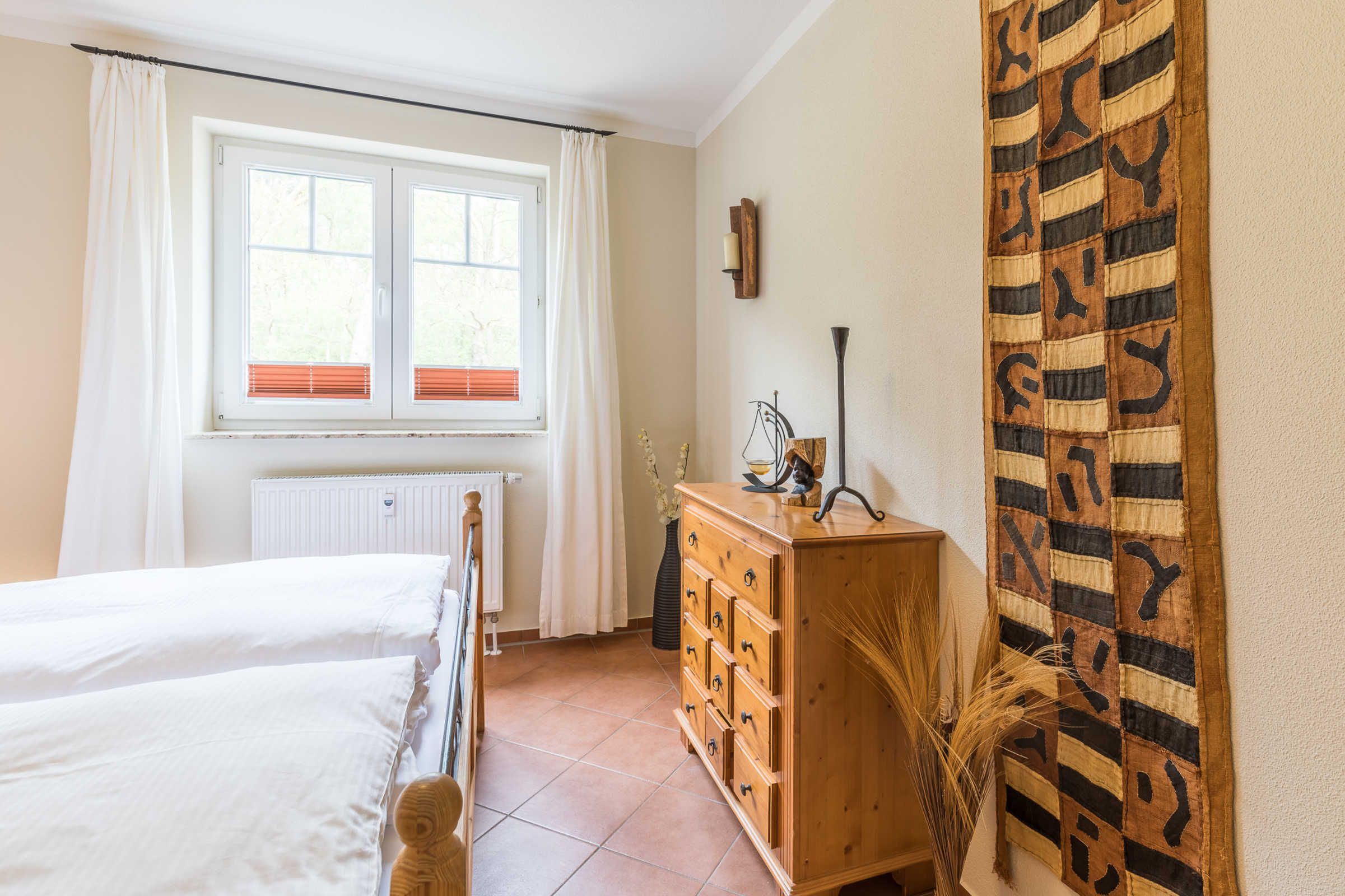 In einem Schlafzimmer befindet sich ein bequemes Doppelbett mit verstellbaren Lattenrosten, das zweite Schlafzimmer ist mit zwei Einzelbetten (100x200cm) ausgestattet.