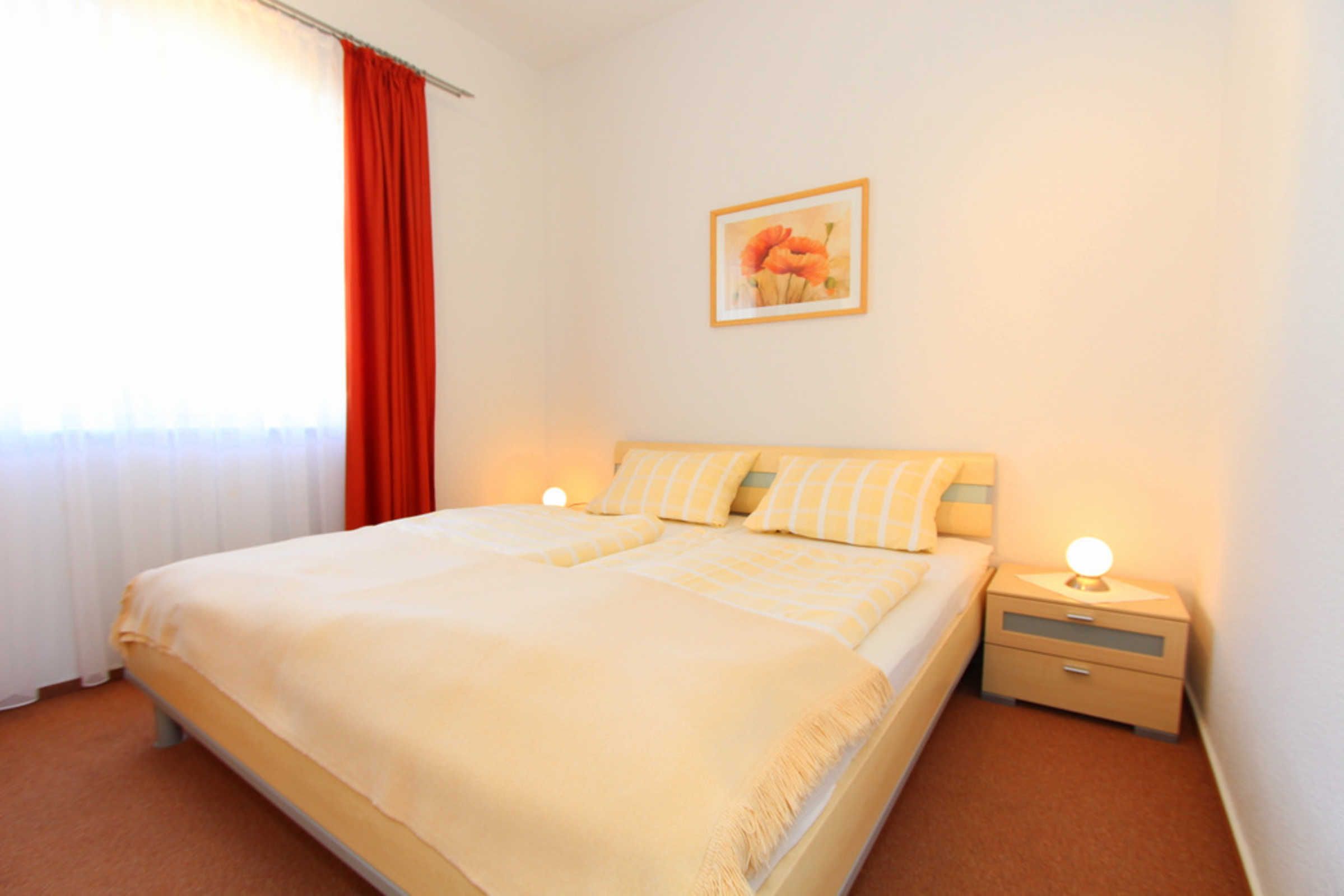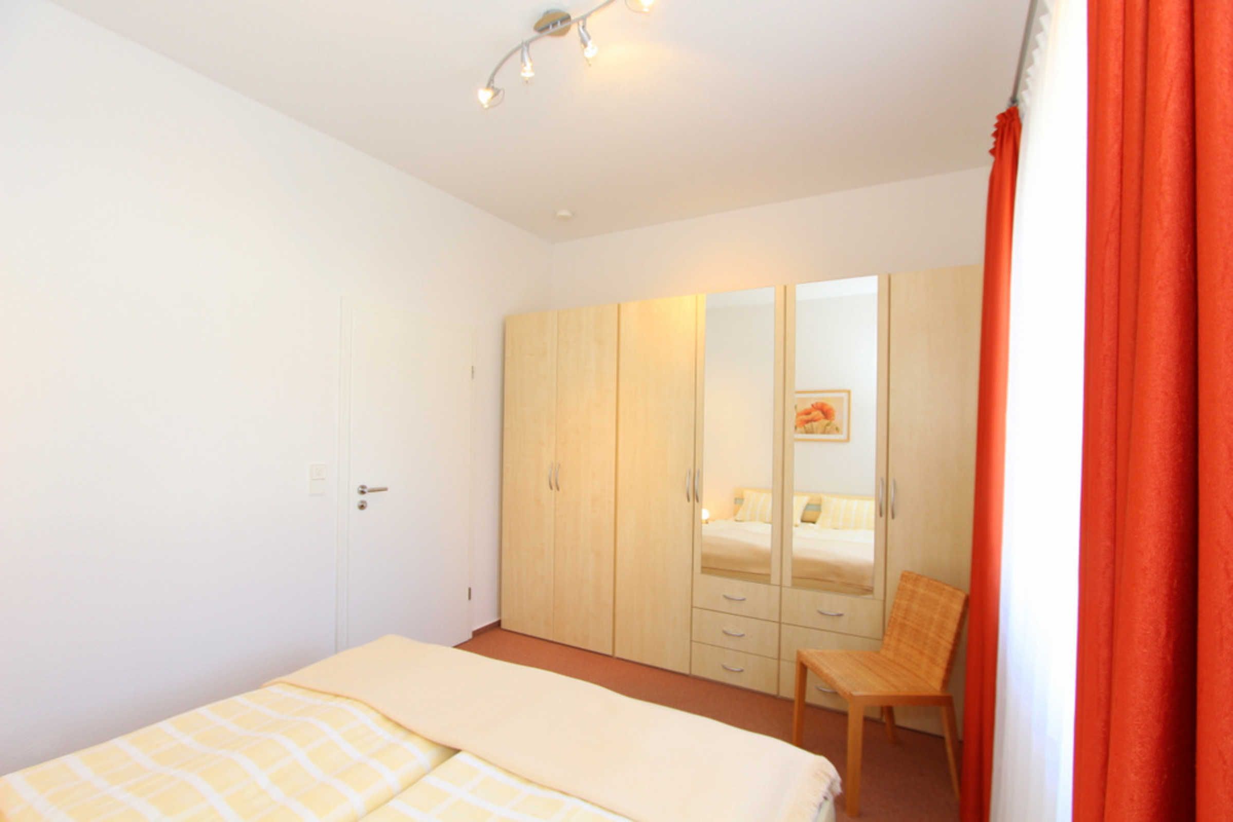Das Schlafzimmer ist mit einem Doppelbett (180x200cm) und einem großen Kleiderschrank eingerichtet.