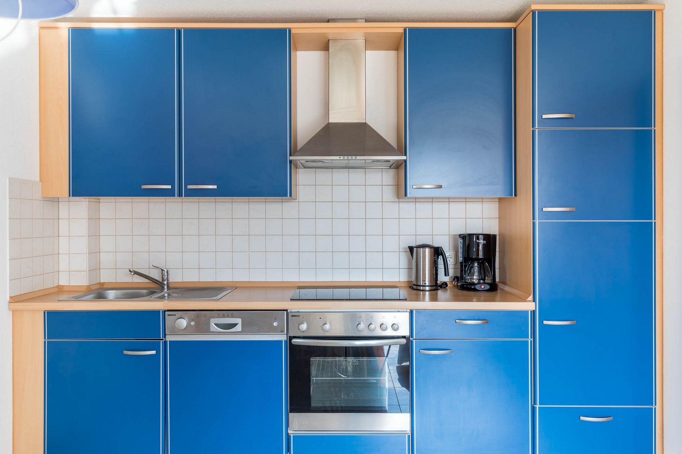 Die gut ausgestattete Wohnküche ist neben dem Geschirrspüler auch mit einem separates Gefrierfach, Kaffeemaschine und ein Cerankochfeld mit Backofen ausgestattet.
