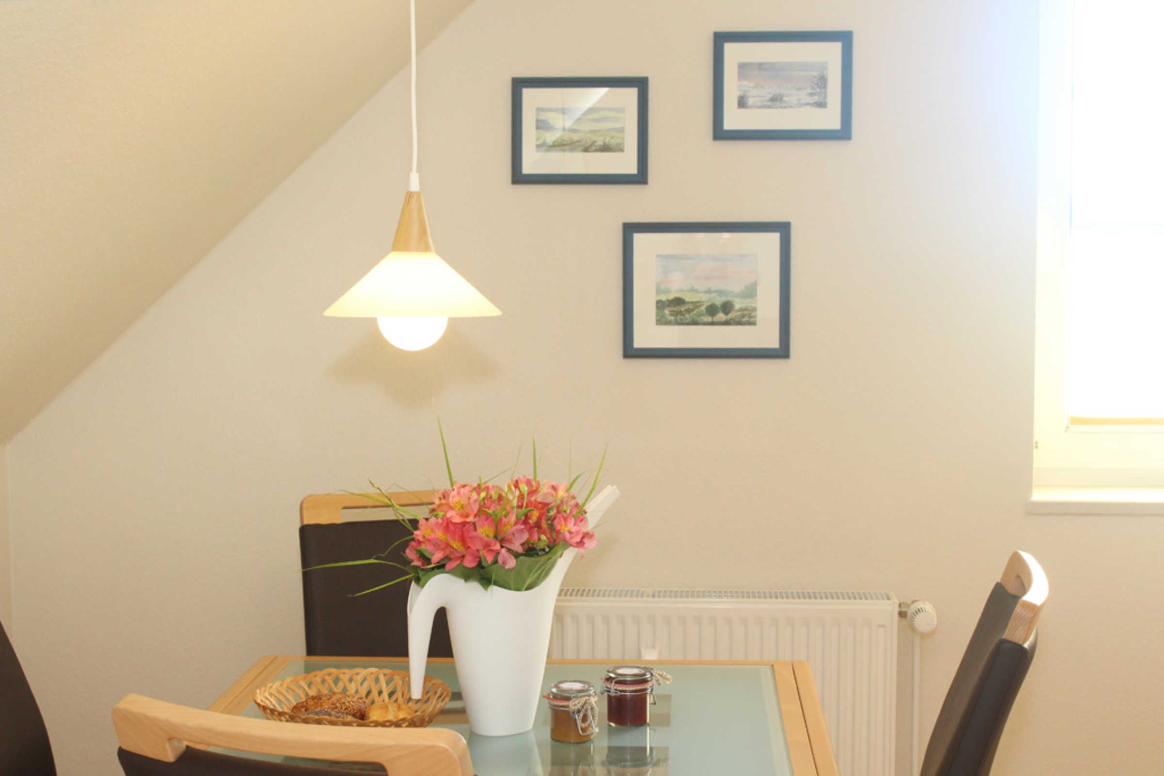 Die 3-Zimmer Ferienwohnung im 1.OG bietet auf etwa 55qm Wohnfläche eine familienfreundliche Ausstattung für bis zu 4 Gäste +1 Kleinkind einen gemütlichen Aufenthalt.