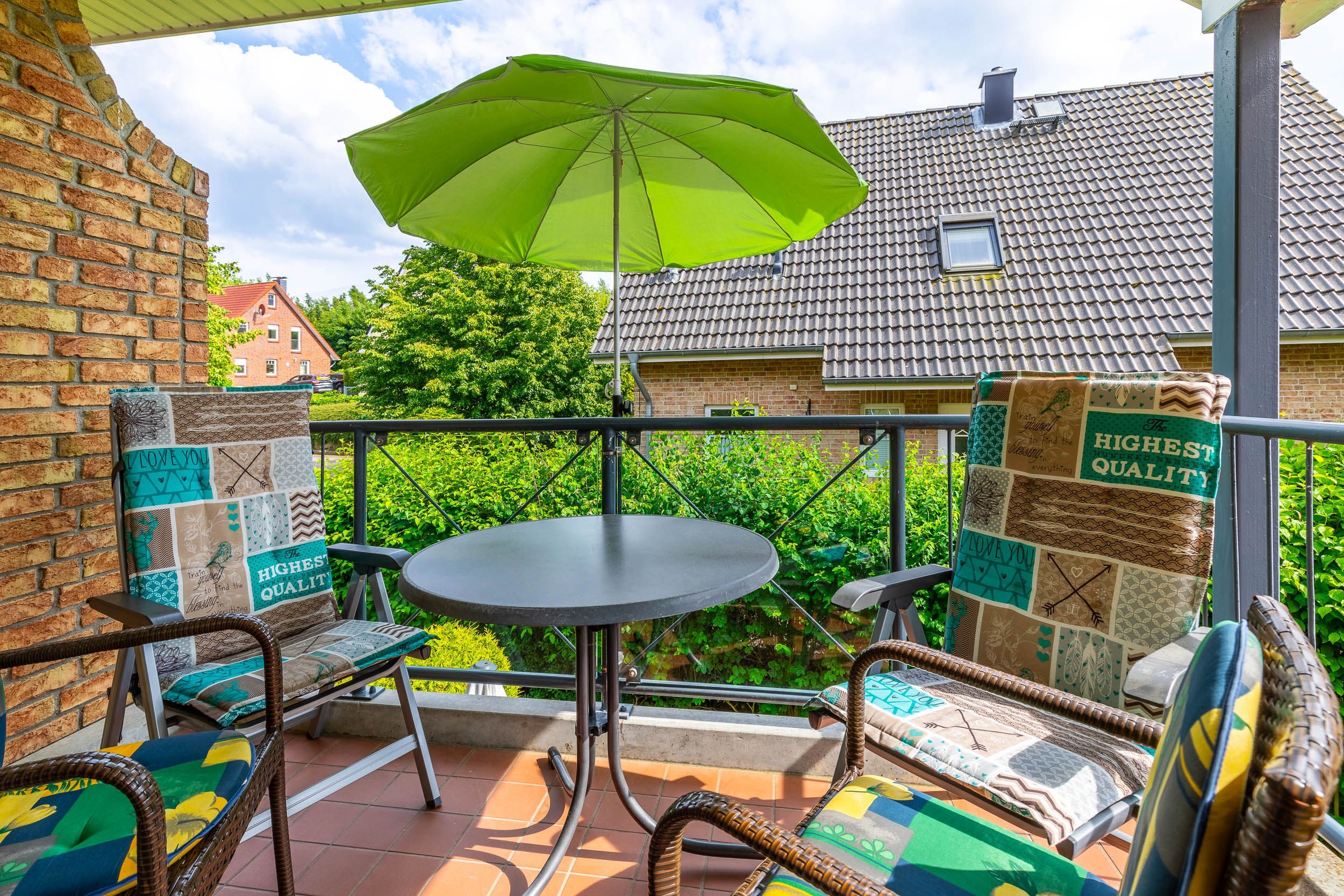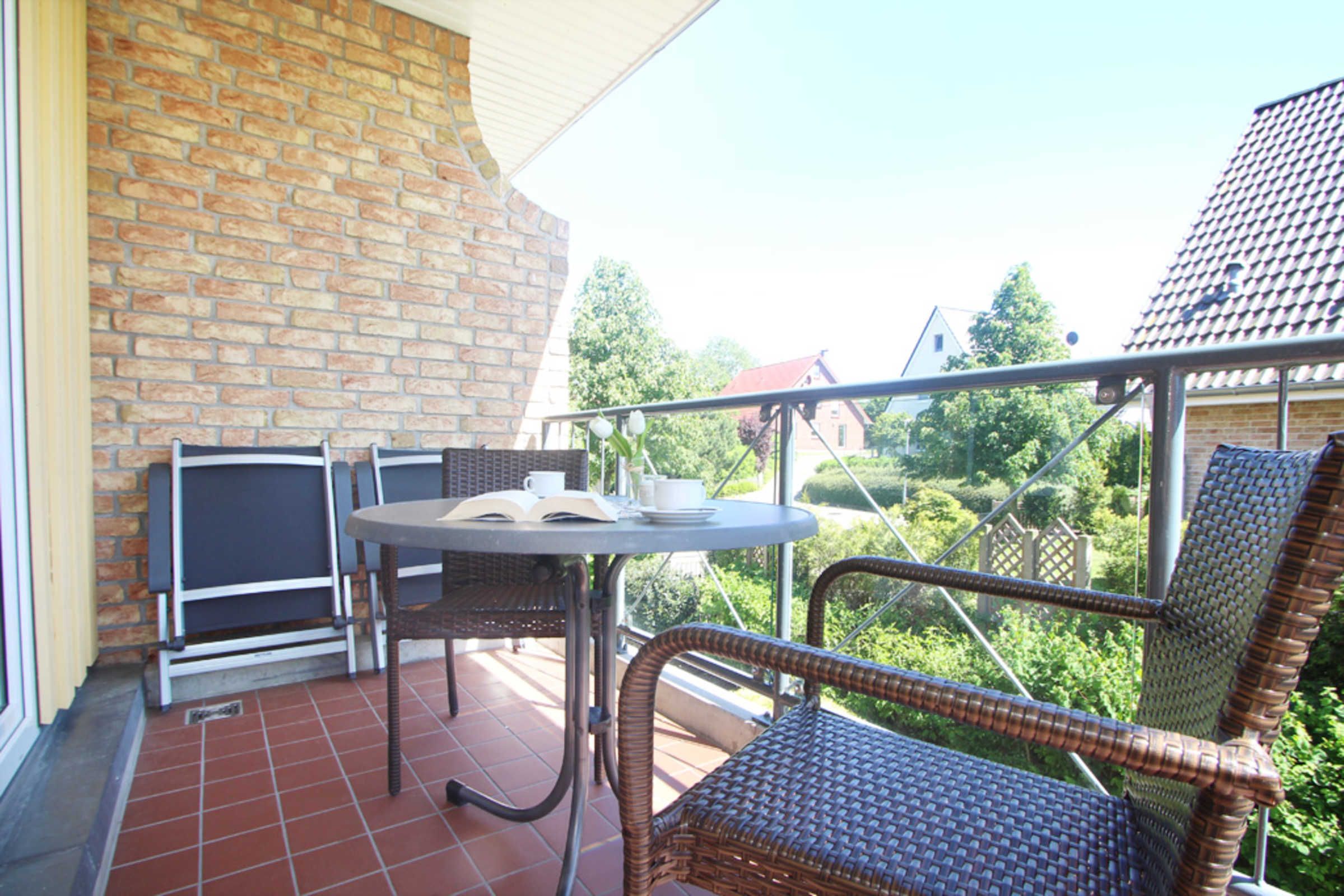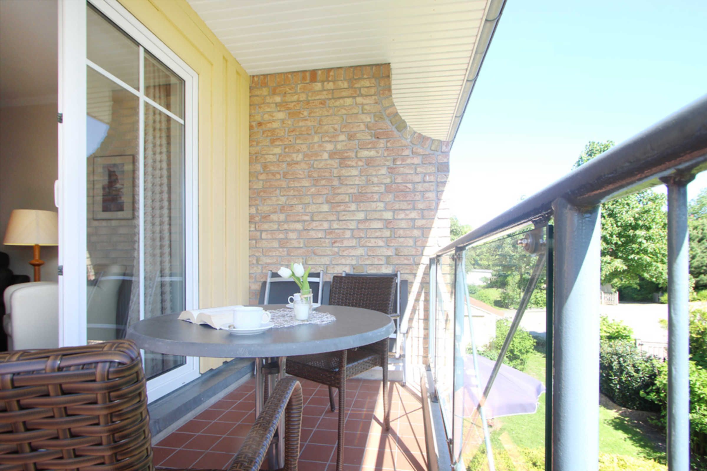 Auf dem möblierten Südbalkon, welchen Sie vom Wohnzimmer aus begehen, lässt es sich herrlich entspannen und die Sonne genießen.