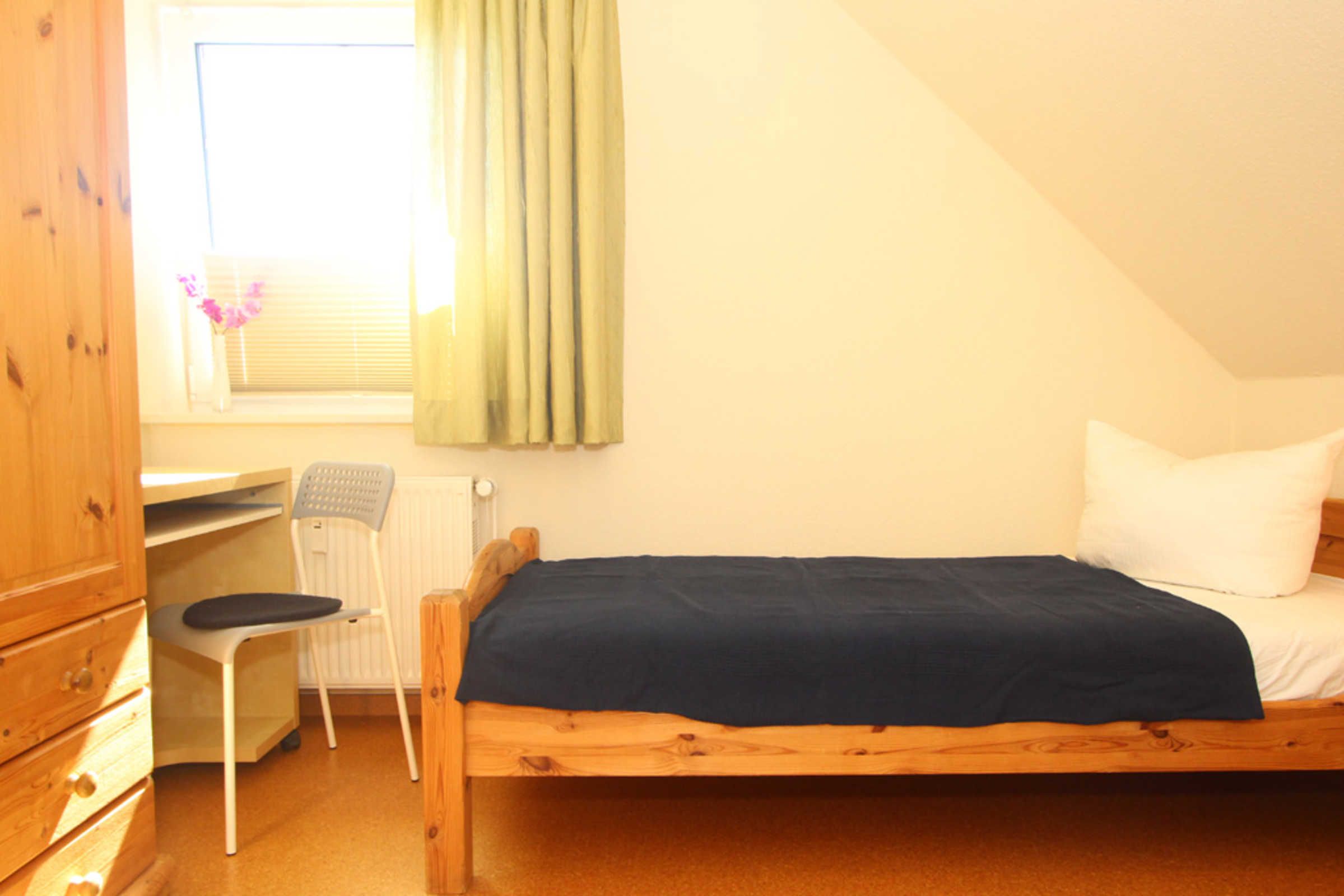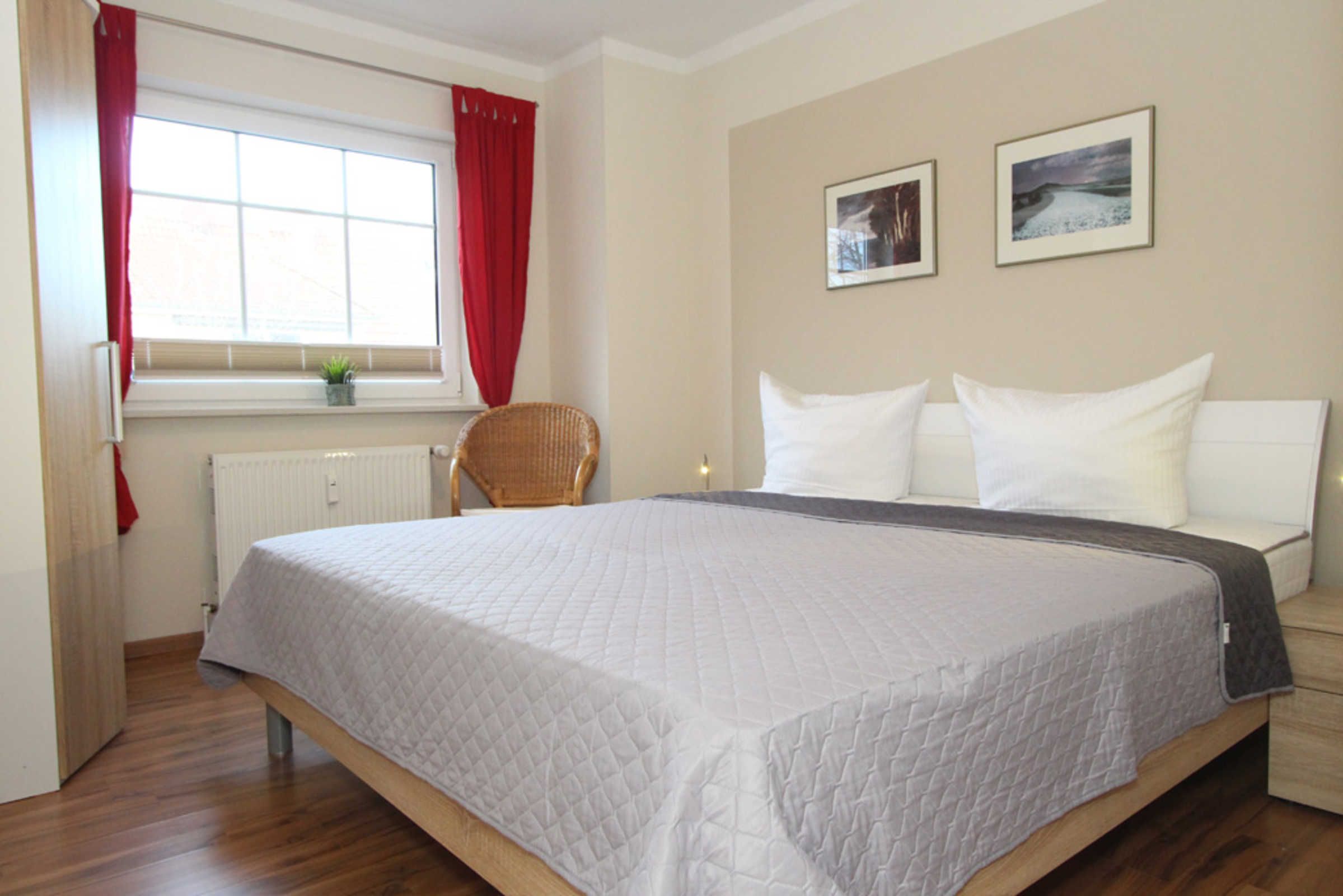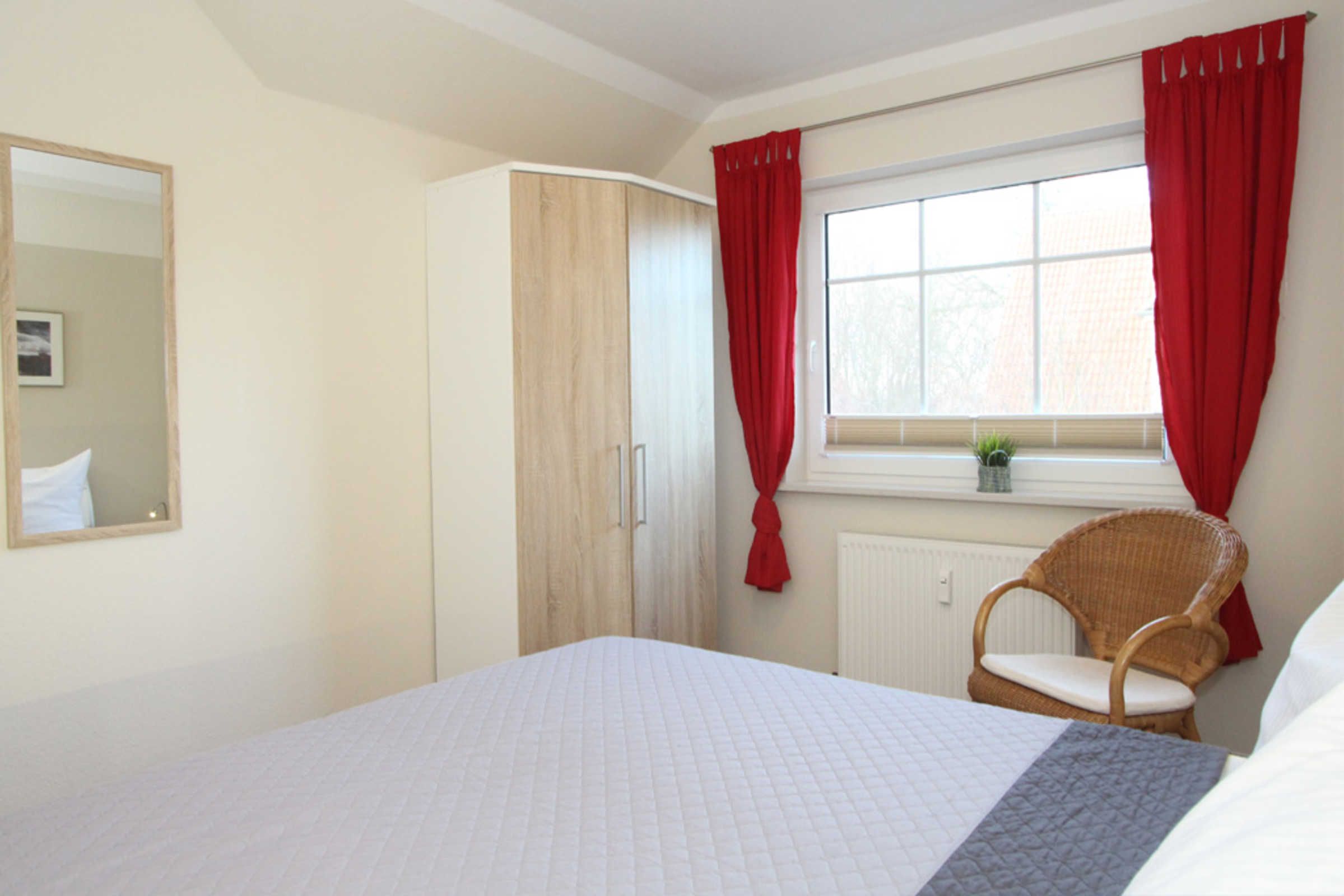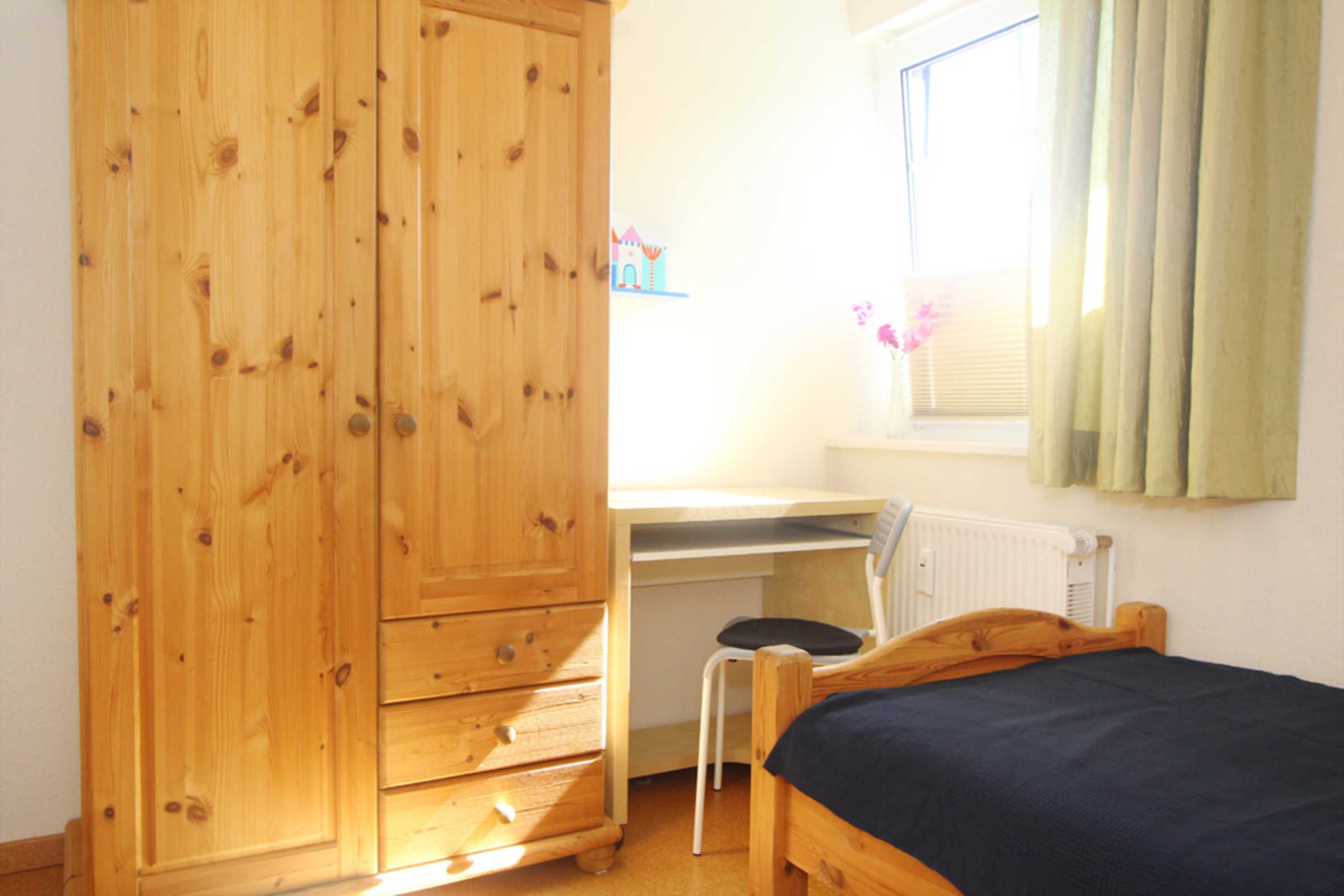 Es gibt zwei Schlafzimmer: Eines ist mit einem Doppelbett und einem Kleiderschrank ausgestattet, das zweite Schlafzimmer bietet zwei Einzelbetten, eine Mini-Stereoanlage, einen Schreibtisch und ebenfalls einen Kleiderschrank.